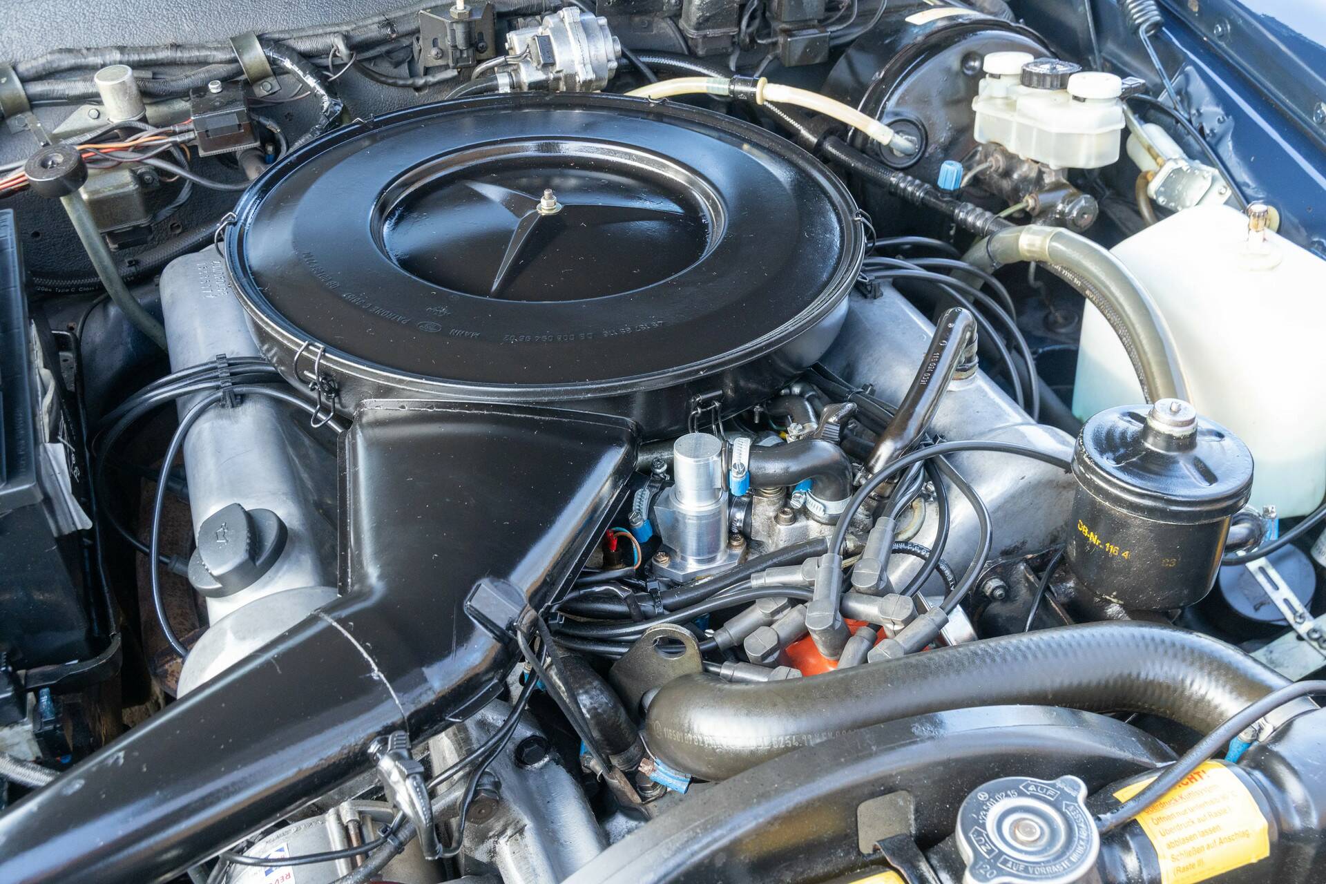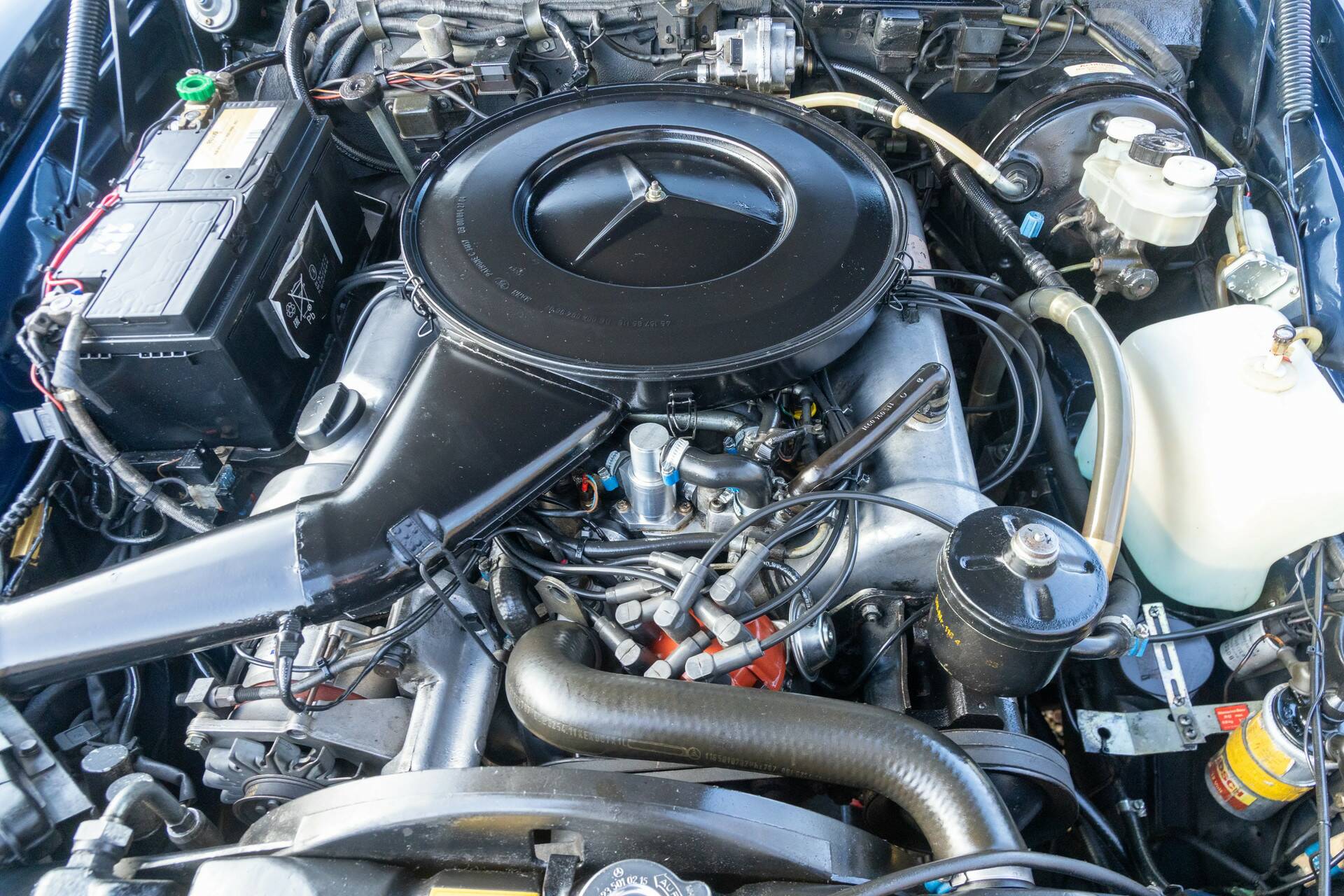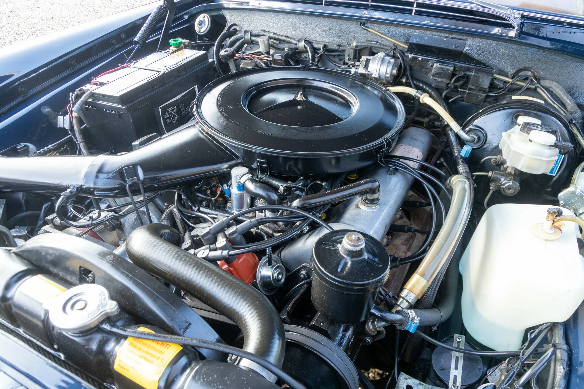 Das hier vorgestellte Exemplar ist besonders reizvoll. Es handelt sich um einen 280 SE 3.5, ausgeliefert im Jahr 1970 – das erste Nachkriegs-Coupé von Mercedes-Benz mit einem V8-Motor von mehr als drei Litern Hubraum. Unter der Haube arbeitet der 3,5-Liter M116 V8 mit 200 PS. Kein aufdringlicher Sportmotor, sondern eine seidenweich laufende Kraftquelle, die genau das liefert, was man erwartet: leise, souverän und mit außergewöhnlichem Langstreckenkomfort.