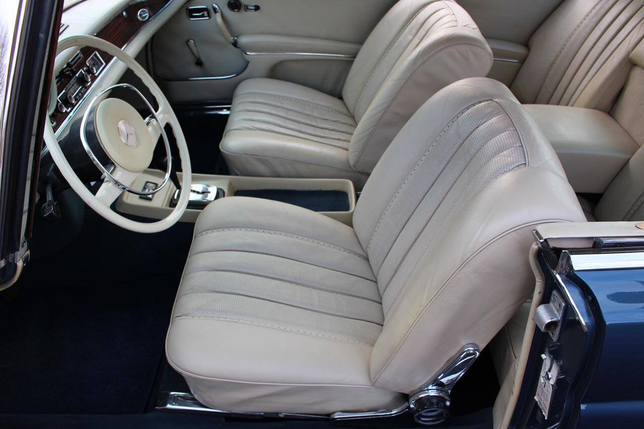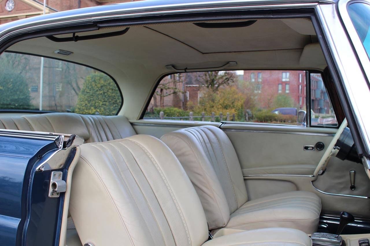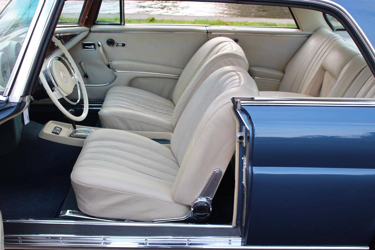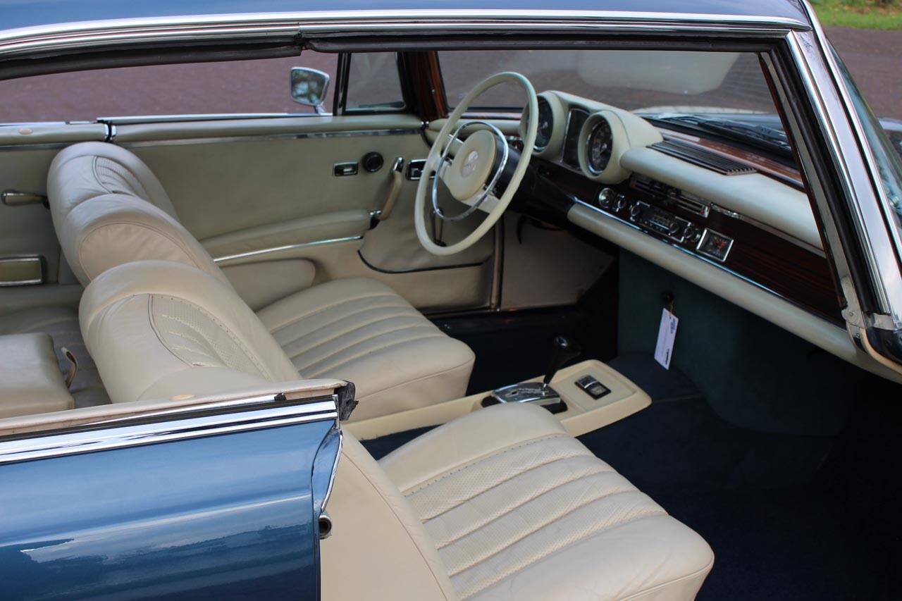 Ein außergewöhnlich schönes Mercedes-Benz 280 SE 3.5 Coupé. Dieses Spitzenmodell wurde von 1969 bis 1971 in limitierter Auflage gebaut und trägt aufgrund des niedrigen, breiten Kühlergrills, der den V8-Motor beherbergt, den Spitznamen „Flachküler“. Es handelt sich um eines der wenigen neu in den Niederlanden ausgelieferten Exemplare. Der Komiker Toon Hermans erwarb dieses 3.5 Coupé im Jahr 1971. Es verfügte damals über teure Extras wie Klimaanlage, ein Stahlschiebedach, eine edle Lederausstattung und ein Becker-Radio. Der Mercedes blieb stets in den Niederlanden und wurde penibel gepflegt. Die dunkelblaue Metallic-Lackierung (Farbcode 387H) wurde kürzlich aus optischen Gründen erneuert. Der Innenraum ist komplett original und in außergewöhnlich gutem Zustand. Der 3,5-Liter-V8-Motor in Kombination mit dem sanft schaltenden Automatikgetriebe macht diesen 280 SE auch heute noch zu einem Fahrspaß pur. Dieses 3,5-Liter-Coupé wurde kürzlich von der Fachwerkstatt Van Dijk Lisserbroek komplett gewartet (Rechnungen vorhanden). Auch technisch und mechanisch befindet es sich in einem Top-Zustand!