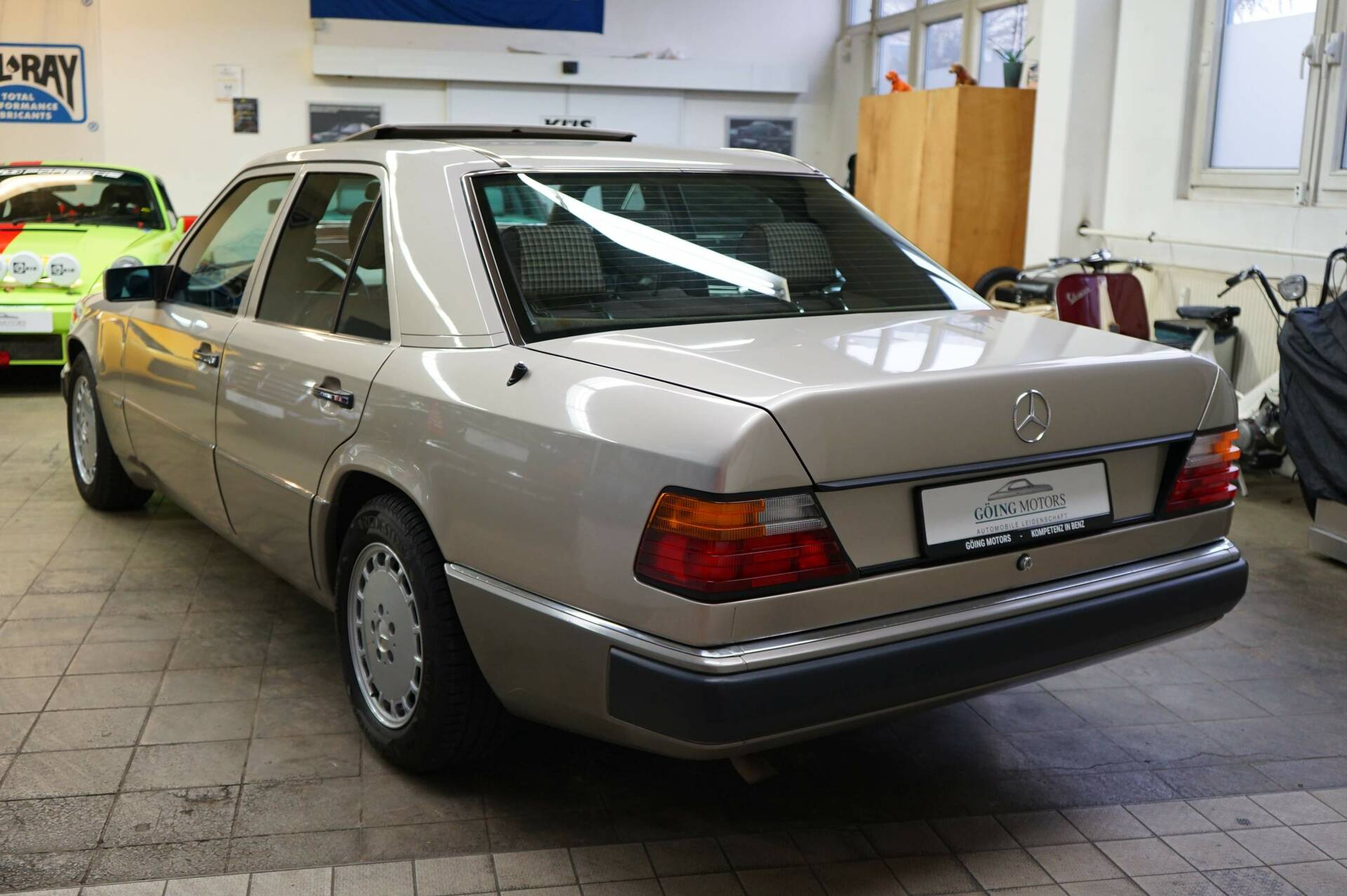 Mercedes W124 230E. Unfallfreies dt. Nichtraucher- und Garagenfahrzeug aus 2. Hand im Originalzustand mit Sportline Sitzen, 5-Gang, Mittelarmlehne, el. Fensterhebern, Schiebedach und H-Kennzeichen.