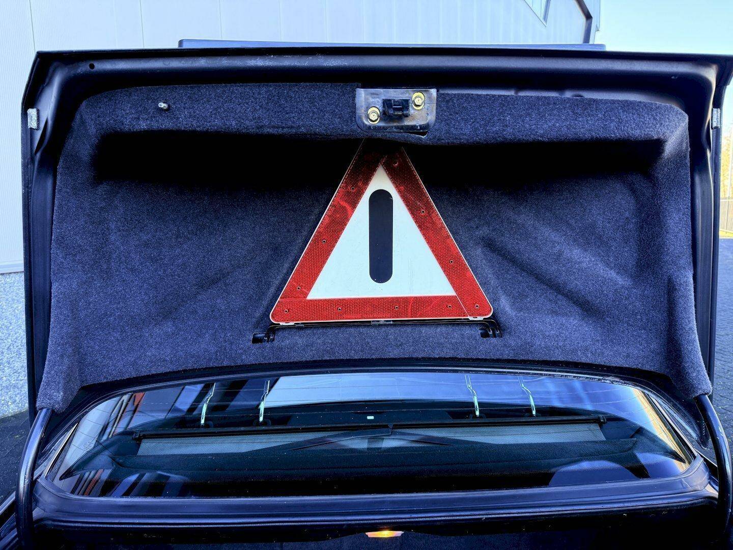 Der Lack wurde in der Vergangenheit in der Originalfarbe neu lackiert und das Auto präsentiert sich mit einer schönen Lackierung und gepflegtem Aussehen. Das Interieur ist original, mit gut erhaltenem schwarzen Lederbezug und einem sauberen Himmel, das Schiebedach funktioniert einwandfrei. Es gibt einige Gebrauchsspuren: Rechts vorne, unter der Stoßstange, gibt es Lackbeschädigungen. Rechts hinten, im hinteren Stoßfänger, befindet sich eine kleine Delle unter dem Rücklicht.