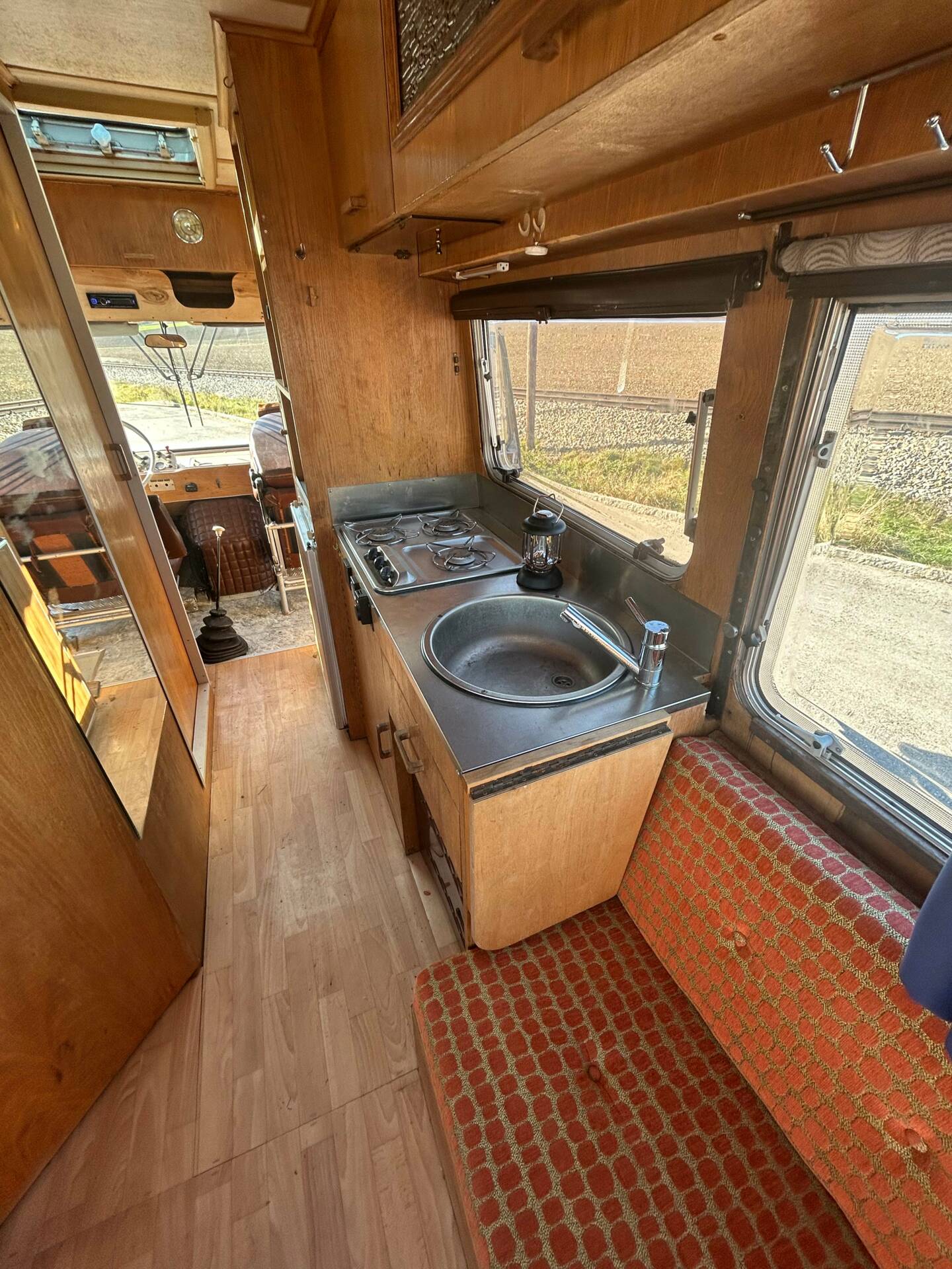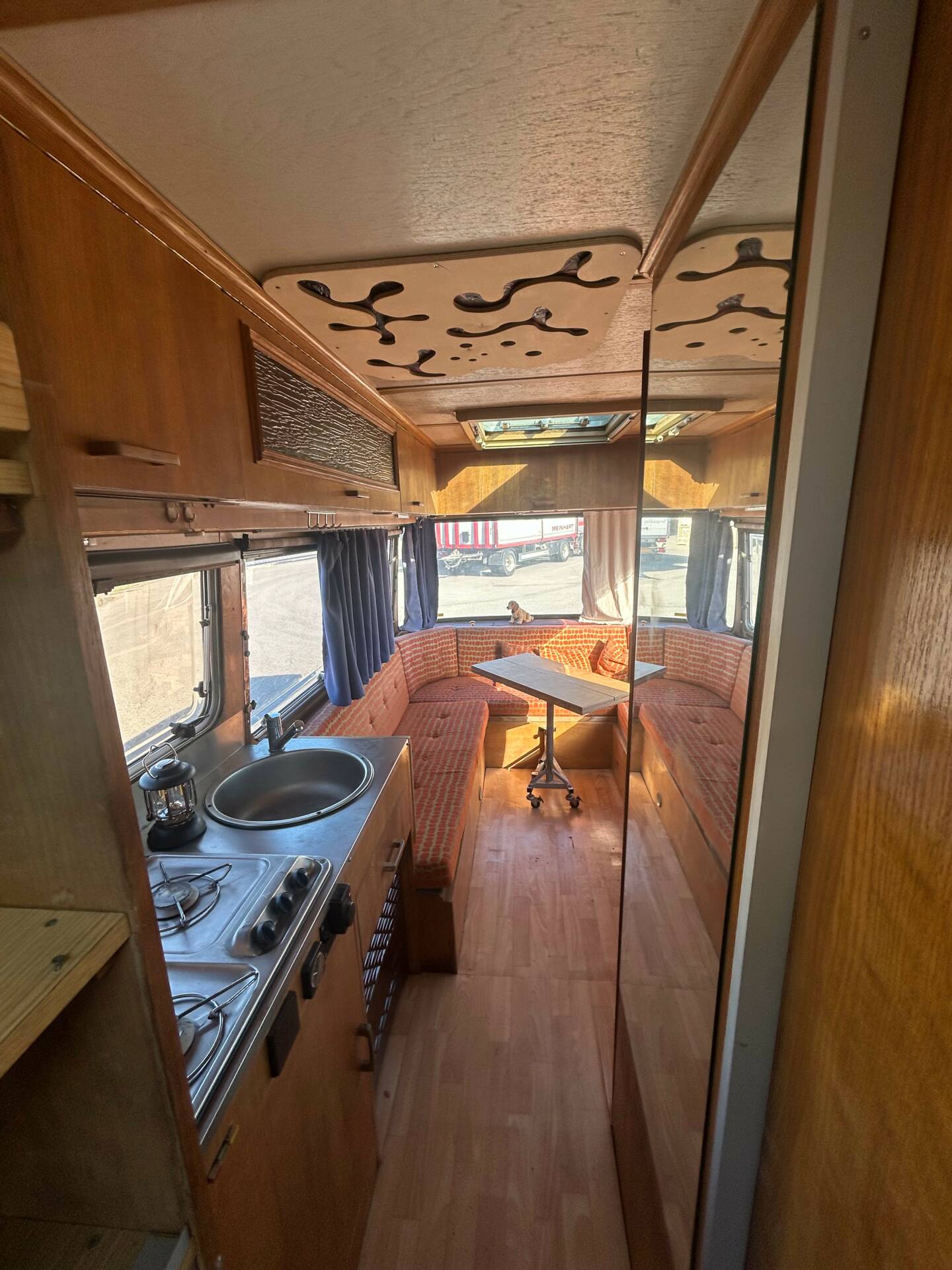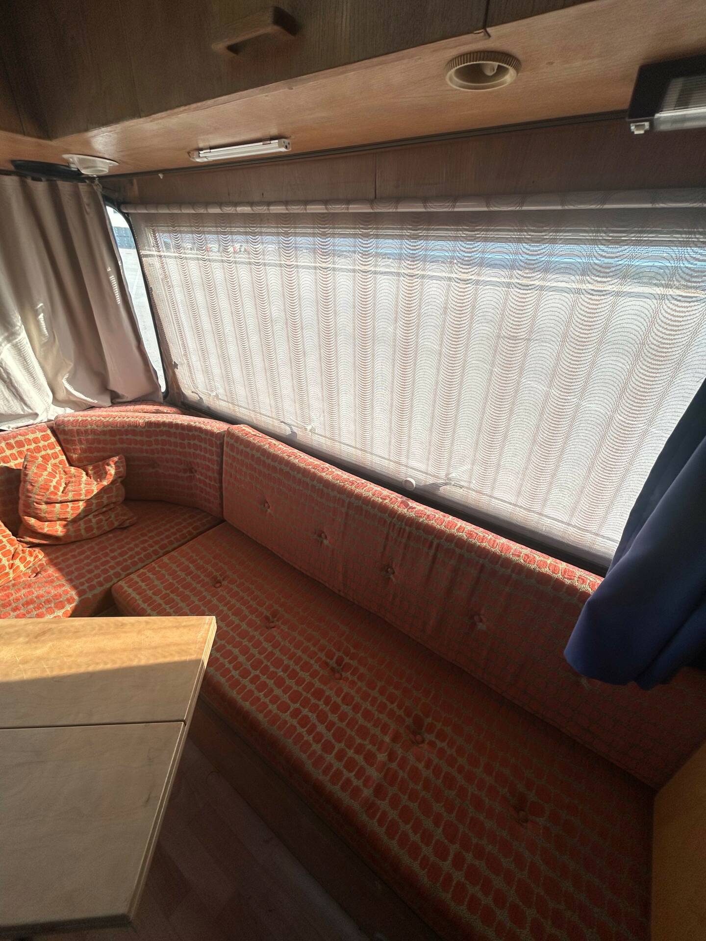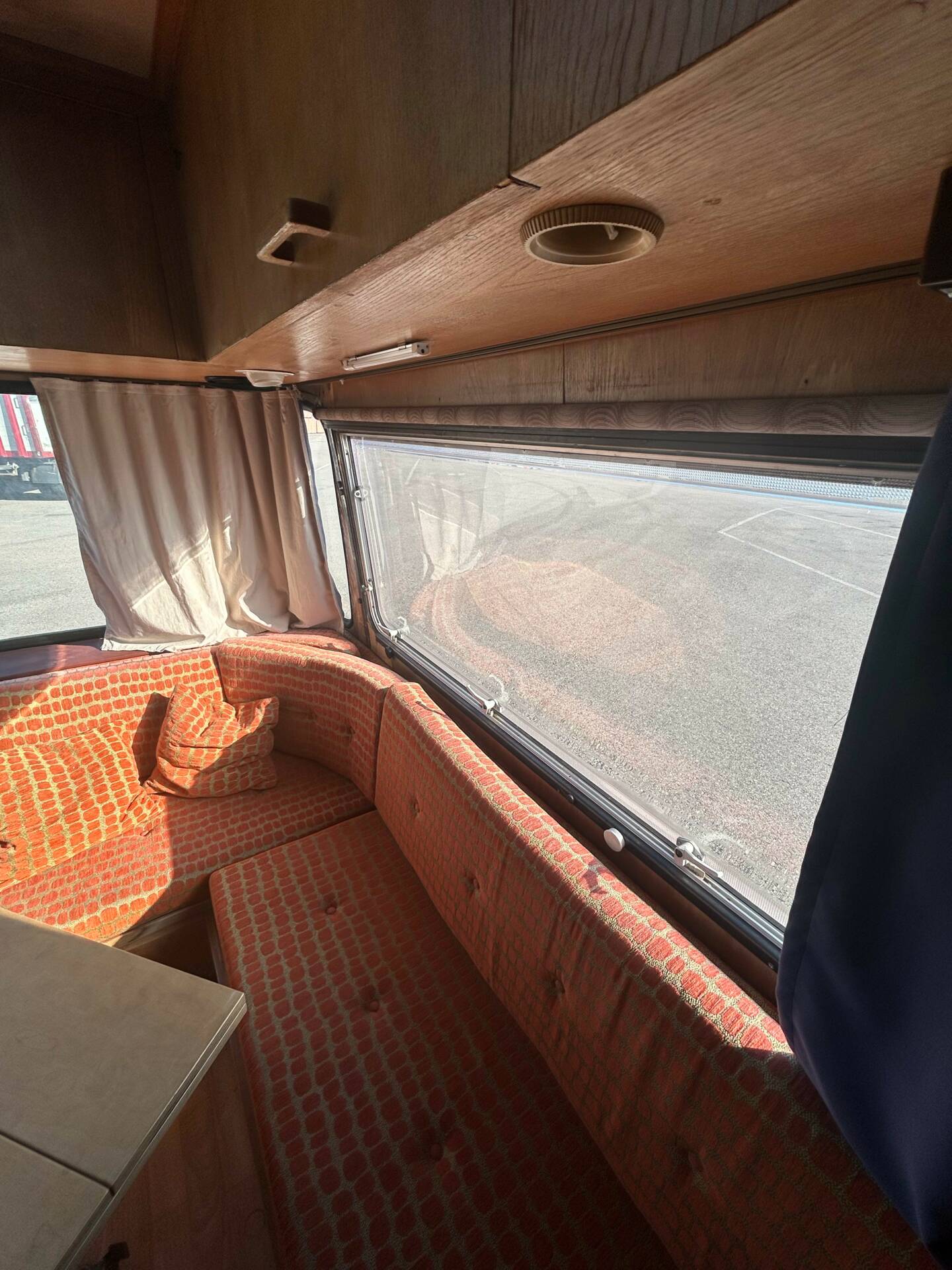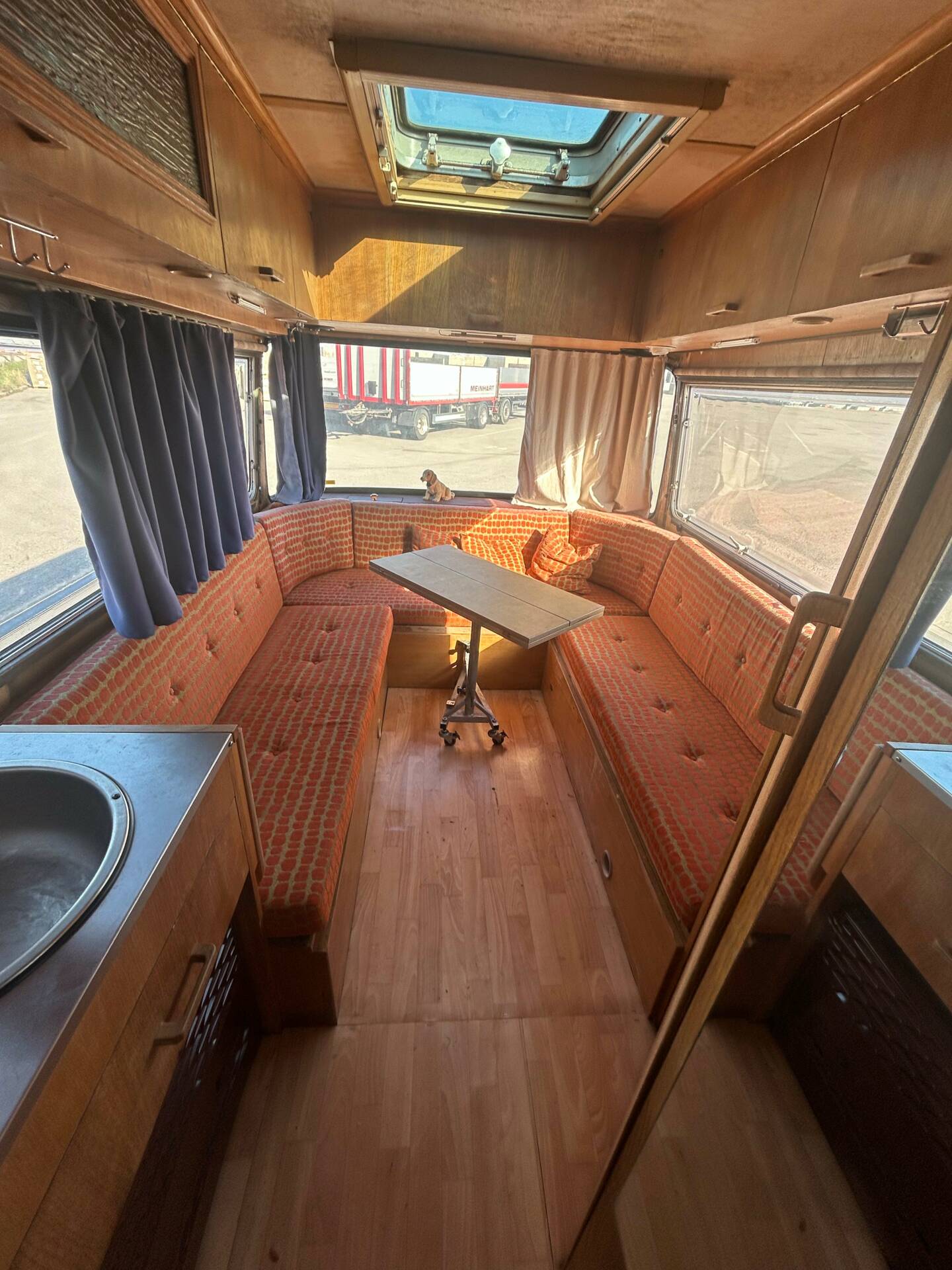 Die riesigen Fenster machen jede Aussicht zum Panoramablick. Ob Alpenkette oder Autobahnrastplatz – hier sitzt man wie im Wintergarten auf Schienen. Sanitäranlage? Selbstverständlich. Dusche und WC sind mit an Bord. Ebenso eine Einbauküche, Heizsystem und Stauraum für Wochen. Und dann die Kirsche auf dem Sahnehäubchen: eine elektrisch ausfahrbare Markise. In den 60ern war das der automobile Überflug. Heute ist es schlichtweg genial.