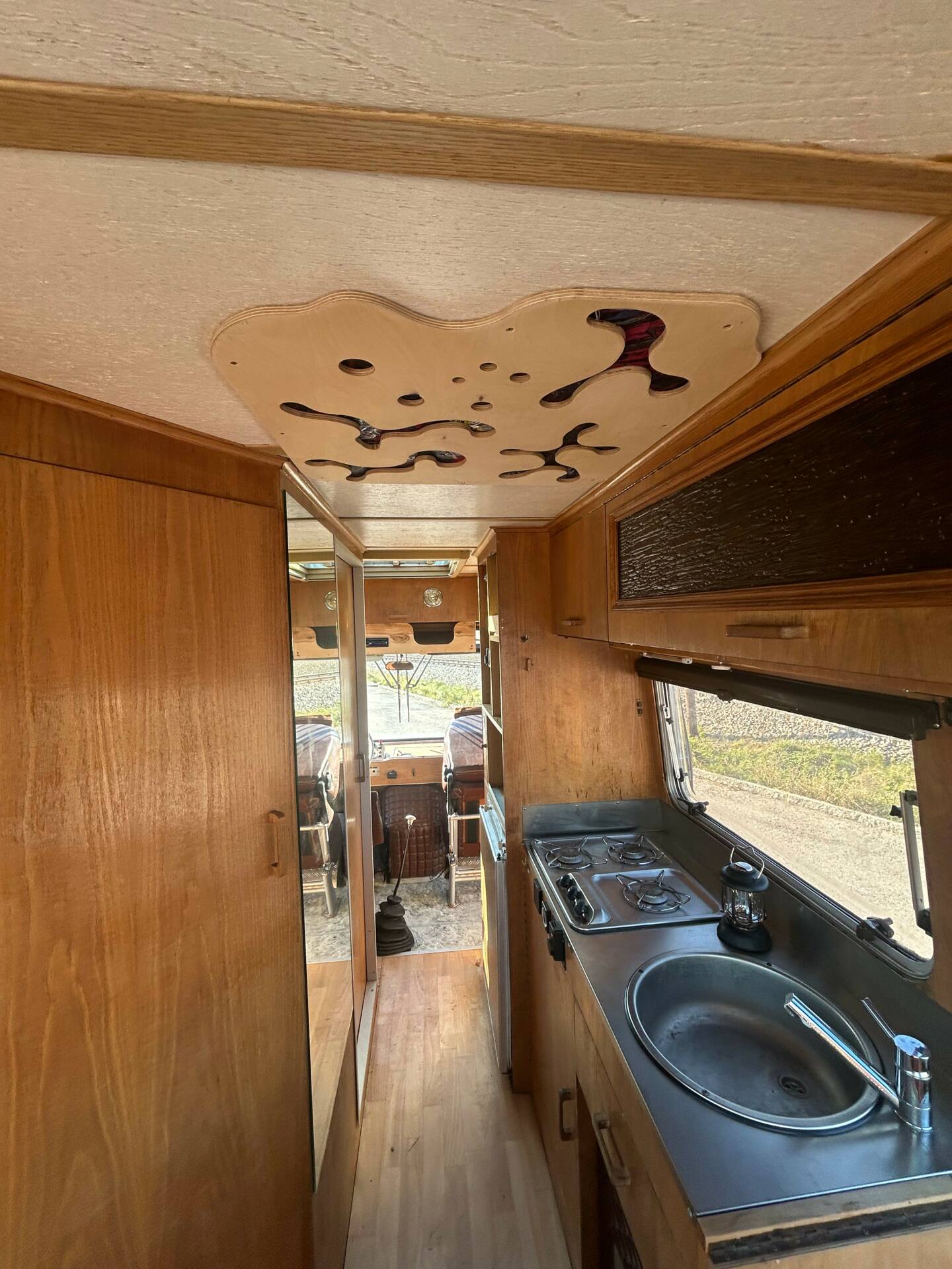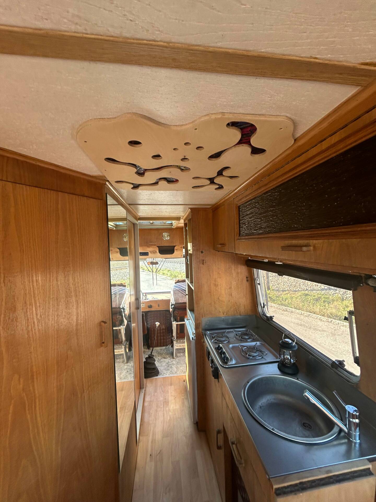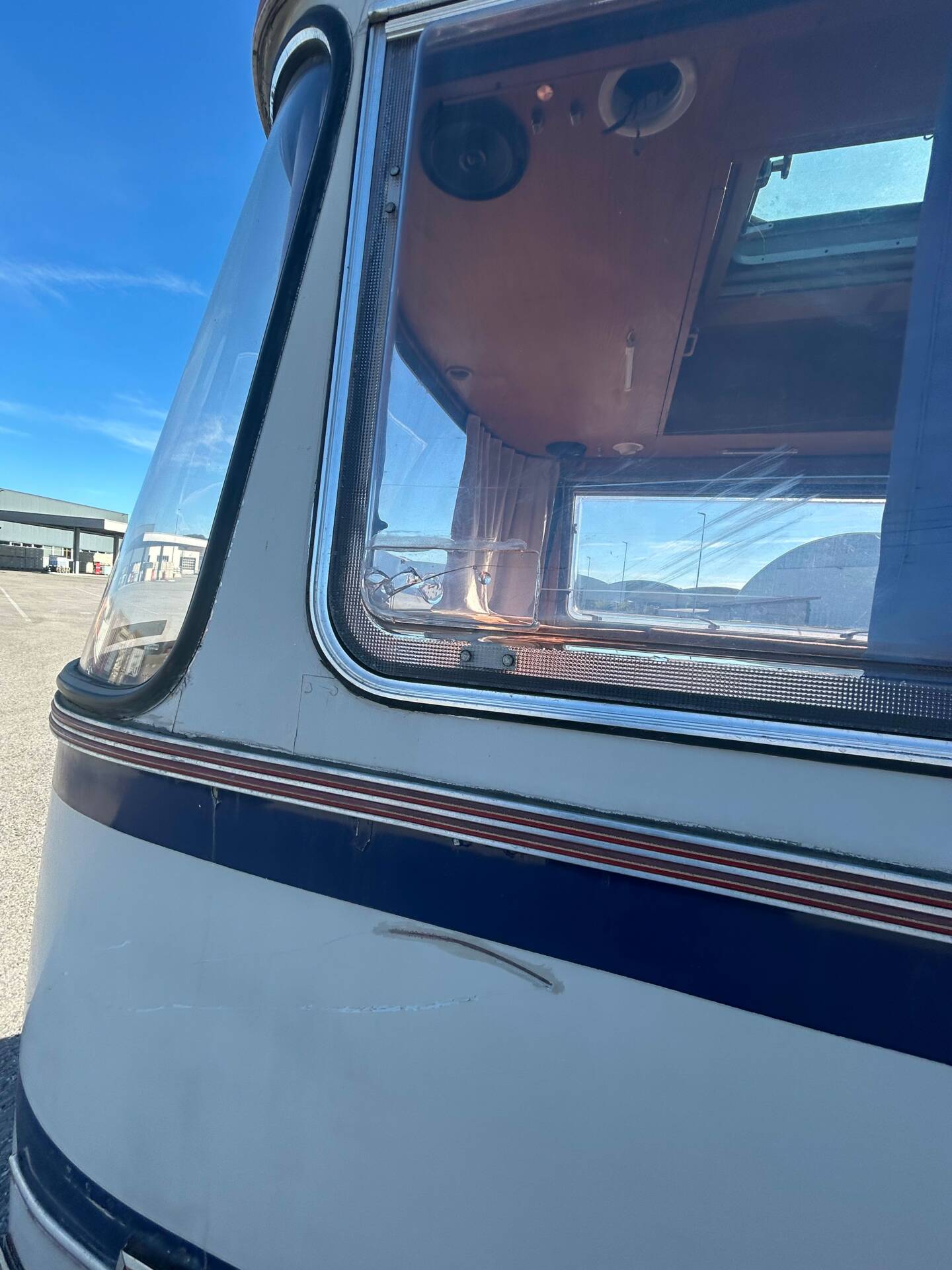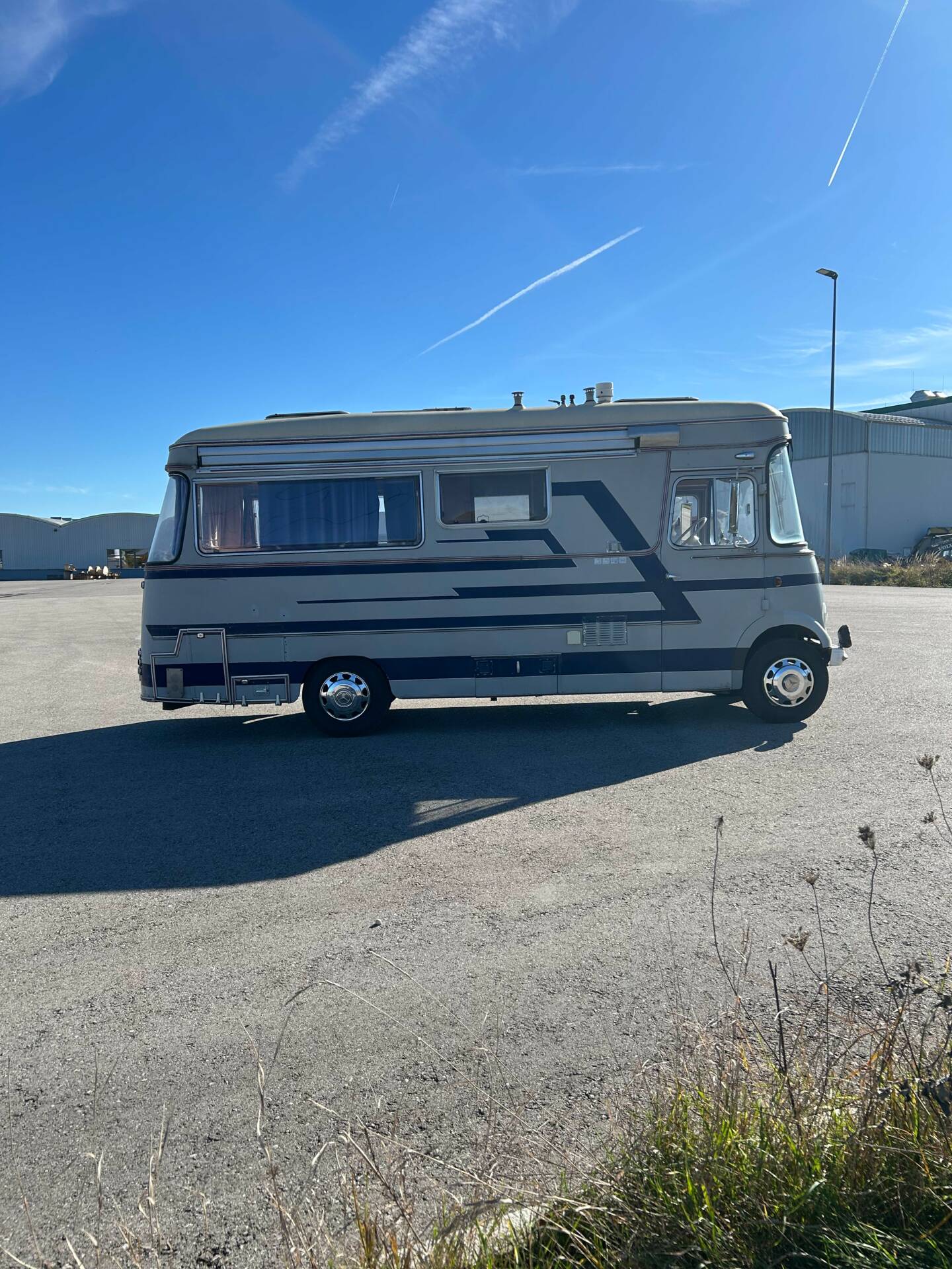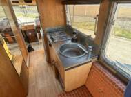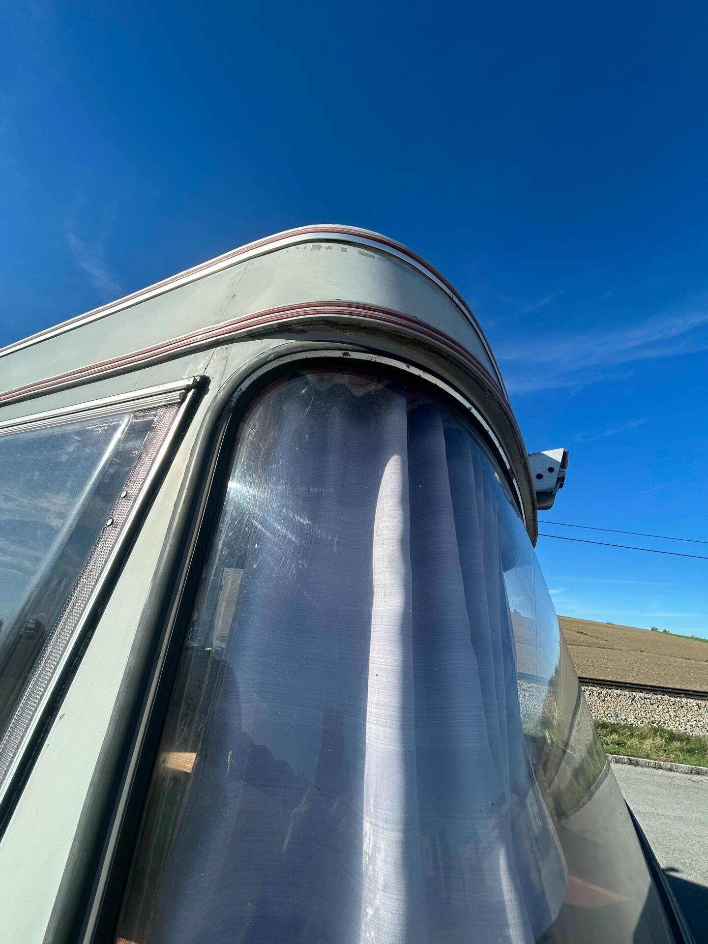 Die riesigen Fenster machen jede Aussicht zum Panoramablick. Ob Alpenkette oder Autobahnrastplatz – hier sitzt man wie im Wintergarten auf Schienen. Sanitäranlage? Selbstverständlich. Dusche und WC sind mit an Bord. Ebenso eine Einbauküche, Heizsystem und Stauraum für Wochen. Und dann die Kirsche auf dem Sahnehäubchen: eine elektrisch ausfahrbare Markise. In den 60ern war das der automobile Überflug. Heute ist es schlichtweg genial.
