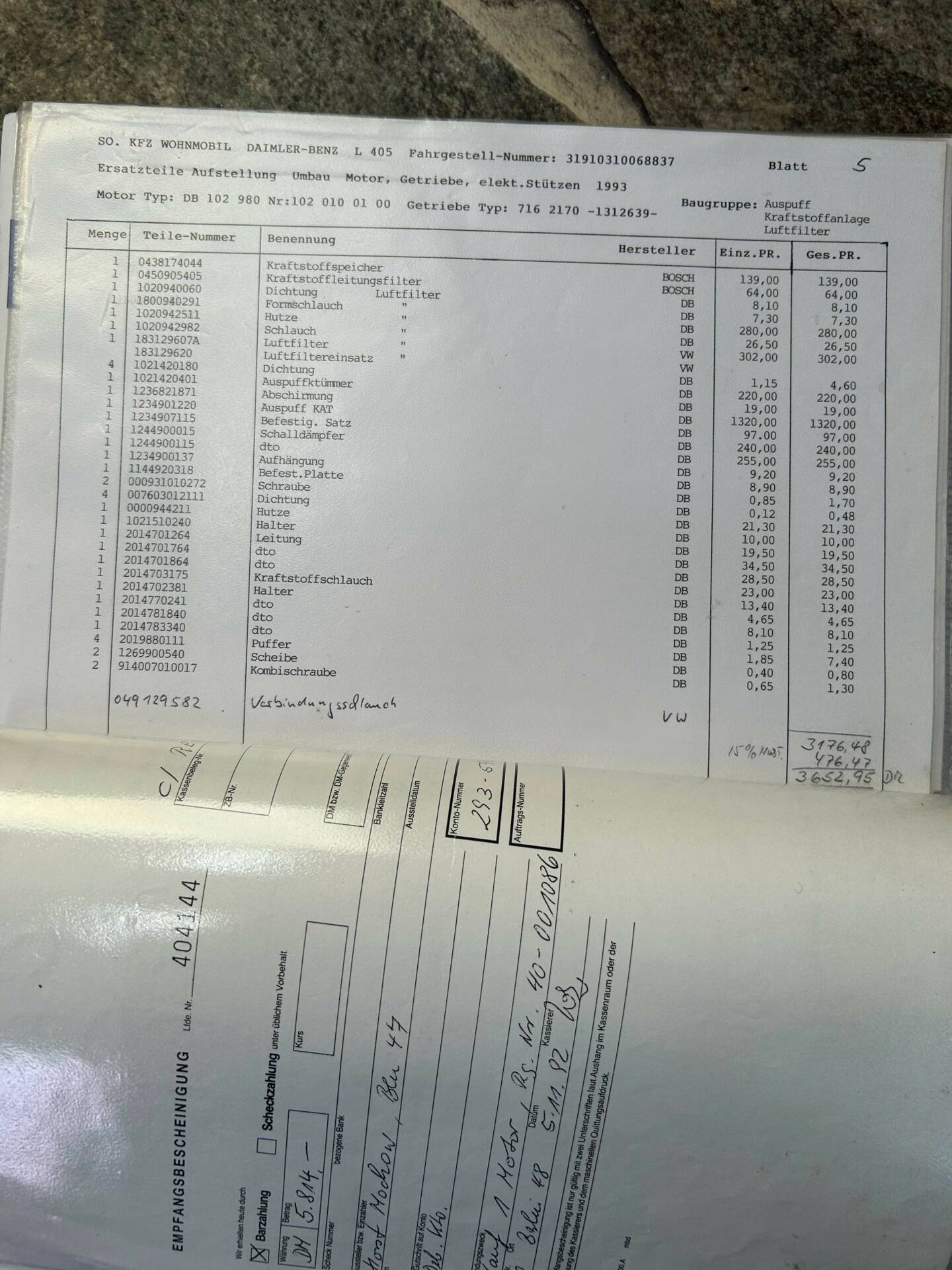 Technisch wurde er zuletzt 2021 vom TÜV abgenickt – mit geringen Mängeln. Inzwischen gibt’s neue Reifen, neue Bremsen, neue Gummilager, neue Bremsleitungen und einen frisch gewarteten Motor.