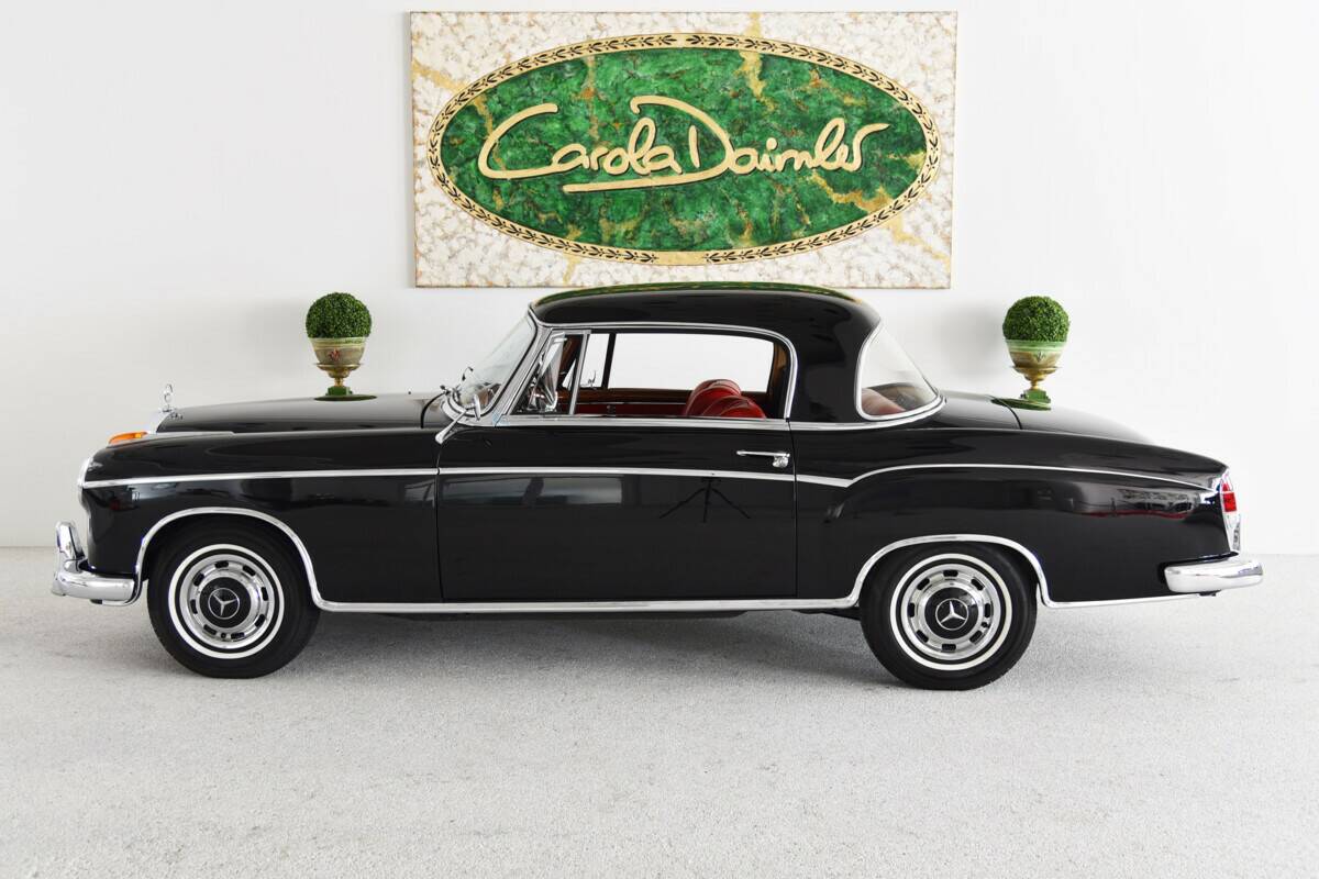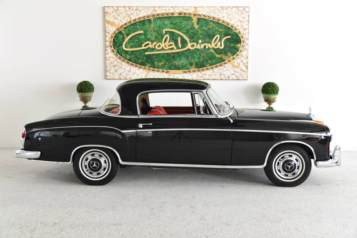 Dieses 220 SE Coupé befindest sich in einem wunderschönen restaurierten Originalzustand. Laut der vorliegenden Datenkarte ist es Matching Numbers und Matching Colors. Es präsentiert sich heute wie bei der Auslieferung im schönen Schwarz (040) mit rotem Leder (1088). Das Fahrzeug wurde am 12.05.1960 als Sonderausführung für die USA mit Sealed-Beam-Scheinwerfern ausgeliefert. Der Ponton wurde vor einiger Zeit restauriert und präsentiert sich dementsprechend in einem tadellosen Zustand. Der Einspritzmotor läuft sauber und beschleunigt das Fahrzeug mit seinen 120 PS in allen Lebenslagen ausreichend. Das Schaltgetriebe mit Lenkradschaltung lässt sich sauber schalten, die Getriebeabstufung erlaubt entspanntes Fahren auf Landstraßen auch bei höheren Geschwindigkeiten. Die Innenausstattung hat einen tollen Charme und ist sehr gepflegt mit einer schönen Patina. Ein zuverlässiger Begleiter für Ausfahrten und auch längere Touren. Die Vierzylinder Ponton-Modelle erschienen bereits 1953, bis ein Jahr später auch Sechszylinder-Liebhaber auf ihre Kosten kamen. Zuerst kam die Limousine (220 a) auf den Markt, darauf folgte im Juli 1956 das Cabriolet und drei Monate später schließlich das 220 S Coupé. Alle Pontons basieren auf einer selbsttragenden Karosserie, im Gegensatz zu den Vorkriegsmodellen und der 300er-Reihe (z. B. W 186), welche noch auf einem separaten Fahrgestell aufgebaut wurden.Die 220 SE Ponton-Modelle entsprechen bis auf den Motor ihren Schwestermodellen vom Typ 220 S (W 180). Die aufwendige Benzindirekteinspritzung aus dem 300 SL Flügeltürer wurde vereinfacht und sorgte ab 1958 als mechanische Saugrohreinspritzung für eine Leistung von 115 PS. Ab September 1959 kamen überarbeitete Motoren zum Einsatz, diese erhielten eine Leistung von 120 PS.Im August 1959 erschien der Nachfolger, die Baureihe W 111. Die Limousinen des W 128 verschwanden ab diesem Zeitpunkt vom Markt, die Coupés und Cabrios wurden bis November 1960 weiter produziert. Es wurden insgesamt 1.942 Coupés und Cabrios mit Einspritzmotor gebaut, darunter lediglich 830 Coupés, wodurch diese zu den selteneren Modellen der Daimler-Benz Nachkriegszeit gehören.