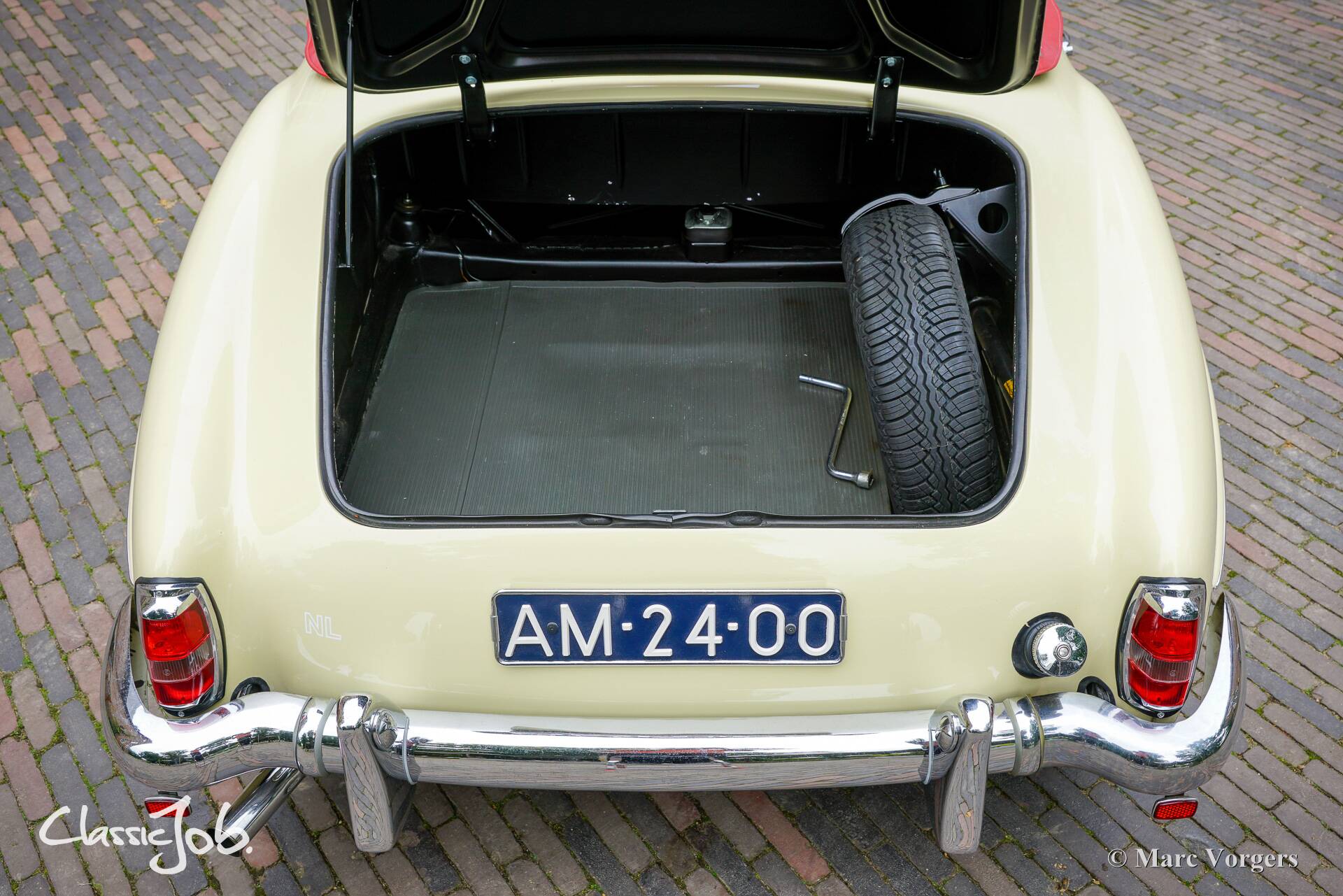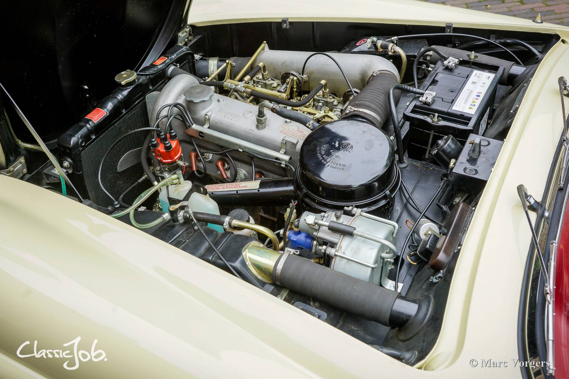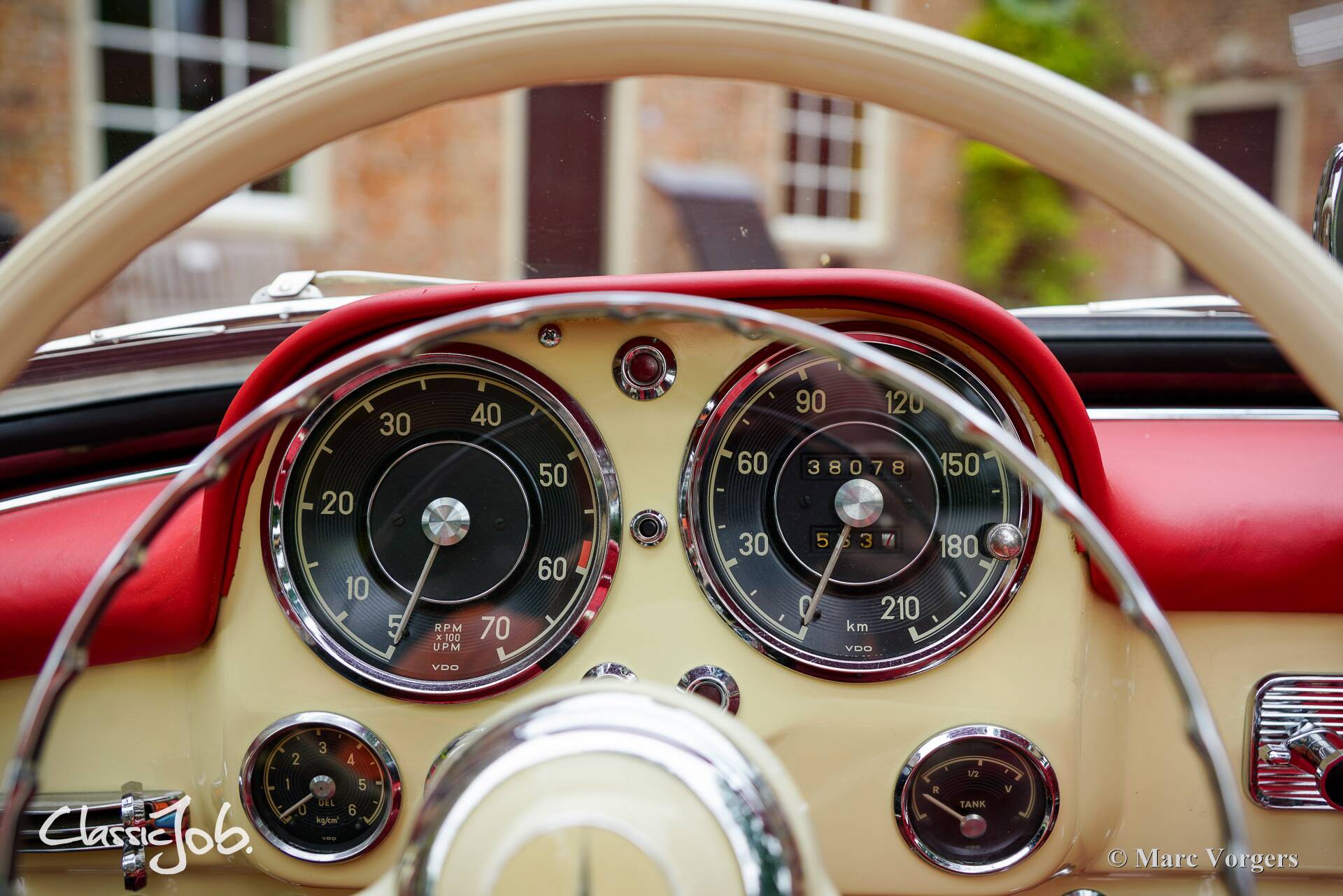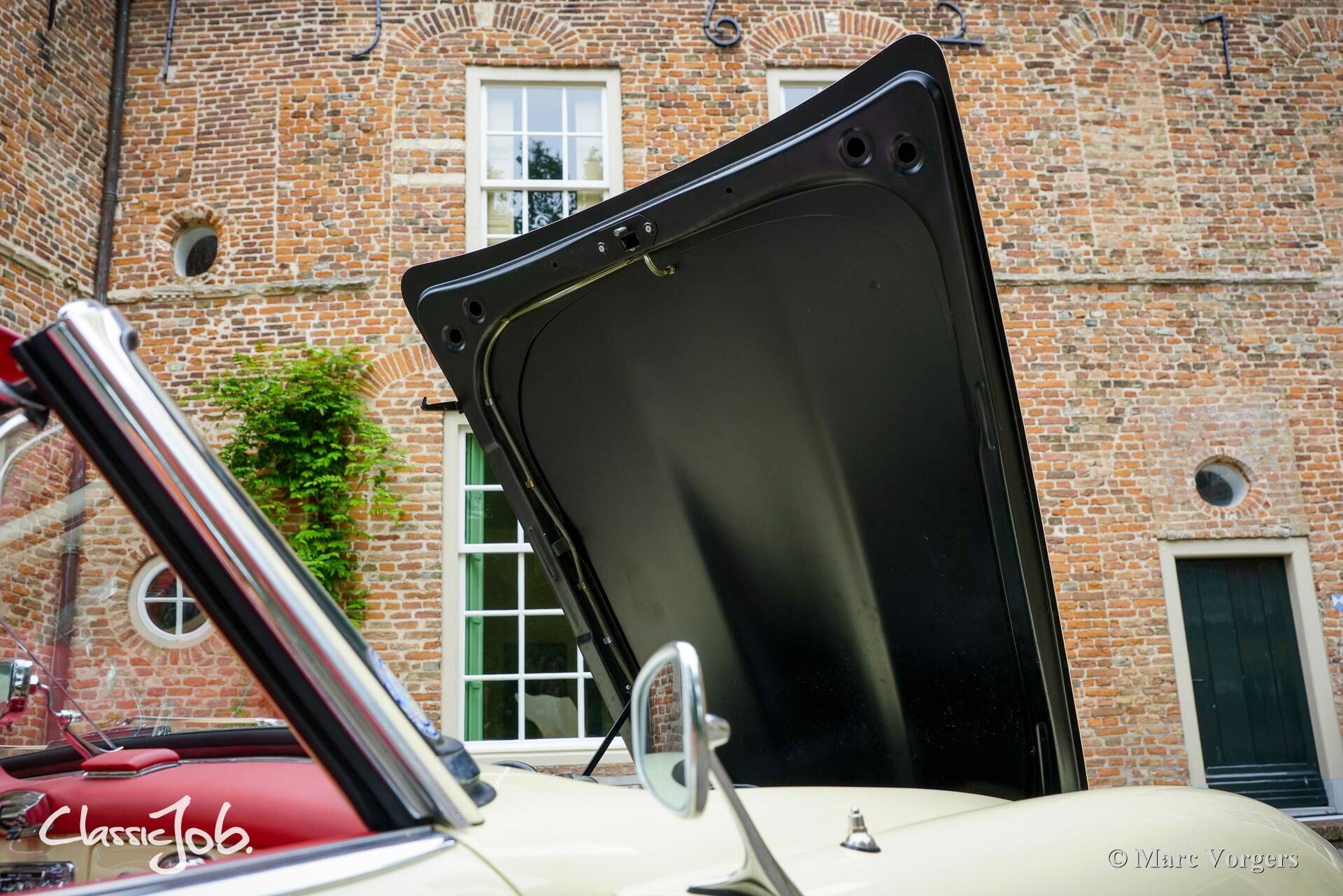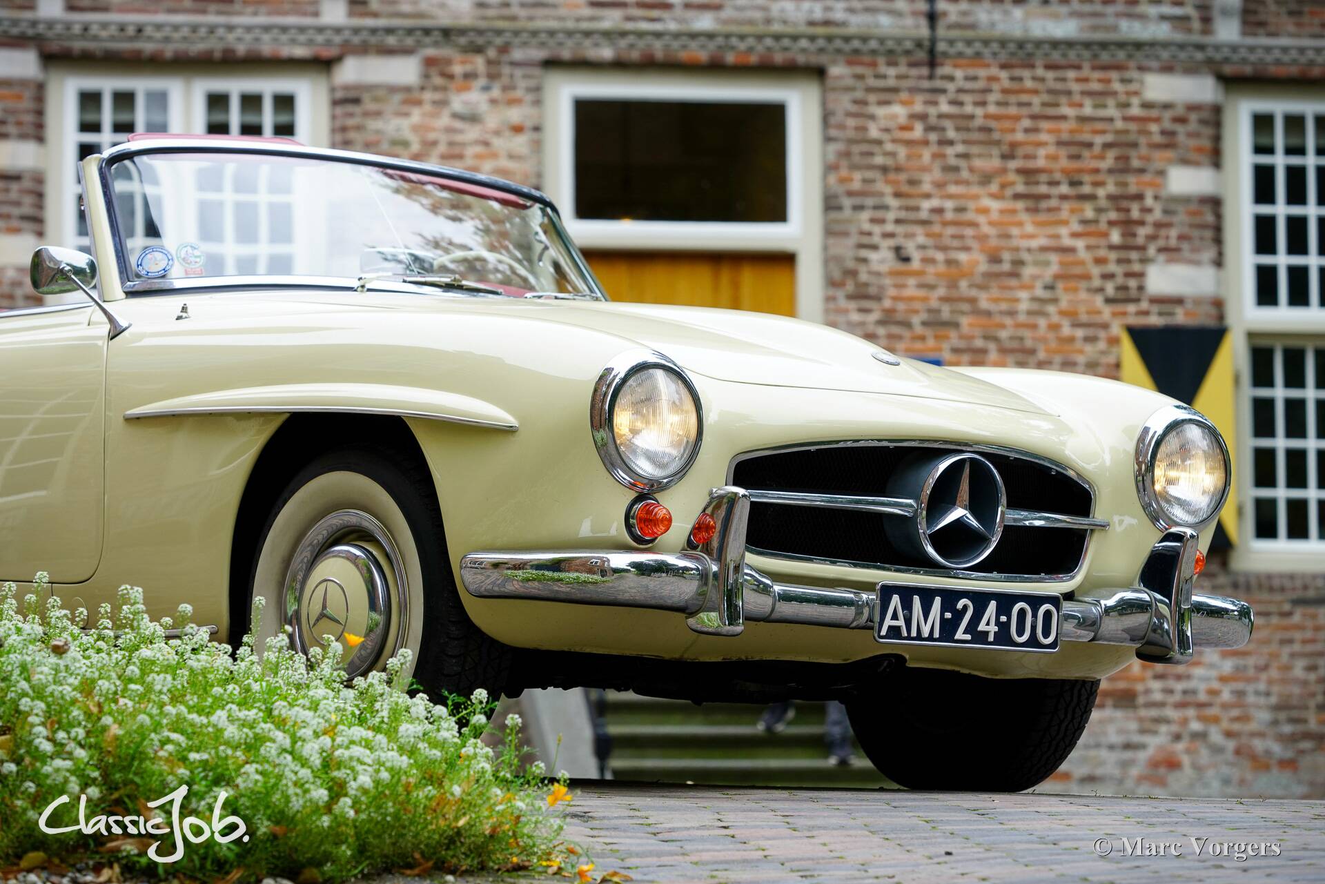 Mercedes-Benz 190 SL, bouwjaar 1959. Chassisnummer 121040-10-9500466. Kleur ivoor (wij vermoeden Elfenbein DB608) gecombineerd met een roodlederen interieur en beige tapijt. Deze prachtige Mercedes-Benz 190 SL werd voor het eerst geregistreerd op 28 februari 1959 en de auto werd op 7 november 2006 naar Nederland geïmporteerd. Ongeveer tien jaar geleden werd de auto uitgebreid gerestaureerd tot concoursstaat! De auto verkeert nog steeds in een prachtige topconditie! De auto toont prachtige originele details en vertoont slechts de kleinste gebruikssporen. Deze prachtige Mercedes 190 SL is in juni 2021 door de huidige eigenaar gekocht en onderhouden door Mercedes-Benz SL-specialist van Dijk in Nederland, waar ook een prachtige Becker Europa-radio is ingebouwd. De Mercedes-Benz 190 SL werd voor het eerst als prototype gepresenteerd op de International Motor Sports Show in New York op 6 februari 1954. Dit debuut werd geïnitieerd door de Amerikaanse importeur Max Hoffman. De productieversie werd in maart 1955 geïntroduceerd op de autosalon van Genève. De Mercedes-Benz 190 SL is een sierlijke tweezits roadster, ontworpen als een toegankelijkere aanvulling op de toen en nu zeer dure zescilinder 300 SL sport-/racewagen. De 190 SL biedt een verfijnde styling en een comfortabele reiservaring in plaats van pure prestaties. Dit prachtige exemplaar is tot een zeer hoge standaard gerestaureerd en de auto verkeert in een sublieme staat. Een geweldig exemplaar voor de veeleisende Mercedes-Benz liefhebber/verzamelaar. Deze auto is alleen op afspraak beschikbaar voor bezichtiging en een testrit.