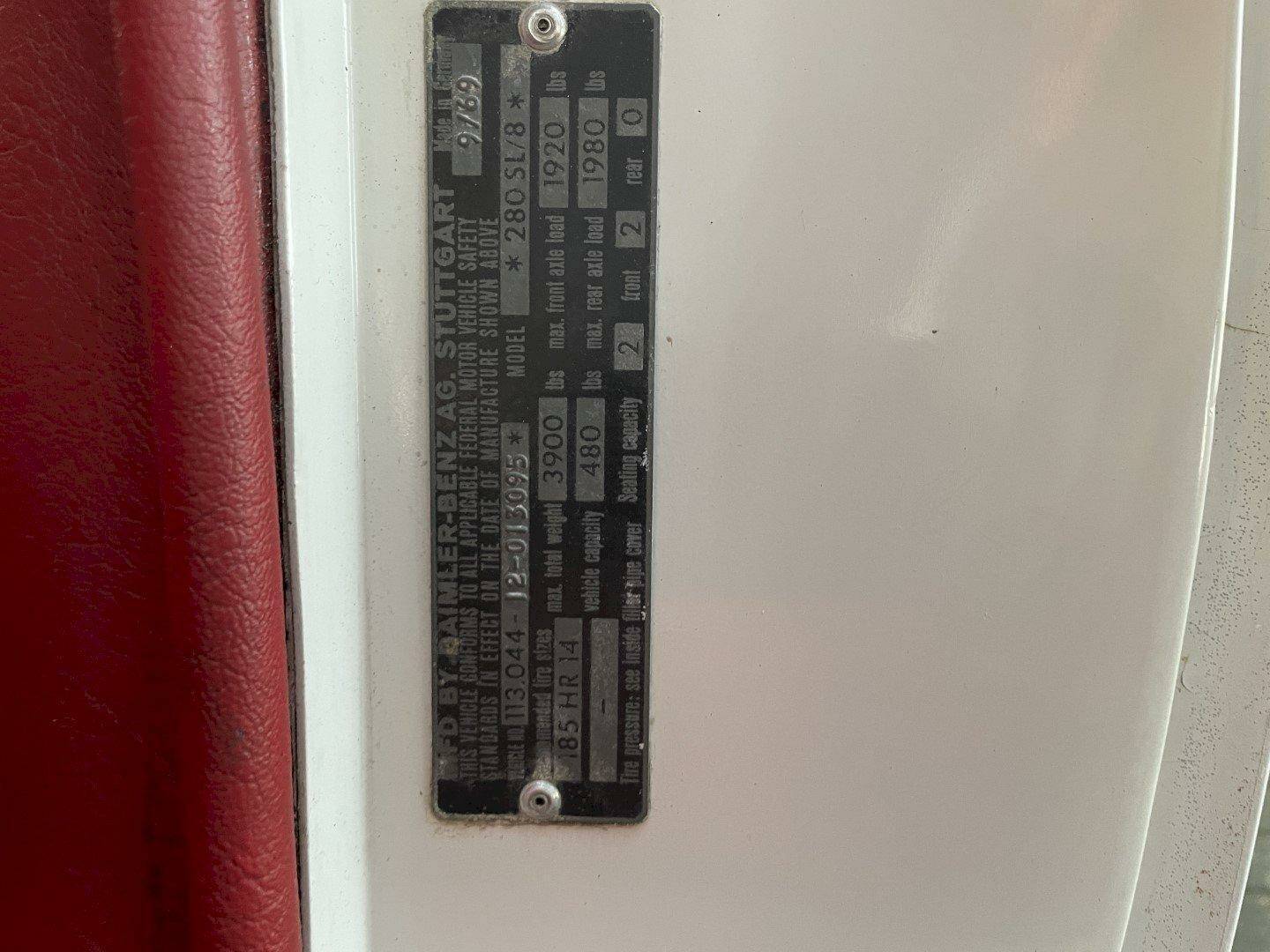 VIN # 11304412013095 (280SL1571)