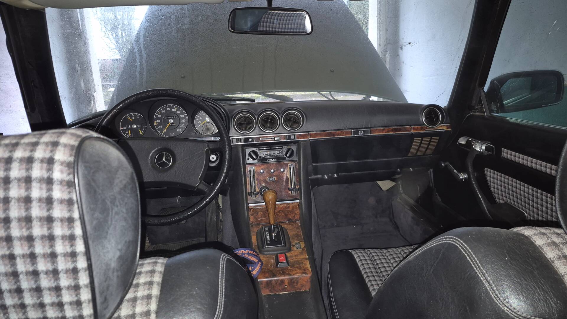 Zum Verkauf steht ein Oldtimer, der eine Restaurierung benötigt. Sowohl innen als auch außen gibt es altersbedingten Überarbeitungsbedarf. Der Zustand ist insgesamt passabel und eine gute Basis für ein Restaurationsprojekt.