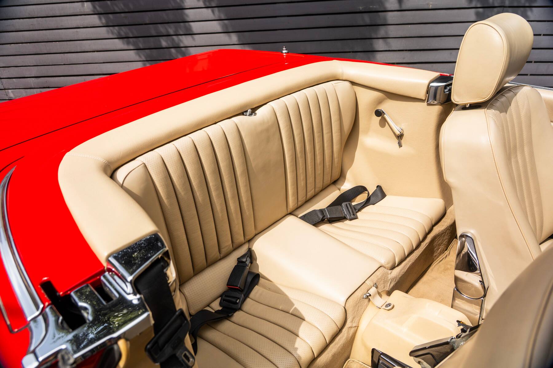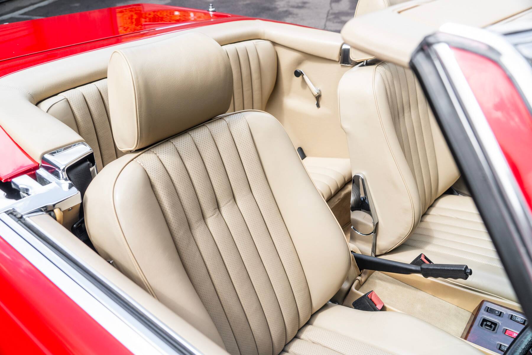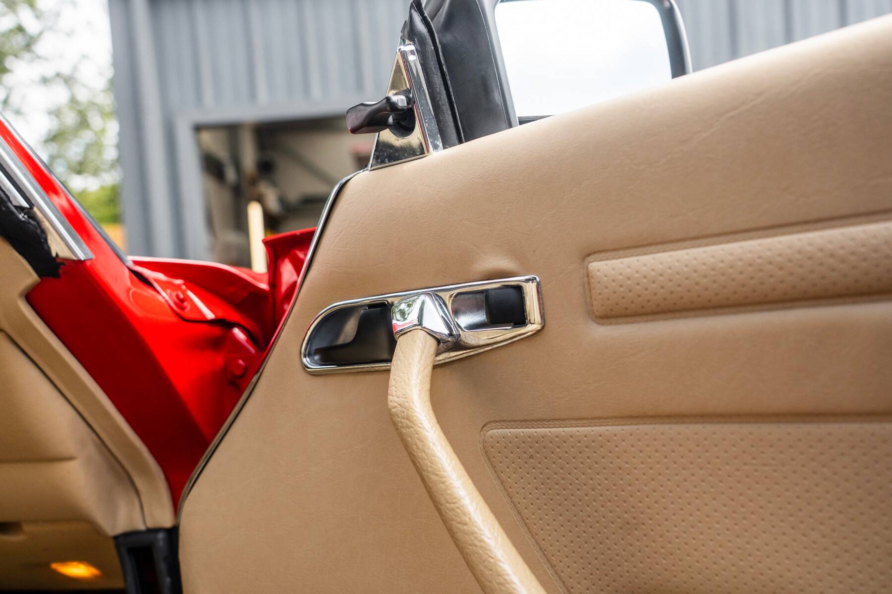 The smooth 3.0-litre straight-six engine is paired to a silky automatic transmission, offering an effortless drive that is equally at home on long-distance grand tours or summer weekend jaunts. The Signal Red exterior remains vibrant, a striking match with the period alloy wheels and chrome accents.