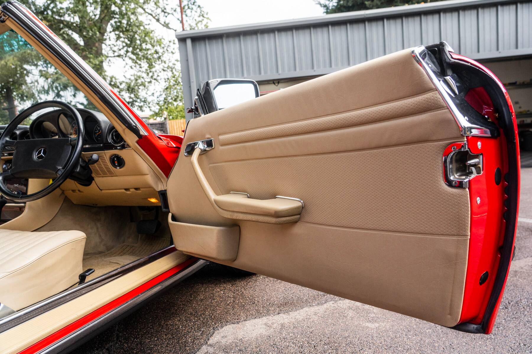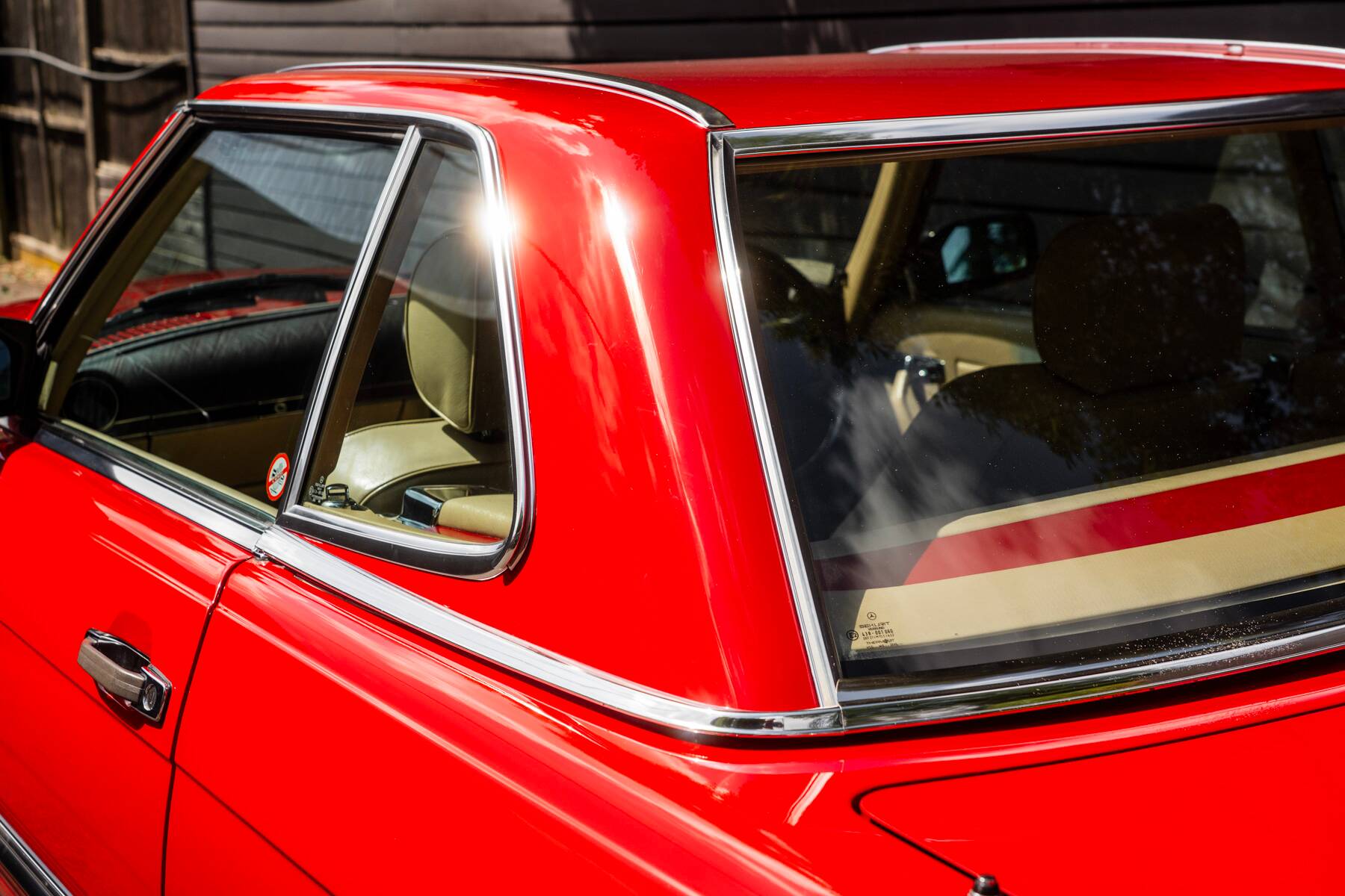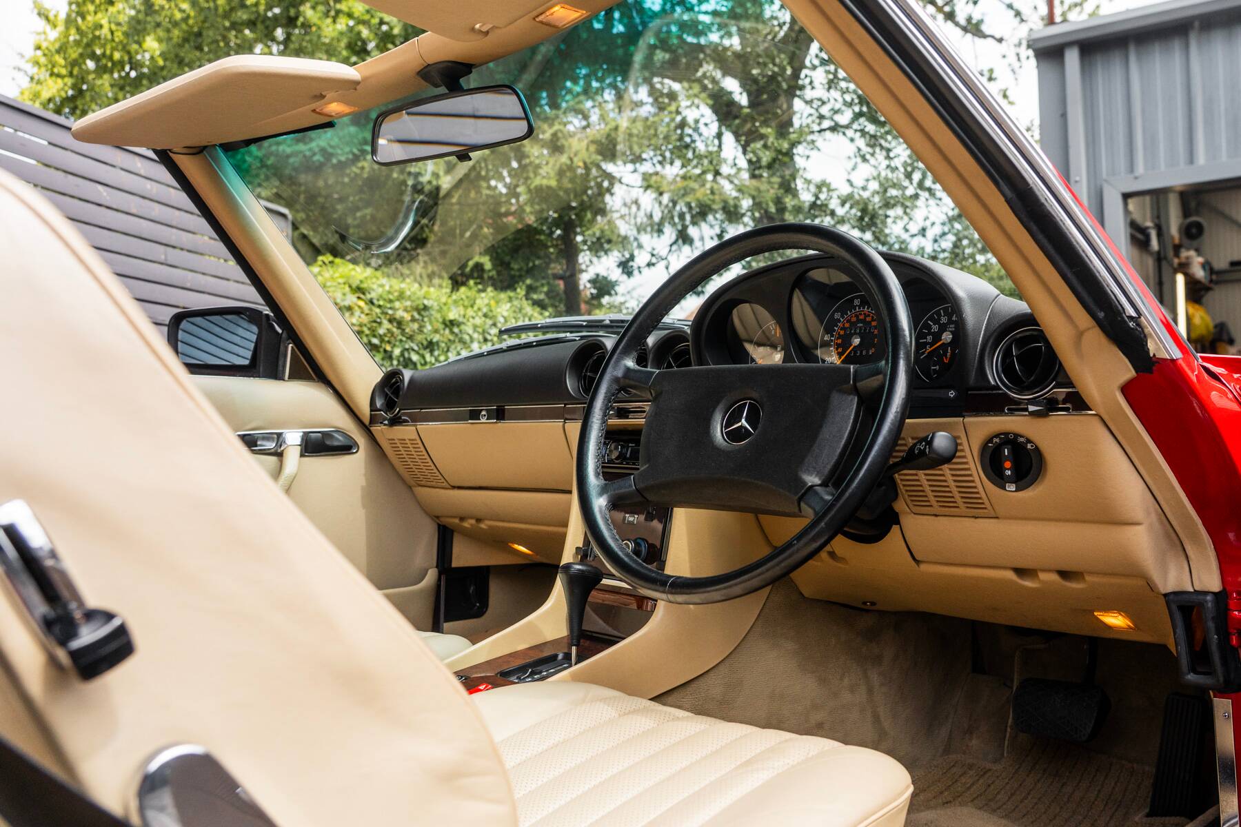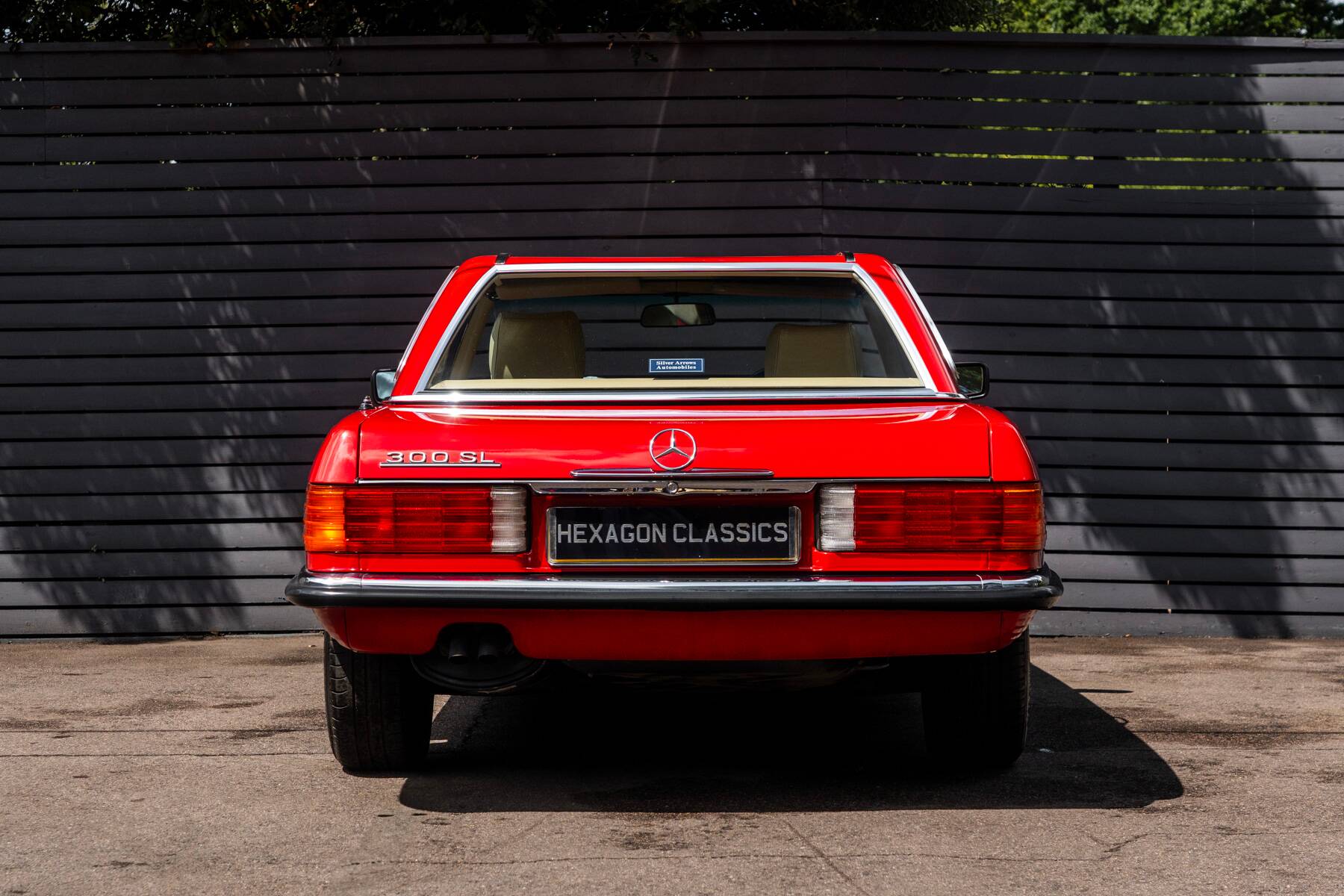 Hexagon Classics are delighted to present this superbly specified, low mileage, late-production Mercedes-Benz 300SL (R107) model, finished in the classic and sought-after combination of Signal Red with Mushroom leather interior. This elegant roadster represents one of the final evolutions of the iconic R107 series and benefits from all the refinements and improvements made over the model’s impressive 18-year production run.