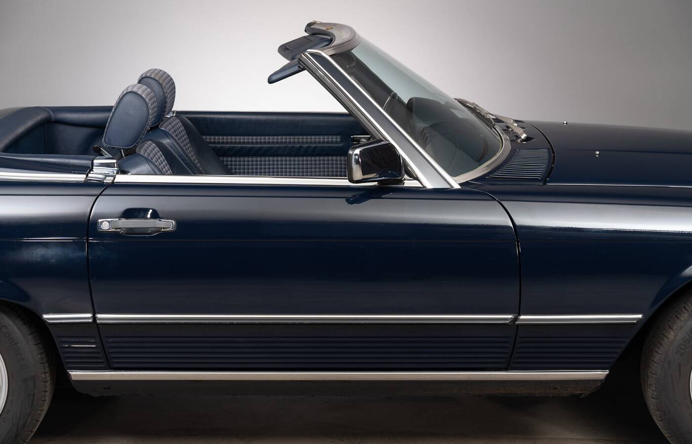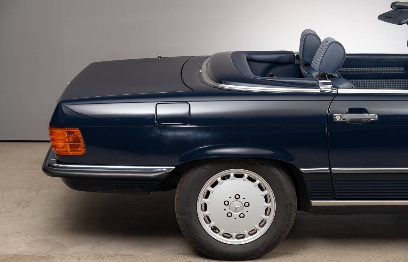Das hier angebotene Fahrzeug wurde am 28.05.1986 in Deutschland erstausgeliefert und befindet sich in zweiter Hand. Es überzeugt durch seine attraktive dunkelblaue Farbgebung mit blauem Karostoff-Interieur und passendem dunkelblauen Verdeck. Der Roadster präsentiert sich weitgehend im unberührten Originalzustand, überwiegend im Erstlack, und weist eine nachvollziehbare Eigentümer- und Laufleistungshistorie auf. Mit nur 149.163 km, vollständigen Bordpapieren inklusive Serviceheft, Hardtop sowie vorhandenem Wertgutachten bietet sich Ihnen eine seltene Gelegenheit, einen authentischen und gepflegten R107 in klassischer Farbkombination zu erwerben.