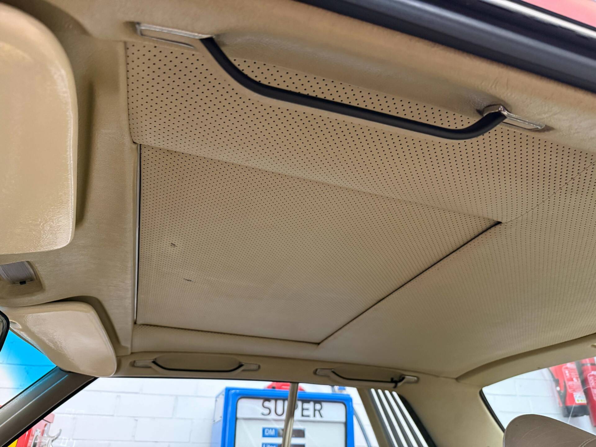 Der Mercedes befindet sich innen bis auf die Beschädigung des Fahrersitzes in einem guten Zustand.