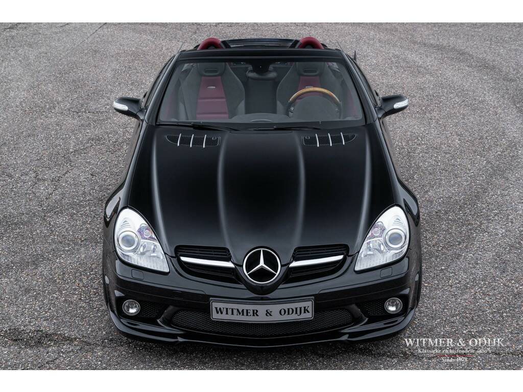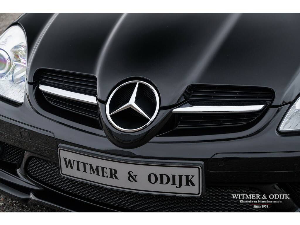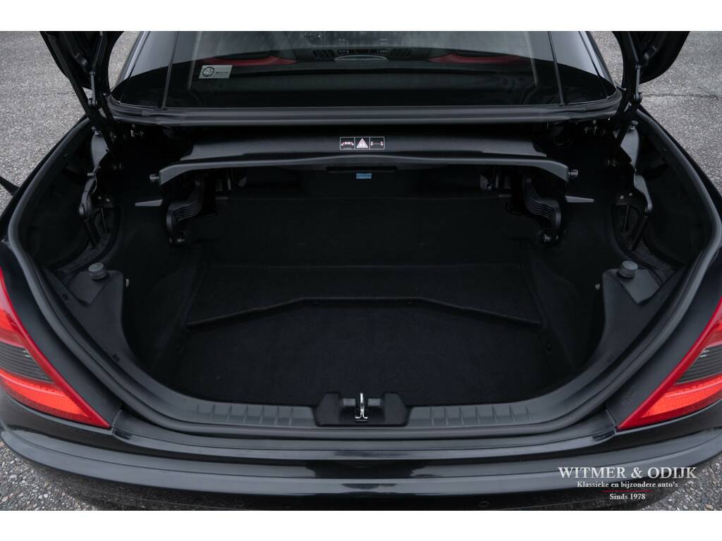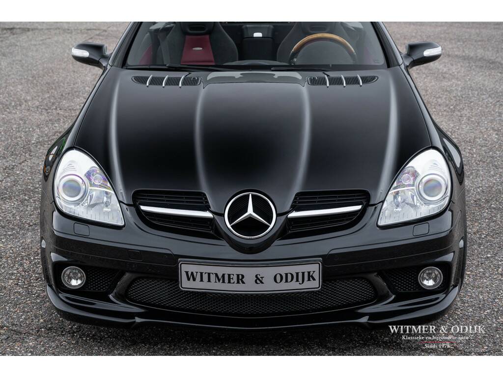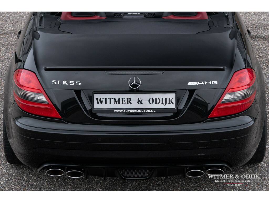 Een V8 in een roadster van dit formaat? 'Wir schaffen das' zeiden ze destijds al met vooruitziende blik bij AMG in Affalterbach.. Geen van de concurrenten bood een vergelijkbare motorisering in die tijd.. Tegenwoordig mag je al blij zijn als er een drie-pitter onder de motorkap huist. Het topmodel uit de SLK serie kreeg van AMG die heerlijke V8 in het vooronder, 360pk ging er naar de achterwielen met een even indrukwekkend koppel van 510Nm. Natuurlijk werden het differentieel, onderstel en de remmen daarop aangepast. Geperforeerde remschijven van 34cm aan de voorzijde, dikke stabilisatorstangen en bijv. de aerodynamische bumpers beteugelde de capaciteiten van de indrukwekkende motor. Alleen het motorgeluid werd wat minder onder controle gehouden, wat een heerlijke roffel komt er uit die vier pijpen! Sommige eigenaren waren zo enthousiast over hun nieuwe aanwinst dat ze hun SLK nog leuker maakte. Dure Carlsson velgen, carbon spoiler achter, two-tone interieur, premium stereo, Designo details en meer leuke extra's om de aankoop van deze SLK te vieren werden besteld. Deze SLK is afkomstig uit een verzameling, maakte daarom weinig kilometers en werd zichtbaar fanatiek verzorgd. In prachtig Obsidian Black zonder gebruikssporen. Foutloos interieur en in nieuwstaat zijnde velgen. Aantrekkelijk geprijsd dus wie net zo snel is als deze SLK... die heeft straks misschien Fernando Alonso of Kimi Räikkönen in zijn spiegel. In die tijd was de SLK55 AMG de safetycar in de F1, klein beetje aangepast natuurlijk.