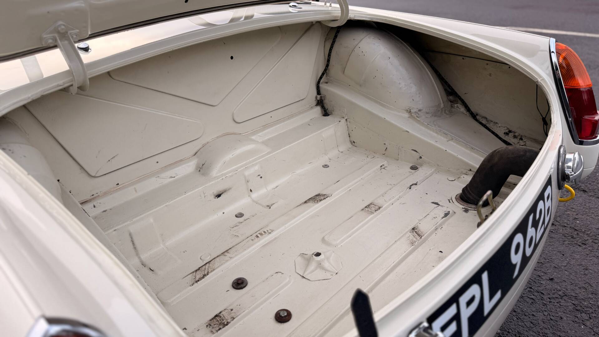 The front body styling includes the mandatory lower spoiler giving high speed stability plus cool air intakes for the brakes and engine. The headlamps have the aerodynamic Perspex covers essential for top speed running. EPL 962B had the mechanical spec’ uprated accordingly by Maidstone Sports Cars. This includes: