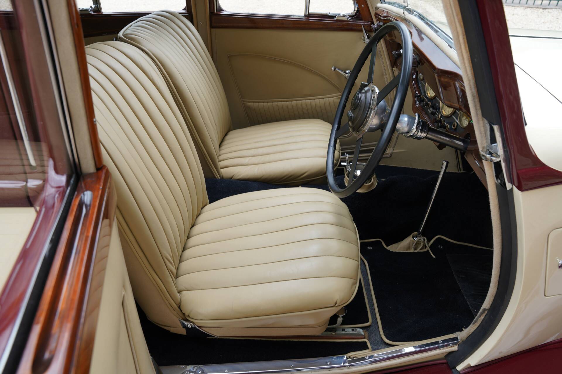 Diese MG SA Sport Saloon aus dem Jahr 1937 wurde in den 1990er Jahren von dem bekannten Spezialisten Bart Holland vollständig restauriert. Seither ist der Wagen hervorragend erhalten geblieben, was sich an der edlen Verarbeitung in der stilvollen Zweifarbenkombination aus Burgundy und „Cream Cracker“ zeigt.