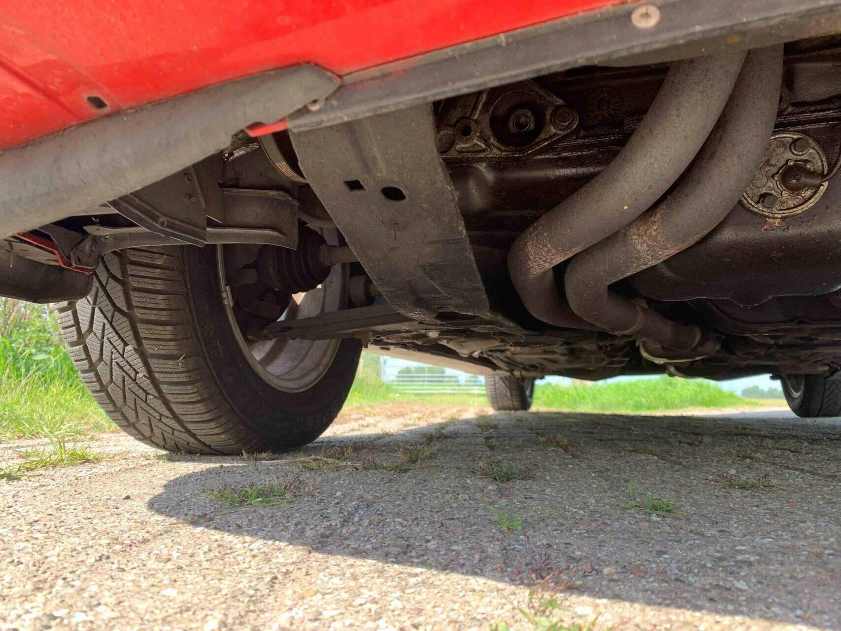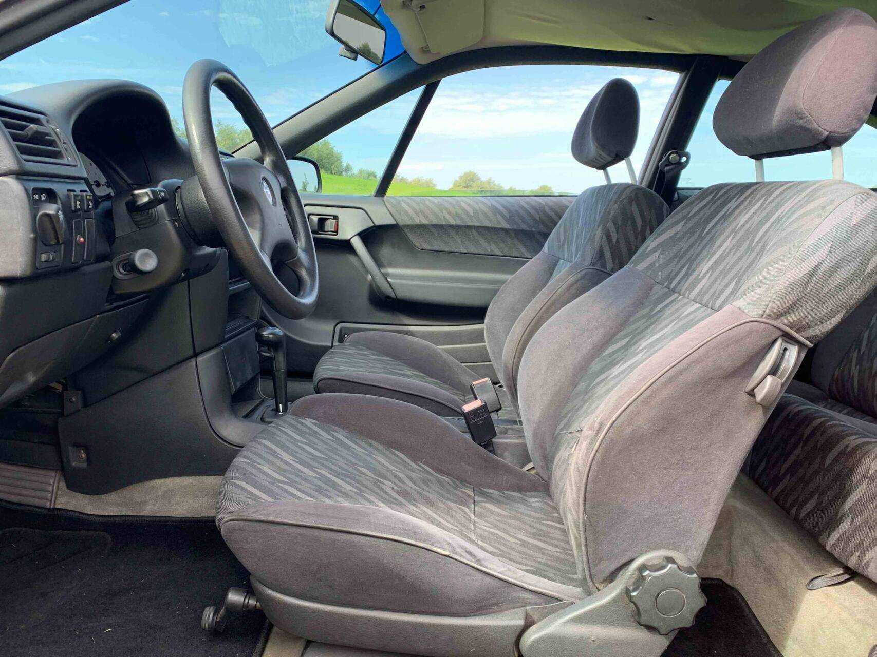 De motorruimte oogt ongerestaureerd maar netjes, wat wijst op regulier onderhoud in plaats van op cosmetische details. Deze Calibra biedt een toegankelijke instap in het bezit van een coupé uit de jaren 90 en combineert authentieke stijl met dagelijks gebruiksgemak.
