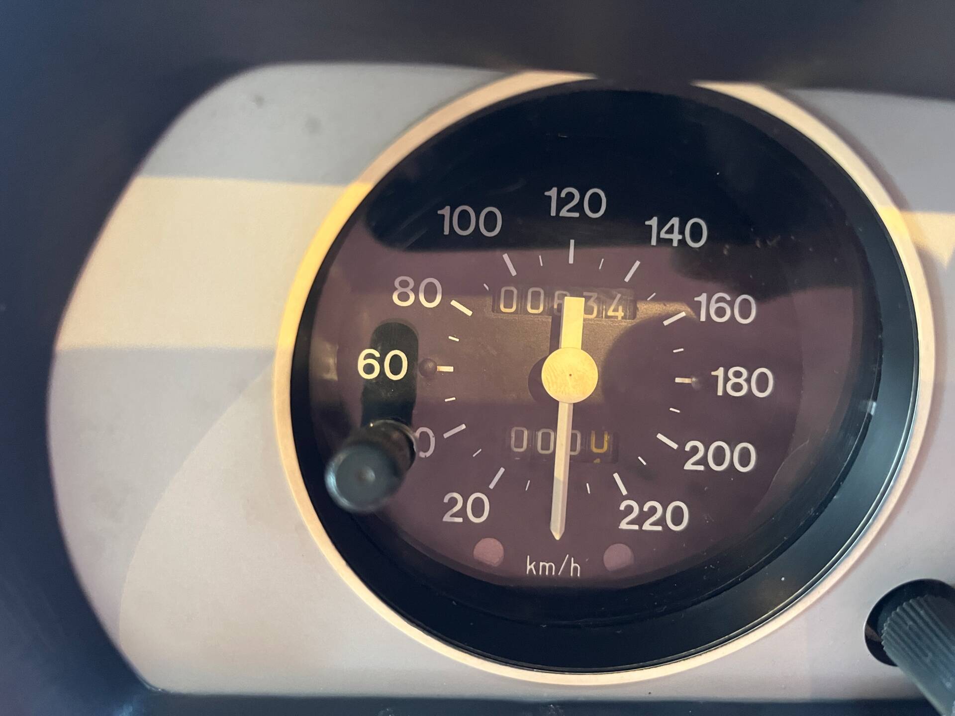 This Peugeot 504 Coupe V6 Automatic (C33) was first registered in Liechtenstein in September 1975. The car was purchased in the 1990's by a family-owned Peugeot dealership in Märstetten, Switzerland. After extensive maintenance and a partial restoration (including new front fenders, sills, and new paint), the car was stored in this company's Tiefgarage for over 25 years, without being driven. Liechtenstein Registration was deleted on December 1st, 1990. The car was never registered in Switzerland. I acquired the car in 2022. The Peugeot has since been made fully roadworthy and registered in the Netherlands. The color is Gris-Argento Mét. (HB1399) with a matching blue velours interior. To get the car approved by the RDW (Netherlands Vehicle Authority), the entire brake system and steering box were overhauled, the exhaust replaced (stainless steel), and new, slightly wider tires (195/70R14) were mounted. The ignition system, including battery, also needed to be replaced. All fluids and filters were refreshed. A new fuel pump was installed, and a manual choke was installed. The indicated mileage is 650 km, but the entire instrument panel was replaced on October 30, 2025, due to various electrical defects. The removed, but still functioning, odometer then read 13,565 km, and it is assumed that the total odometer reading is therefore 113,563 km (the meter has only 5 digits).