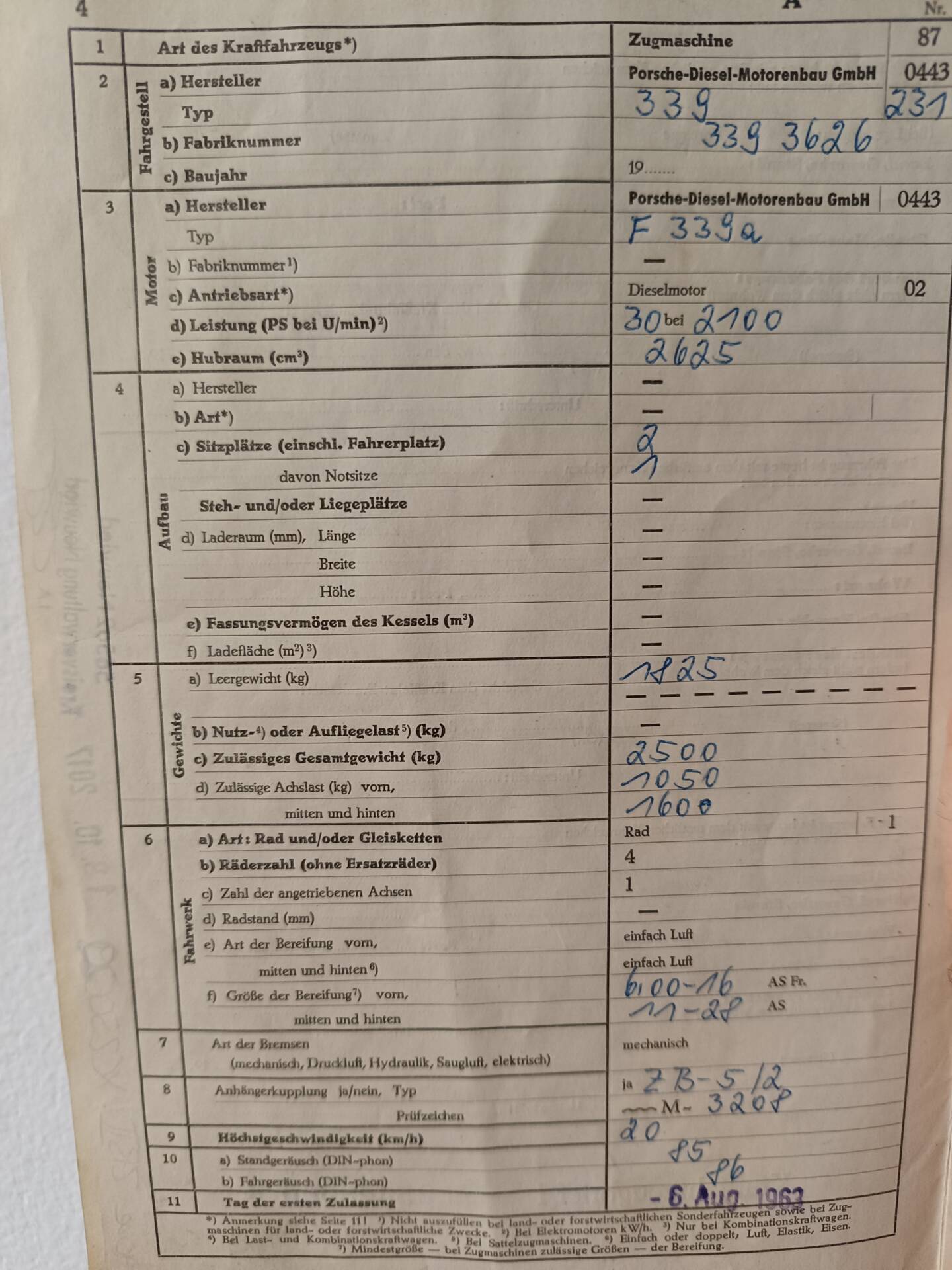 Später Porsche-Diesel-Dreizylinder mit deutschem Brief und vollständigen Papieren