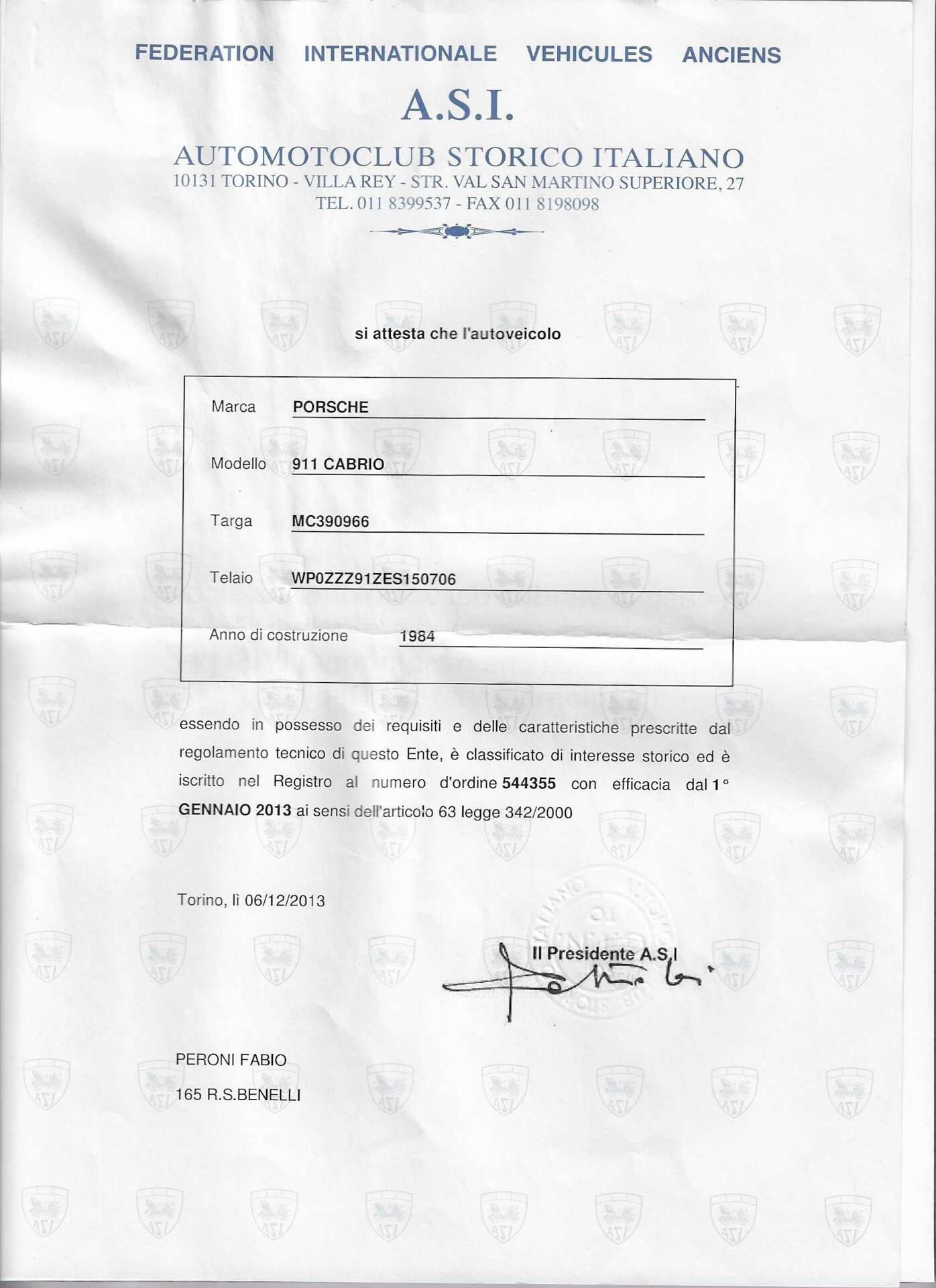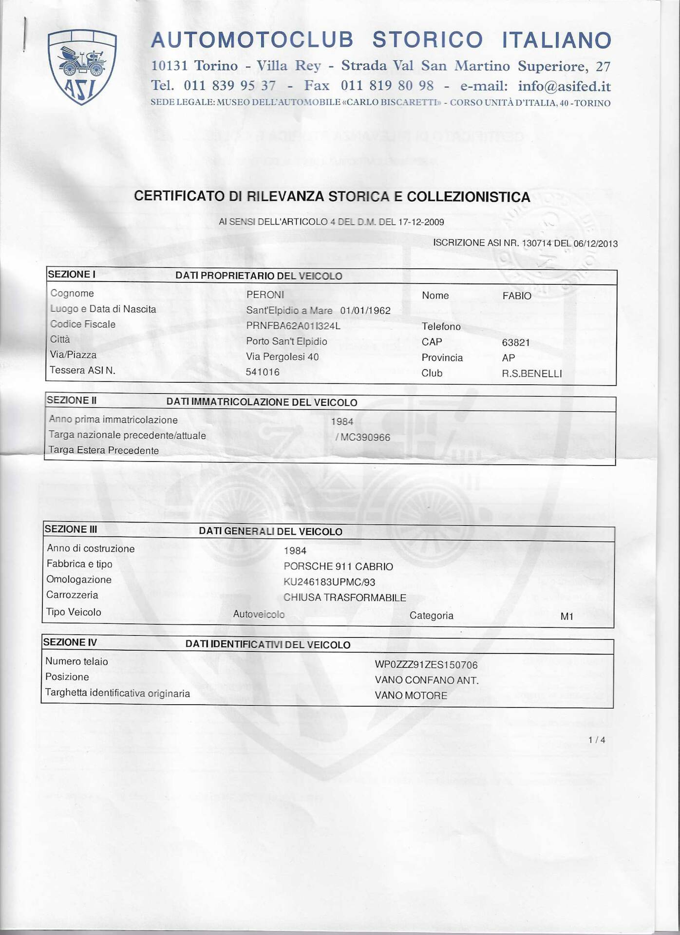 In 1993, still in near-new condition, it was imported to Italy, where it was officially inspected and registered on January 13, 1994.