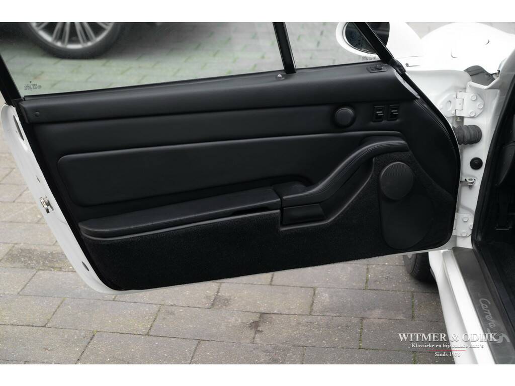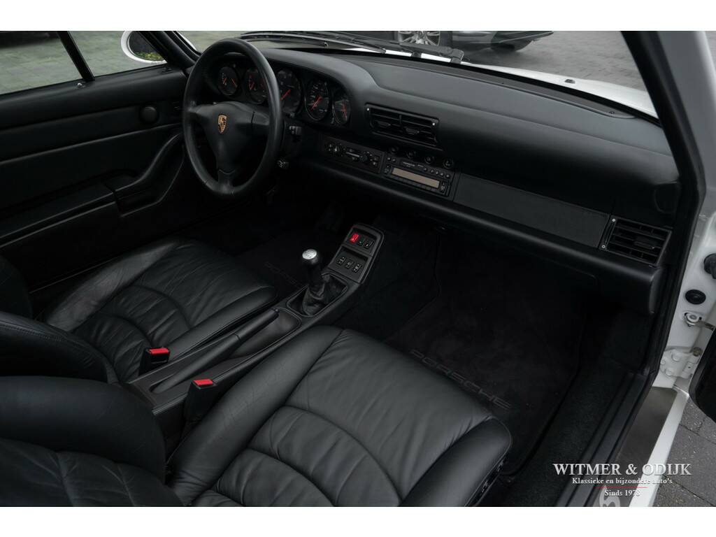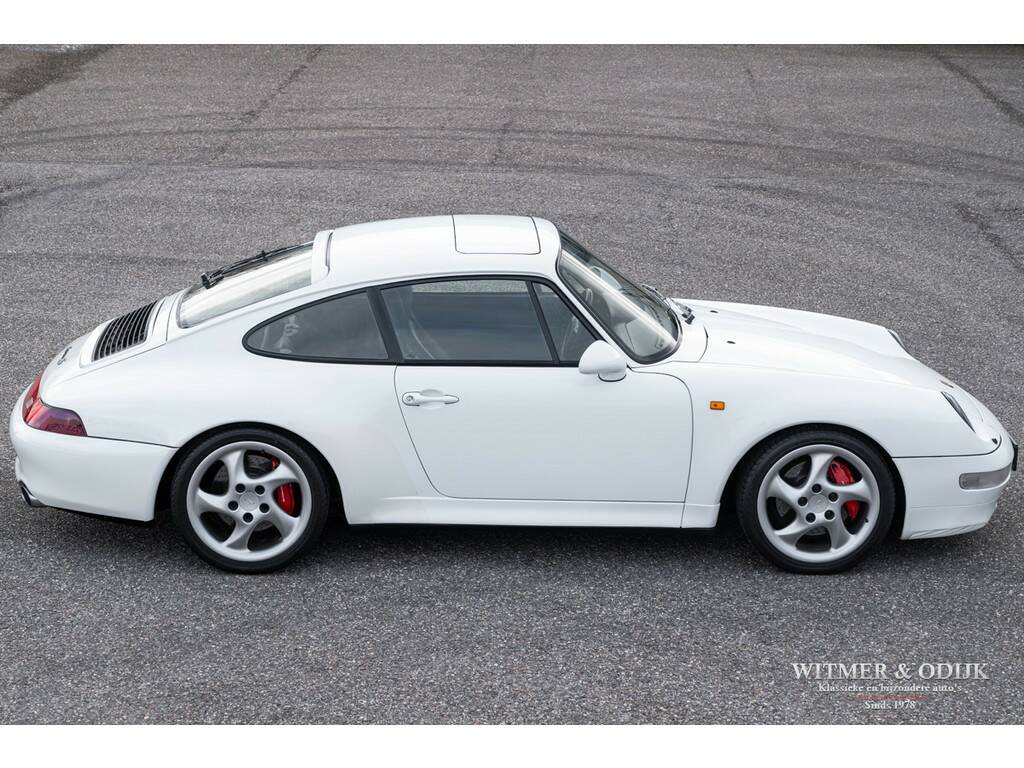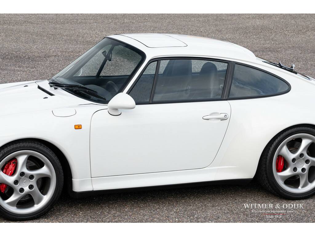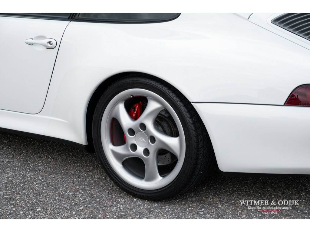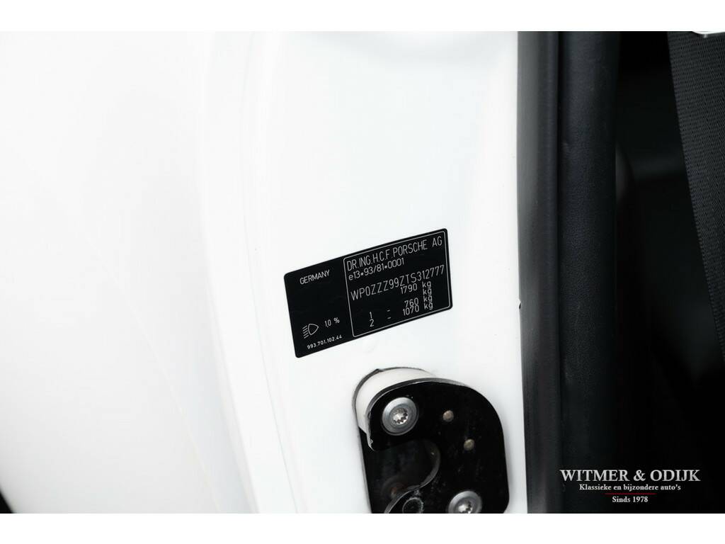 De laatste luchtgekoelde Porsche, de 993, werd destijds aangeboden met een beperkt aantal opties. Eén daarvan was de optiecode X51. Voor een stevige meerprijs werd de motorinhoud vergroot naar 3746cc waardoor het vermogen toenam tot 300pk. Er werden naar schatting slechts 250 (+/-) exemplaren verkocht met deze optie. Dan is er ook nog het gegeven dat Porsche om emissie-redenen de overbrengings verhoudingen van de versnellingsbak moest verlengen waardoor de 'korte' bak, die sneller opschakelen mogelijk maakt, slechts acht maanden werd geproduceerd. Deze 4S, uit maart '96 hééft die korte versnellingsbak. Het is daardoor ook de snelste 993 4S. En hoeveel zullen er daarvan in Grand Prix Weiss zijn uitgeleverd? Alles bij elkaar een zeer zeldzame Porsche dus. Bovendien van een verzamelwaardig kwaliteitsniveau. De auto is optisch werkelijk in topconditie. Er zijn echt geen gebruikssporen aan te ontdekken die niet bij deze kilometerstand horen. Zeer compleet uitgevoerd met o.a. automatische climat control, elektrisch bedienbaar schuifdak, boordcomputer, volledig elektrisch verstelbare stoelen, ruitenwisser achter, cruise control, comfortabel 'raf' leer, originele Porsche (Becker) radio/cassette speler, etc. Deze 993 Carrera 4S werd nieuw geleverd in Grand Prix Weiss. Een zeldzame kleurstelling op een 993 die nieuw in Europa werd verkocht. De auto is altijd schadevrij gebleven. Derhalve perfecte passingen en volledig origineel plaatwerk. De auto is optisch 'als nieuw' en heeft van bumper tot bumper geen krasje of steenslag. Het schuifdak sluit perfect. Origineel glaswerk rondom. Alle rubbers mooi zacht en correct aansluitend. Schitterende uitstraling! Het interieur is volledig origineel en onbeschadigd. Geheel in zwart leer uitgevoerd met mooi dubbel doorgestikt leer op de stoelen, deurpanelen en dashboard. De stoelen hebben nog de originele vorm en steun. Het stuur is mooi glad en onbeschadigd. Ook de bovenste rand van het dashboard is niet beschadigd. Originele Porsche matten op de vloer. Alle hendels, schakelaars en klokken zijn fris en correct werkend. Nooit in gerookt. De hemelbekleding is origineel en onbeschadigd. Alles conform de lage kilometerstand. Achterin treft u de originele 3.8ltr 300pk sterke boxermotor die op bestelling met X51 motoroptie zo geleverd werd. Niet een achteraf uitgevoerde motortuning of iets dergelijks. De motor loopt perfect rond, is mooi droog, rookt niet en heeft een uitstekende oliedruk. Alles in de motorruimte is mooi schoon en origineel. Ook de kofferruimte is mooi schoon en lijkt fabrieksnieuw. Keurige bekleding en zaken als gereedschap, krik, thuiskomer, etc. compleet aanwezig. Voorzien van alle fabrieksstickers. Ook de 18 inch Porsche Turbolook velgen zijn onbeschadigd en vrij van remstof. Zeer goede Bridgestone S02 banden daar omheen. Nieuw verkocht in maart 1996. De auto is zichtbaar goed onderhouden, er is een origineel serviceboekje aanwezig echter de verzamelaar waar de auto van afkomstig is heeft het onderhoud niet laten afstempelen. De prijs van deze X51 993 4S is daar uiteraard op afgestemd. De actuele technische conditie is belangrijker dan een stempel in het boekje uit het verleden, daarom leveren wij de auto af inclusief nieuwe APK en onderhoudsbeurt. De algehele conditie, zowel technisch als optisch in combinatie met de zeldzaamheid, maken deze Porsche voor wie haar op waarde weet te schatten zeer aantrekkelijk.