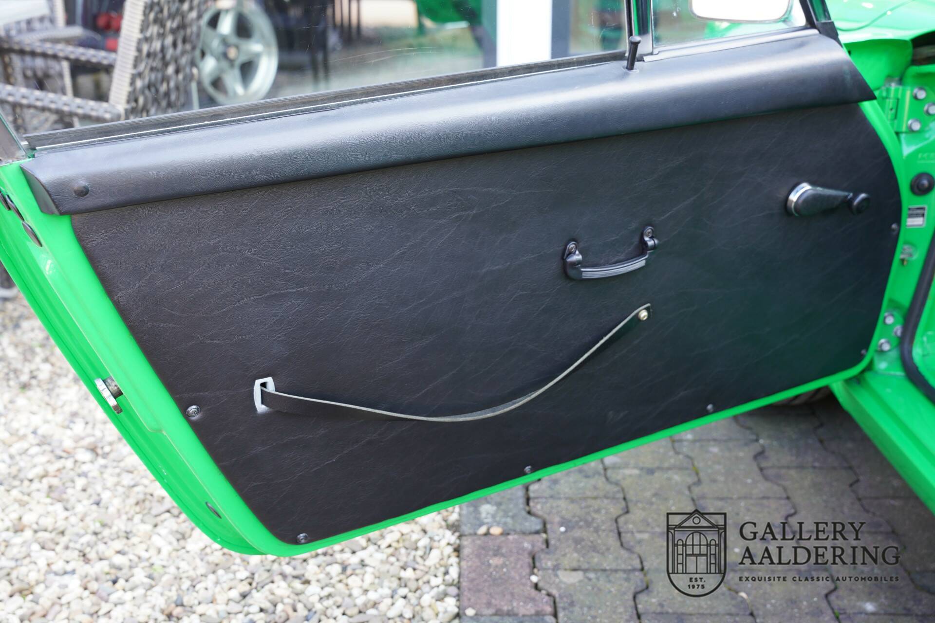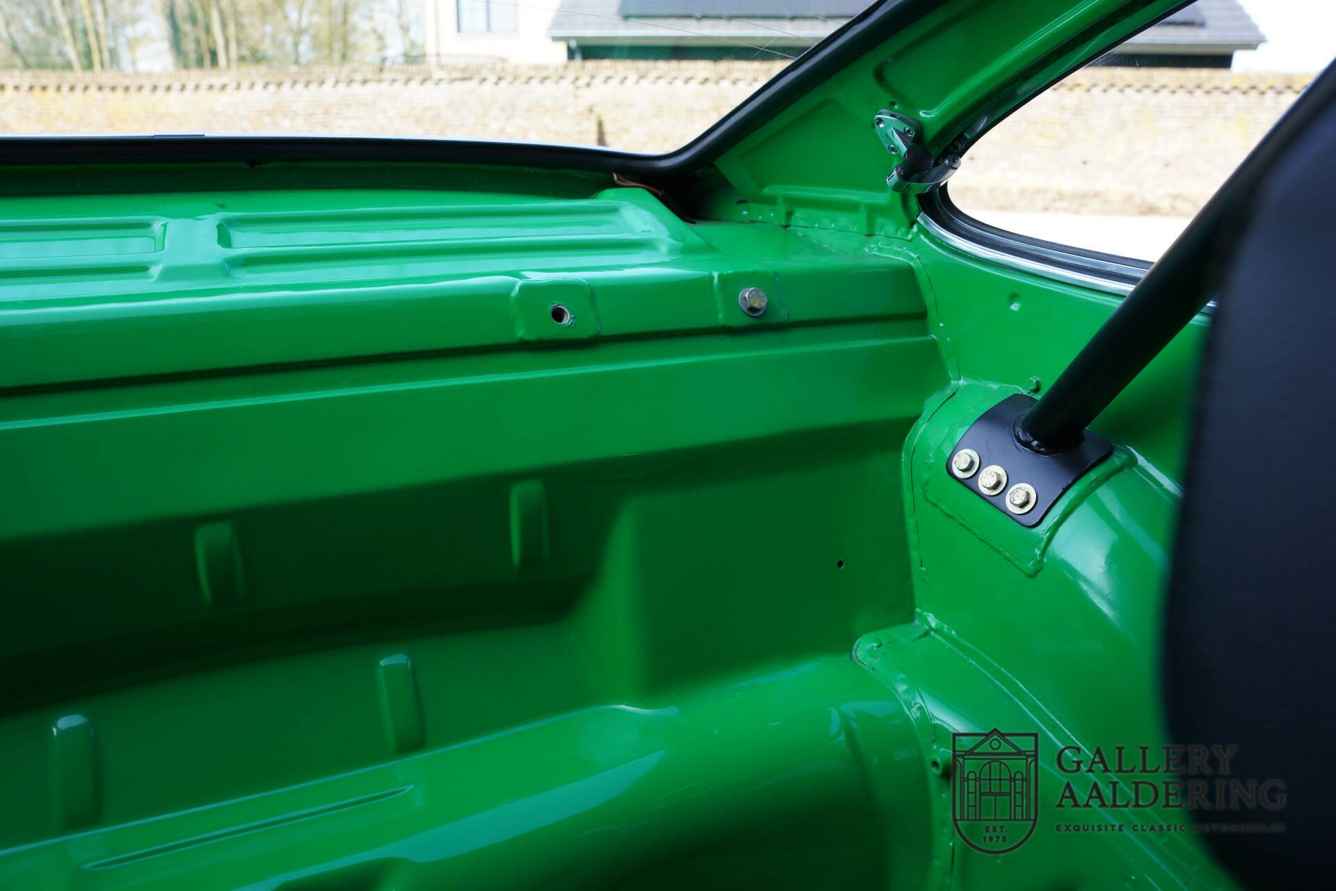 Die Karosserie, die Technik, das minimalistische Interieur: Alles sieht aus wie im Concours-Zustand und ist bis ins kleinste Detail restauriert. Ein Fotobericht verschiedener Fotomappen zeigt jeden Schritt des Restaurierungsprozesses und macht deutlich, dass keine Kosten gescheut wurden, um ein einzigartiges „RS-Nachbau“ zu schaffen. Das Aussehen ist phänomenal, wobei die leuchtend grüne Farbe es komplett abrundet.