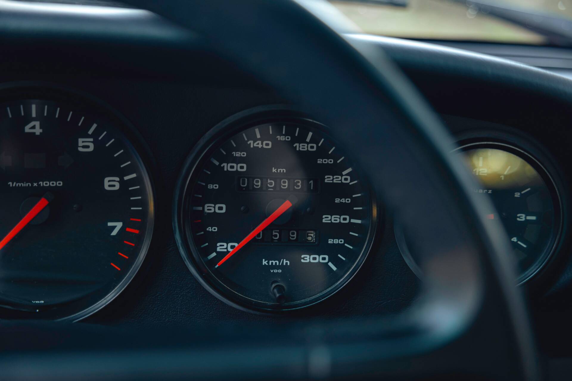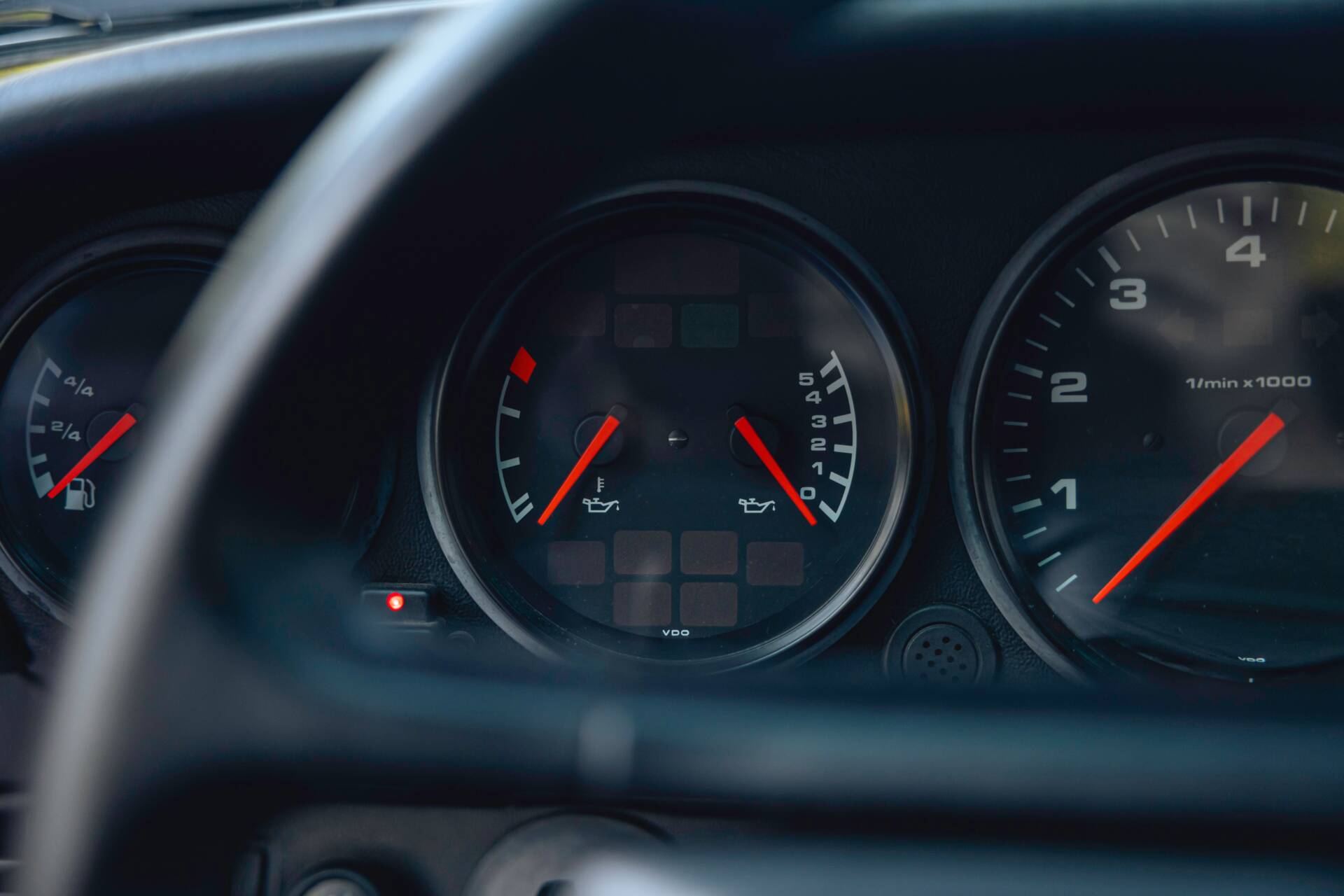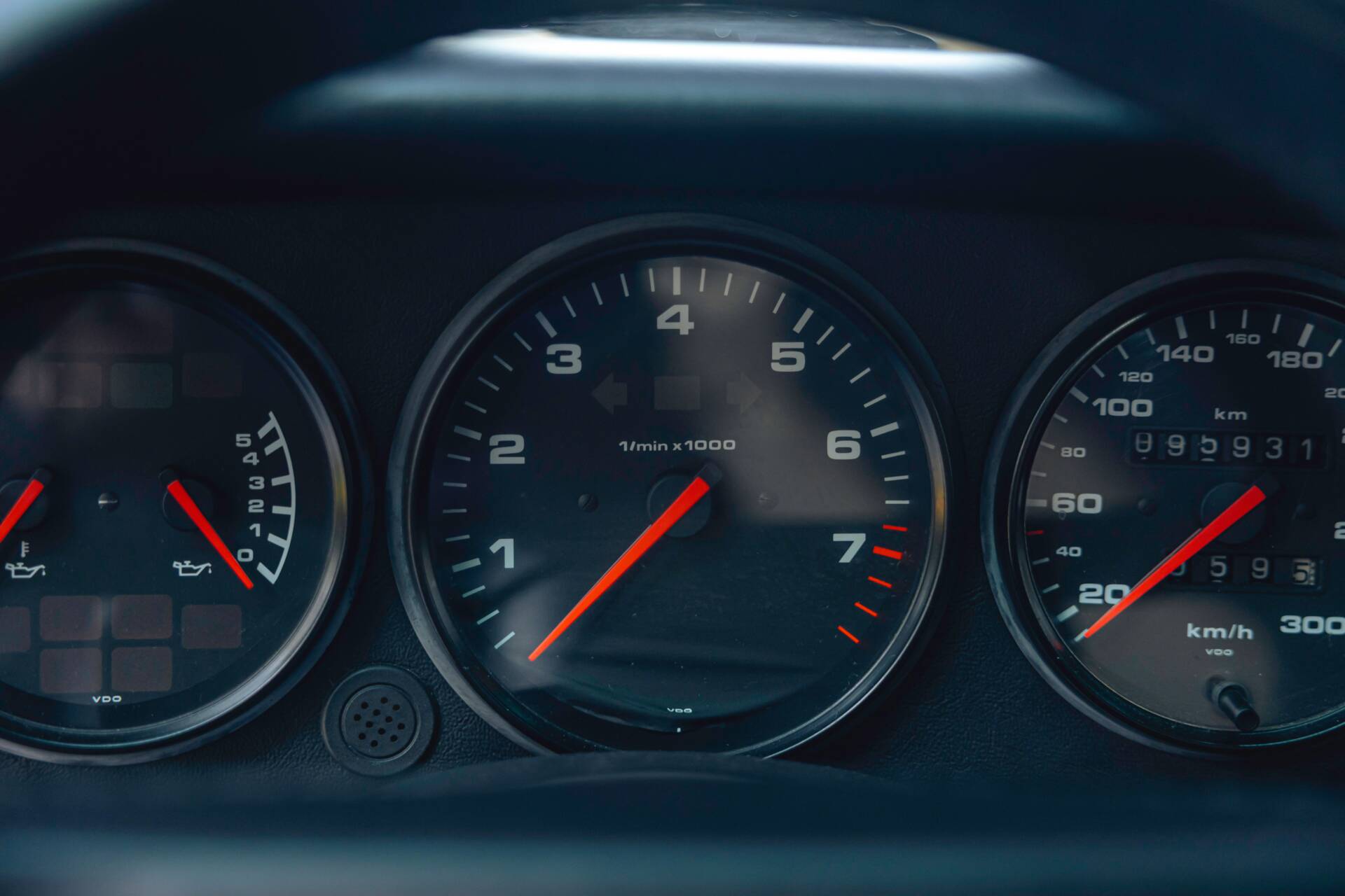 Mécanique : Le moteur et la boite de vitesse sont ceux d’origine (matching numbers). L’ensemble mécanique est en très bon état de fonctionnement, justifié par des factures d’entretien. Le Flat-6 prend bien ses tours et la boîte de vitesses mécanique à 5 rapports offre des passages de rapports bien guidés. Récemment, le freinage a entièrement été revu (étriers, disques et plaquettes) et le train de pneus arrière a été remplacé.