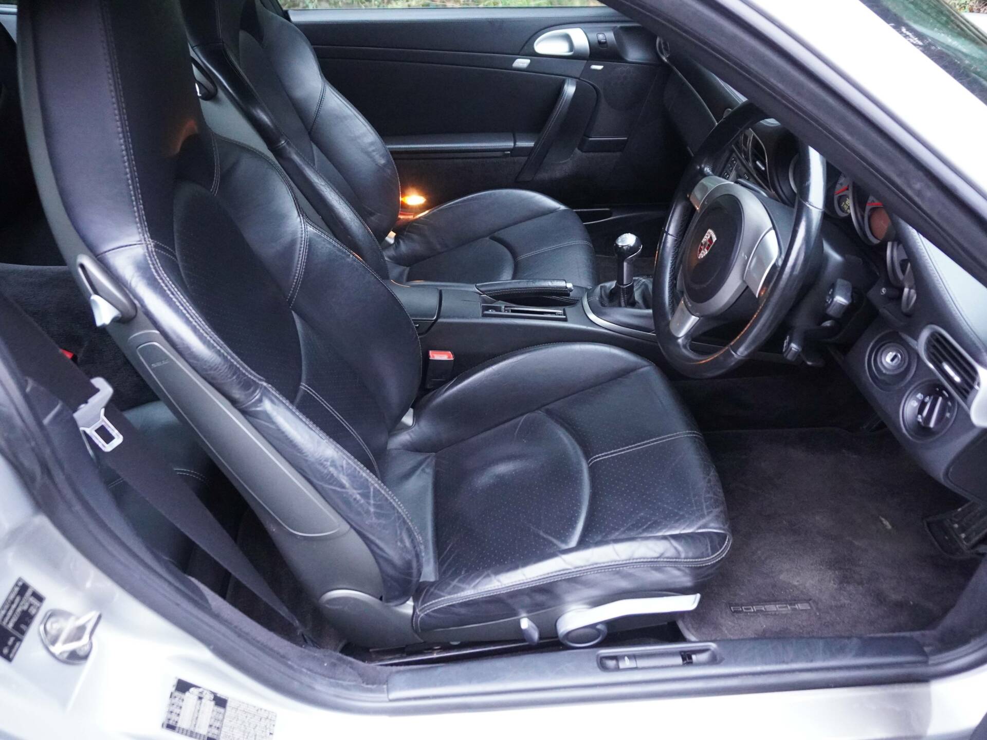 This superbly spec’d manual transmission Porsche 911 was first registered on the 1st December 2006 and has covered 79000 miles from new. Supplied new in Silver with Black trim and sunroof, this Carrera 2 comes with its Porsche wallet, handbooks and service book with stamps at 15321, 27458, 32508, 38918, 42538, 46576, 47545, 59898 and 76170 miles. A host of maintenance invoices also accompany the file along with a spare key. The 911 now in its 20th years records five former keepers on the V5 and from its incredibly clean, sharp condition it's very clear to see this has been a car meticulously kept. The paintwork is stunning, bodywork first class and the Black leather trim is superb throughout. The car presents in true showroom condition and has been kept in beautiful condition.