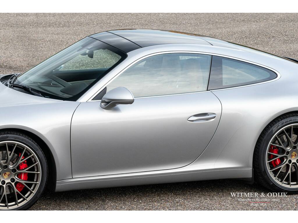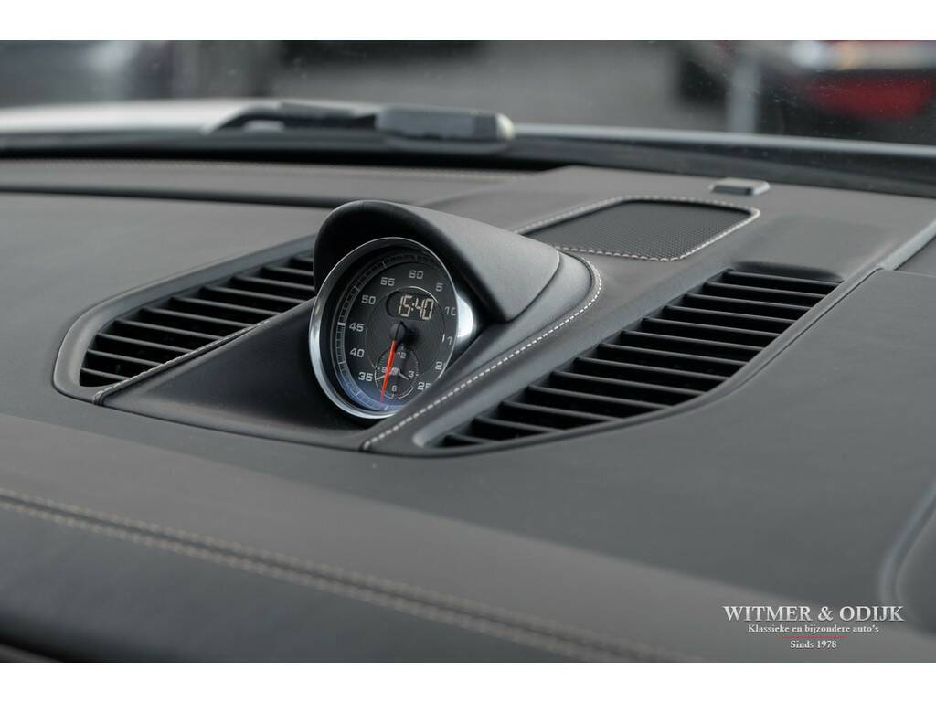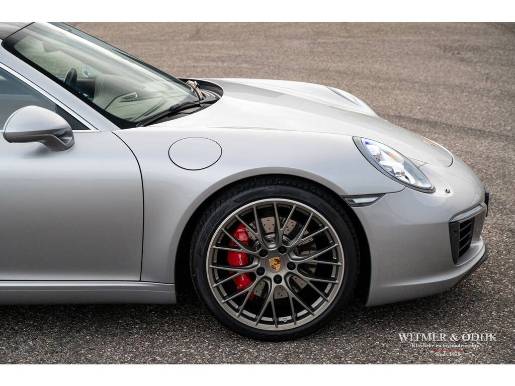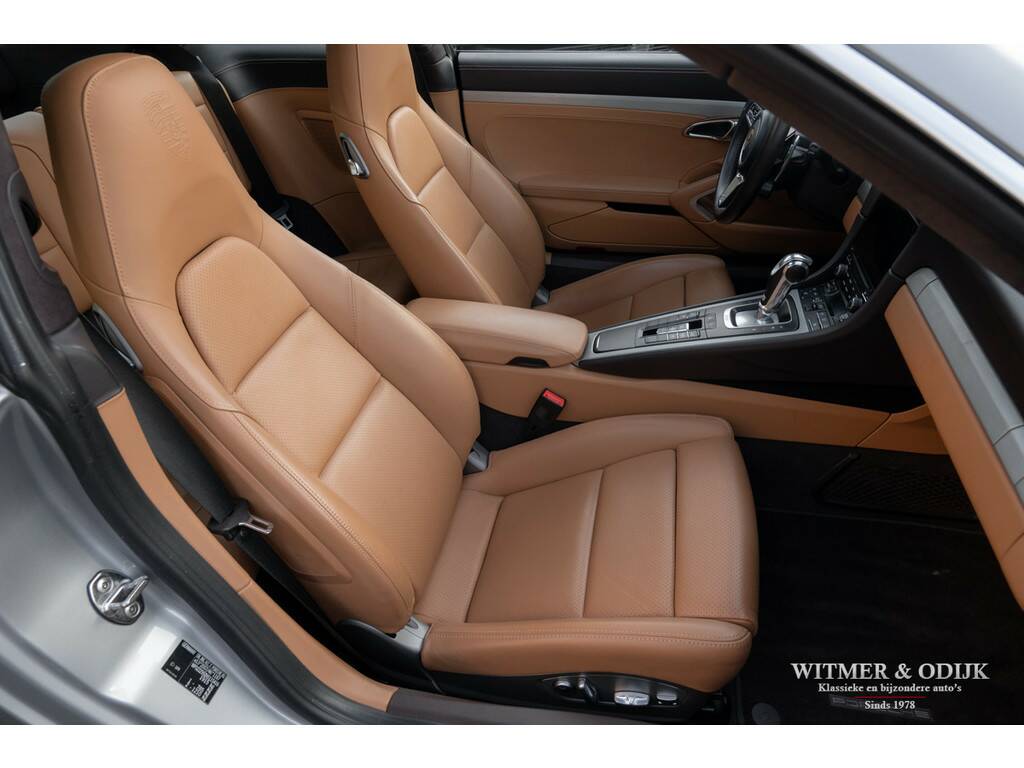 Bijna net zo'n revolutionaire stap als van lucht- naar watergekoeld, Porsche's beslissing om de 911 voortaan te voorzien van twee turbo's. Er was toch al een Porsche Turbo? Jawel, met een prijskaartje van een Supercar. Vanaf de MkII kreeg de 991 een geheel nieuw ontwikkelde 3ltr. motor, twee turbo's met intercooler, een wederom verbeterd onderstel en bijvoorbeeld een vernieuwd multimedia- en navigatiesysteem. De keuze voor de turbo motor maakte Porsche om de auto efficiënter te maken, minder benzineverbruik en lagere emissie, en het koppel te verhogen. Dit, dankzij de enorme kennis van turbo motoren die Porsche na decennia doorontwikkeling in huis heeft, zonder het zgn. turbo-gat. Het volledige koppel van de nieuwe 3ltr. motor is er al bij 1700 toeren. Trekkracht is er dus altijd, souplesse in ieder toerengebied en comfort dankzij een stillere motor. Daar gaat mijn plezier in de tunnel denkt u nu, gelukkig gaf Porsche haar verkoopadviseurs de schakelbare (centraal geplaatste) sportuitlaat bijna als 'verplichte' optie mee te verkopen, opgelost. Dankzij de grotere behoefte aan lucht achterin, de turbo's hebben ook intercoolers, werd de nieuwe 911 voorzien van de klassiek ogende open grill op de motorkap, dezelfde verticale lamellen zag u al in 1964. Met deze verwijzing leek de cirkel rond, de perfectionering van de 911 was een feit. Anno nu is de ene 911 zeker en gelukkig steeds vaker de andere niet. Deze 991 Carrera S is overduidelijk geconfigureerd door een liefhebber met rijervaring die weet hoe de ideale 911 uitgevoerd moet zijn. Zie de optionele 18 voudig elektrisch verstelbare adaptieve sportstoelen (geven niet alleen meer comfort maar ook meer feedback van hoe de auto zich gedraagt), het Sport Chrono pakket, 20 inch lichtmetalen RS-Spyder Design velgen, de schakelbare sportuitlaat, Porsche Active Suspension Management en bijv. het Bose Surround Sound System. Tegelijk sportief en stijlvol ogend dankzij het fraaie GT-Silver Metallic kleurstelling en diverse zwarte accenten zoals het grote panorama glasdak. De overige zeer plezierige opties zijn; automatische climat control, cruise control, Porsche Communication Management met navigatie, rondom parc distance control gecombineerd met achteruitrijcamera, een volledig in leer uitgevoerd interieur, elektrisch bedienbaar panorama schuif/kanteldak, GT sportstuur, boordcomputer, stoelverwarming, Sport Chrono Package, etc. etc. Deze 991 type 2 Carrera S is optisch volledig in nieuwstaat, geen steenslag of zichtbaar gebruiksspoor op te ontdekken. Nieuw geleverd door Porsche Centrum Twente. Keurig dealer onderhouden, alle documentatie inclusief gestempeld serviceboekje aanwezig. Laatste uitgebreide beurt bij Porsche Rotterdam in september '25. Uiteraard altijd schadevrij gebleven. Wordt rijklaar zonder bijkomende kosten afgeleverd inclusief nieuwe APK garantie en onderhoudsbeurt.