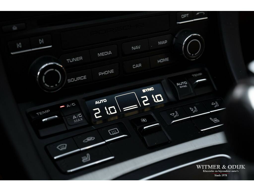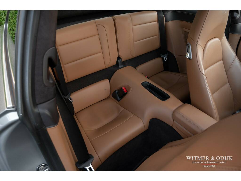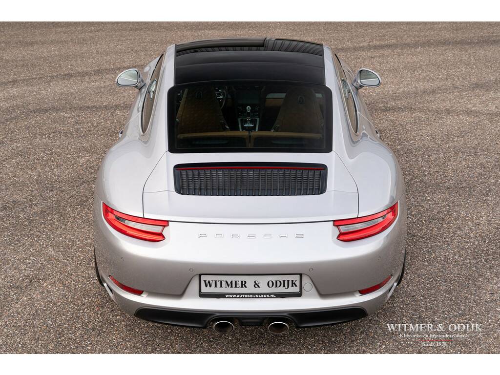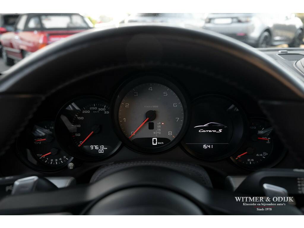 Bijna net zo'n revolutionaire stap als van lucht- naar watergekoeld, Porsche's beslissing om de 911 voortaan te voorzien van twee turbo's. Er was toch al een Porsche Turbo? Jawel, met een prijskaartje van een Supercar. Vanaf de MkII kreeg de 991 een geheel nieuw ontwikkelde 3ltr. motor, twee turbo's met intercooler, een wederom verbeterd onderstel en bijvoorbeeld een vernieuwd multimedia- en navigatiesysteem. De keuze voor de turbo motor maakte Porsche om de auto efficiënter te maken, minder benzineverbruik en lagere emissie, en het koppel te verhogen. Dit, dankzij de enorme kennis van turbo motoren die Porsche na decennia doorontwikkeling in huis heeft, zonder het zgn. turbo-gat. Het volledige koppel van de nieuwe 3ltr. motor is er al bij 1700 toeren. Trekkracht is er dus altijd, souplesse in ieder toerengebied en comfort dankzij een stillere motor. Daar gaat mijn plezier in de tunnel denkt u nu, gelukkig gaf Porsche haar verkoopadviseurs de schakelbare (centraal geplaatste) sportuitlaat bijna als 'verplichte' optie mee te verkopen, opgelost. Dankzij de grotere behoefte aan lucht achterin, de turbo's hebben ook intercoolers, werd de nieuwe 911 voorzien van de klassiek ogende open grill op de motorkap, dezelfde verticale lamellen zag u al in 1964. Met deze verwijzing leek de cirkel rond, de perfectionering van de 911 was een feit. Anno nu is de ene 911 zeker en gelukkig steeds vaker de andere niet. Deze 991 Carrera S is overduidelijk geconfigureerd door een liefhebber met rijervaring die weet hoe de ideale 911 uitgevoerd moet zijn. Zie de optionele 18 voudig elektrisch verstelbare adaptieve sportstoelen (geven niet alleen meer comfort maar ook meer feedback van hoe de auto zich gedraagt), het Sport Chrono pakket, 20 inch lichtmetalen RS-Spyder Design velgen, de schakelbare sportuitlaat, Porsche Active Suspension Management en bijv. het Bose Surround Sound System. Tegelijk sportief en stijlvol ogend dankzij het fraaie GT-Silver Metallic kleurstelling en diverse zwarte accenten zoals het grote panorama glasdak. De overige zeer plezierige opties zijn; automatische climat control, cruise control, Porsche Communication Management met navigatie, rondom parc distance control gecombineerd met achteruitrijcamera, een volledig in leer uitgevoerd interieur, elektrisch bedienbaar panorama schuif/kanteldak, GT sportstuur, boordcomputer, stoelverwarming, Sport Chrono Package, etc. etc. Deze 991 type 2 Carrera S is optisch volledig in nieuwstaat, geen steenslag of zichtbaar gebruiksspoor op te ontdekken. Nieuw geleverd door Porsche Centrum Twente. Keurig dealer onderhouden, alle documentatie inclusief gestempeld serviceboekje aanwezig. Laatste uitgebreide beurt bij Porsche Rotterdam in september '25. Uiteraard altijd schadevrij gebleven. Wordt rijklaar zonder bijkomende kosten afgeleverd inclusief nieuwe APK garantie en onderhoudsbeurt.