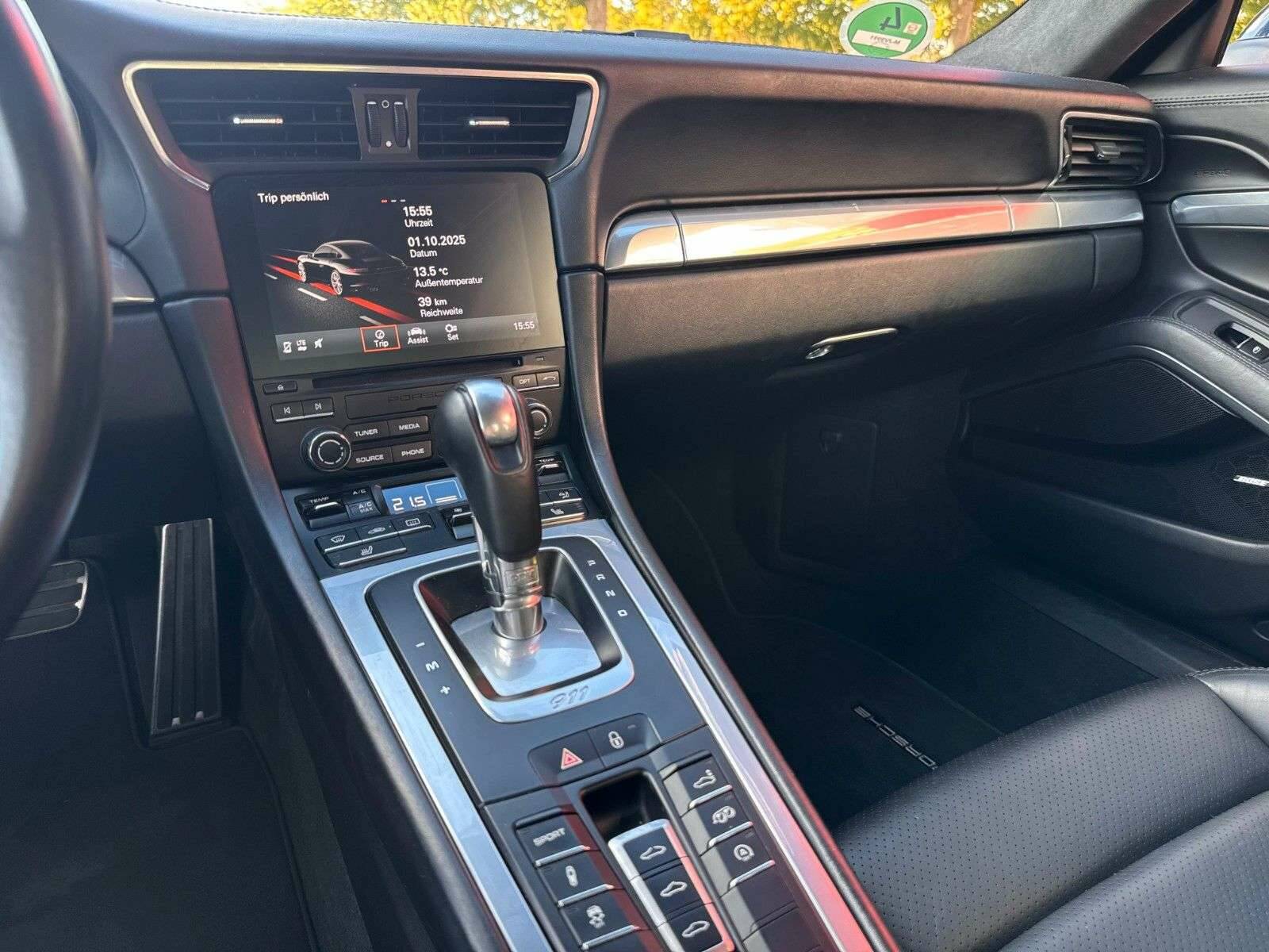 Airbag Fahrer-/Beifahrerseite, Antischlupfregelung (ASR), Anzeigeinstrumente mit Hintergrund schwarz, Automatisches Bremsen Differential (ABD), Außenspiegel asphärisch, links, Außenspiegel elektr. verstell- und heizbar, beide, Blinkleuchten LED, Bordcomputer, Connect Plus (Bluetooth, Apple CarPlay, WLAN, Vehicle-Tracking-System), Dachhimmel Alcantara, Einschaltautomatik für Fahrlicht, Getränkehalter, Heckleuchten LED, Heckscheibe heizbar, Heckspoiler, Innenausstattung: Leder, Isofix-Aufnahmen für Kindersitz an Rücksitz, Karosserie: 2-türig, Klimaautomatik, Kopf-Airbag-System Porsche Side Impact Protection System (POSIP), Kopf-Schulter-Airbag vorn (Thoraxbag), Lenkrad (Sport/Leder, 3-Speichen), Lenksäule (Lenkrad) verstellbar, LM-Felgen, Make-up-Spiegel im Fond beleuchtet, Modellpflege, Motor 3,0 Ltr. - 272 kW KAT, Motor-Schleppmoment-Regulator (MSR), Nebelschlussleuchte, Parkbremse elektrisch, Porsche Active Suspension Management (PASM), Porsche Communications Management (PCM) inkl. DVD - Navigationsmodul (erweitert), Reifen-Reparaturkit, Reifendruck-Kontrollsystem, Schadstoffarm nach Abgasnorm Euro 6, Seitenairbag vorn, Sonnenblenden mit Spiegel (beleuchtet), Start/Stop-Anlage, Verglasung getönt