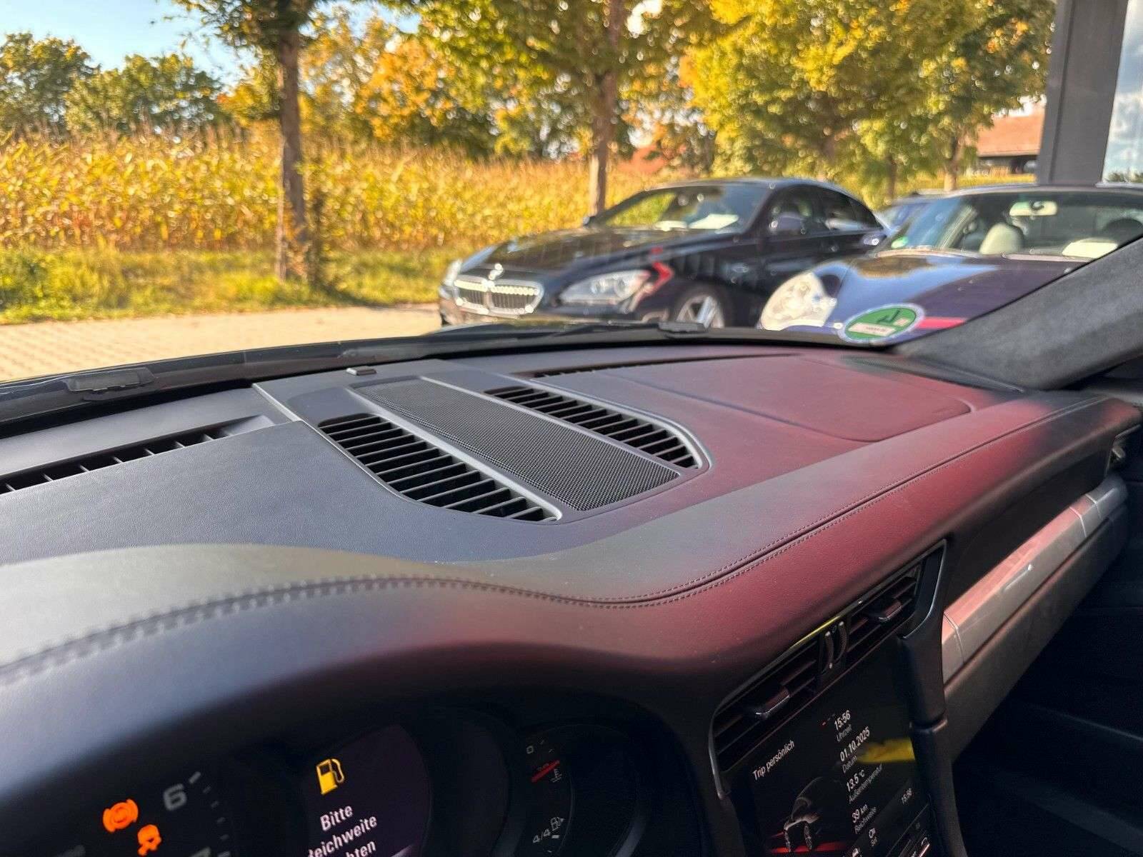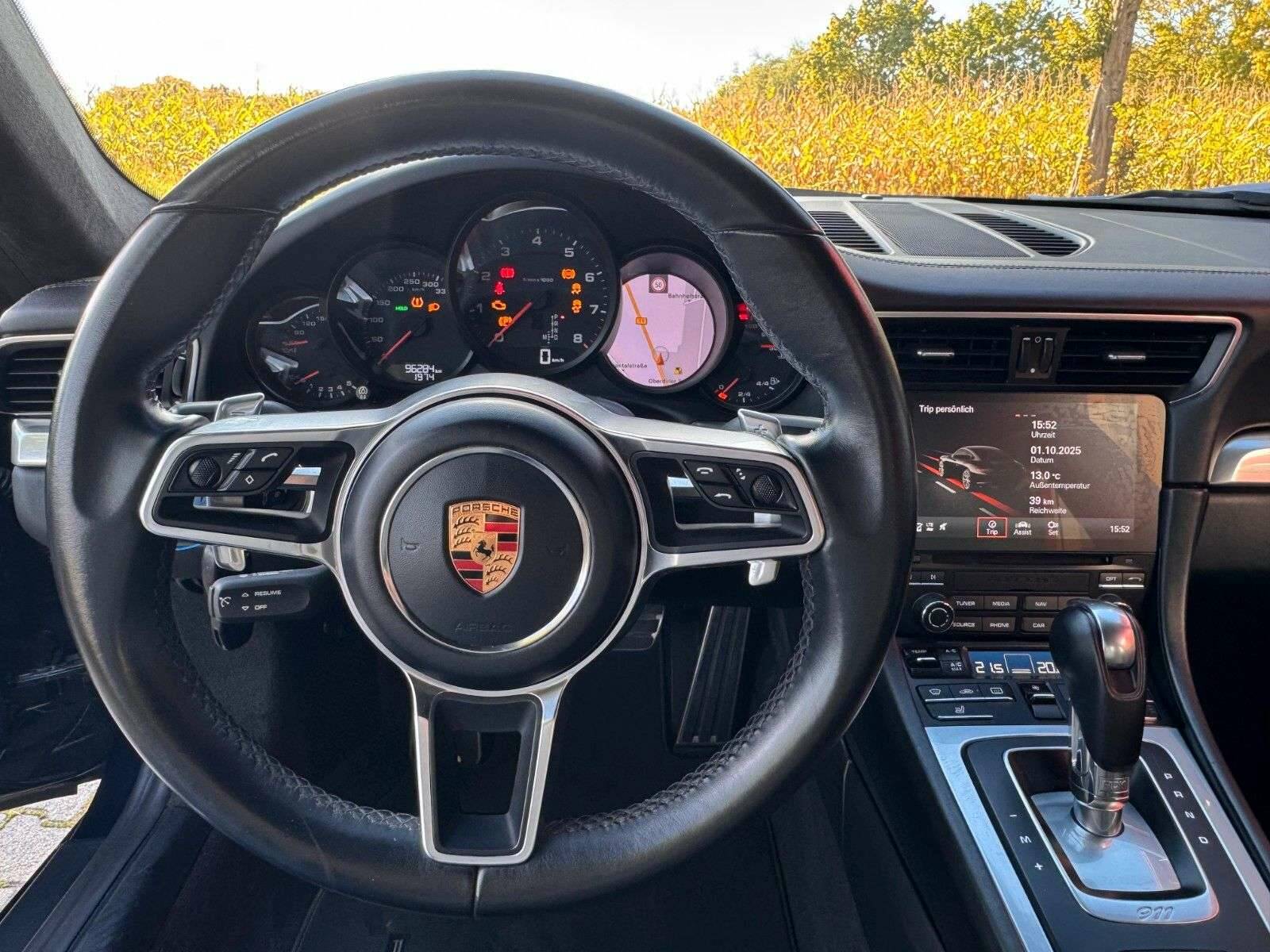 Außen-/Innenspiegel mit Abblendautomatik und Regensensor, Bi-Xenon-Scheinwerfer inkl. Porsche Dynamic Light System (PDLS), Fahrassistenz-System: Park-Assistent vorn und hinten inkl. Rückfahrkamera, Fahrassistenz-System: Verkehrszeichenerkennung, Frontscheibe mit Bandfilter oben, Home-Link (Garagentoröffner), Kopfstützen vorn mit Porschewappen, Mittelkonsole / Ablagenetz, Radnaben - Abdeckungen Porschewappen farbig, Raucher-Paket, Schiebedach elektrisch, Schriftzug 911 Chromfarben, Schwellerabdeckung / -verkleidung Wagenfarbe, Servolenkung Plus (geschwindigkeitsabhängig), Sitzheizung vorn, Sound-System BOSE, Sport-Auspuffanlage, Sportsitze Plus (elektr. verstellbar, 4-Wege), Verglasung hinten abgedunkelt (Privacyverglasung)