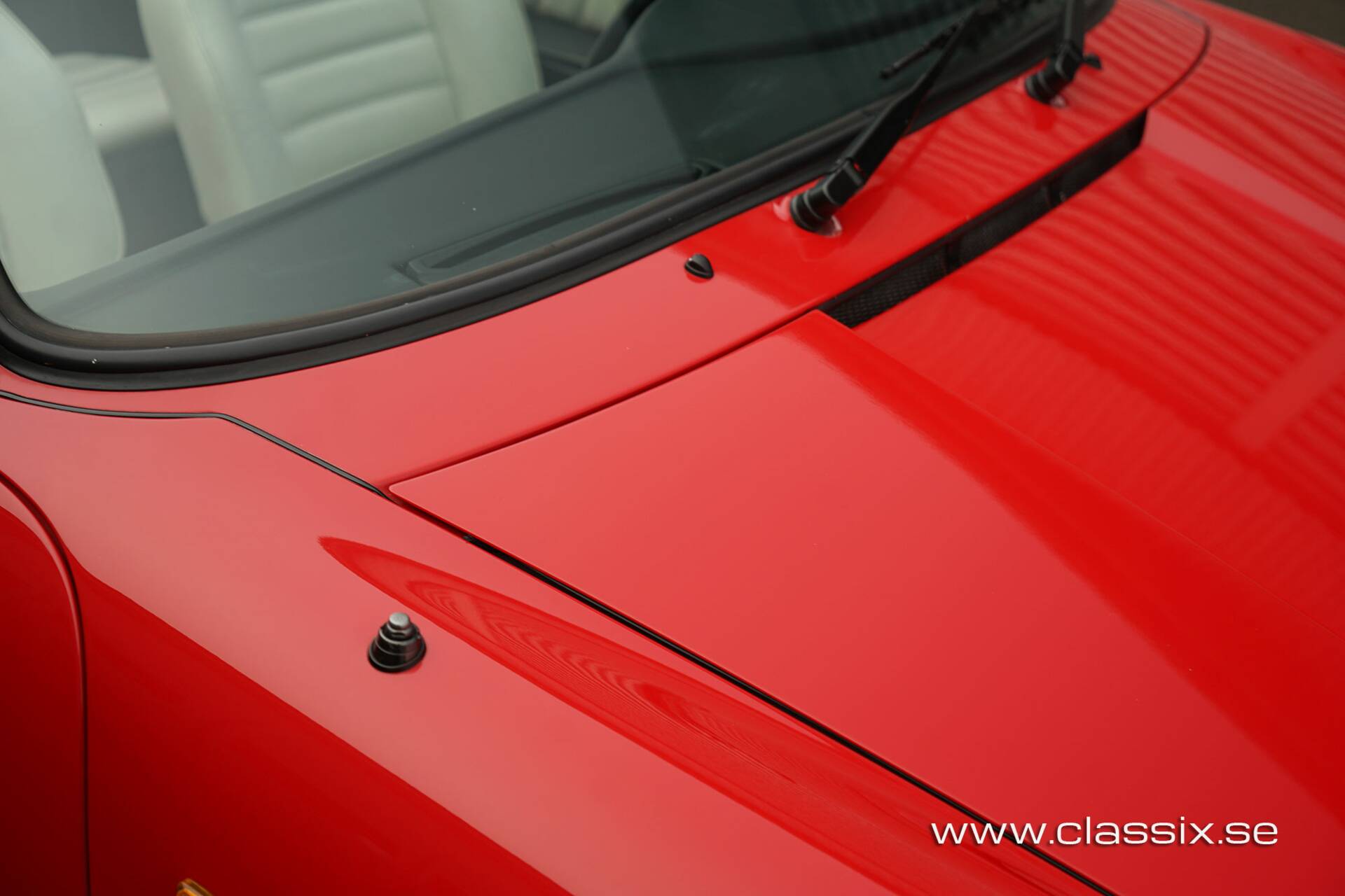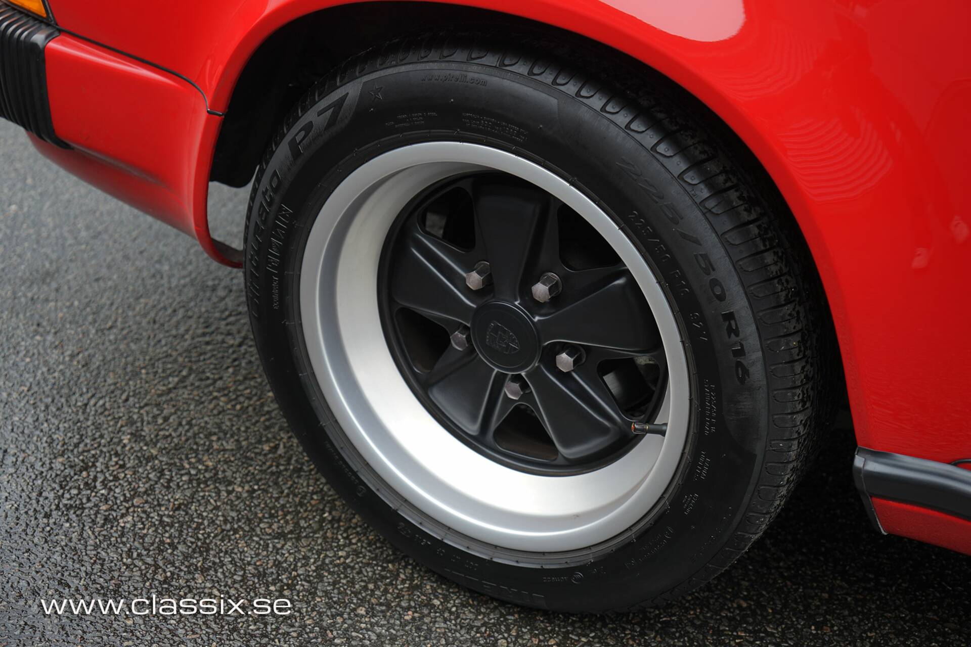 Exterior: This Porsche 911 SC for sale is finished in the iconic and sought-after Indischrot (Guards Red). As is common with many red classic Porsches that tend to fade under the sun, this car has received a high-quality exterior glass-out respray. The paintwork is simply amazing with a "super finish" and absolutely nothing to remark on. It is free of dents, marks, or scratches. The panel gaps are laser-straight. This 911 SC Cabriolet sits perfectly on 16-inch Fuchs wheels in pristine condition. Furthermore, the black soft top has been recently replaced and remains in brand-new condition, providing a tight seal.