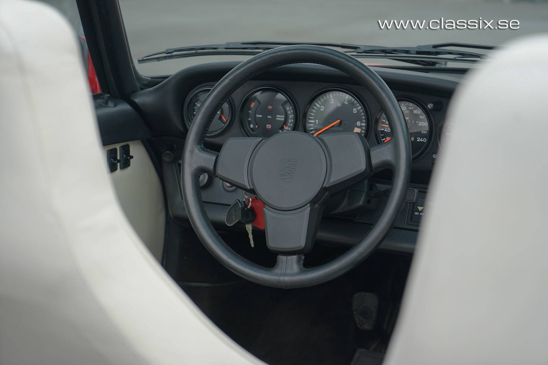 History and Documentation: The provenance of this Porsche 911 SC Cabriolet is exceptional. Sold new in Sweden, it has remained in the country its entire life, benefiting from a documented history. The mileage is fully verified by a near-complete collection of MOT (Besiktning) records dating back to when it was new. The original service book is present and stamped accordingly, accompanied by the full set of owner’s manuals, the original toolkit, the factory jack, and both original keys. The extensive file of recent invoices proves that no expense has been spared in keeping this classic 911 convertible in peak performing condition. It is a turn-key collector's piece ready for the open road.