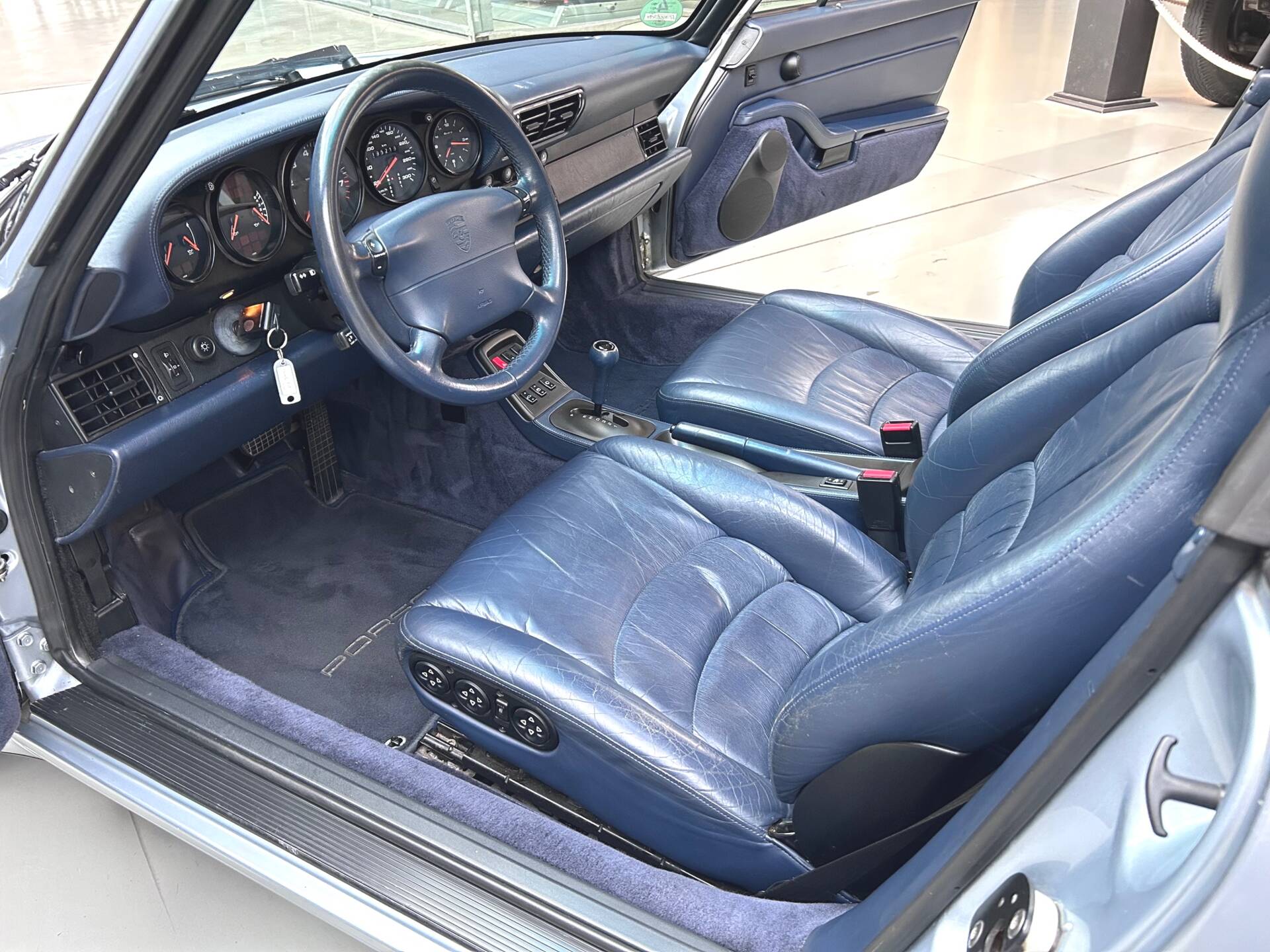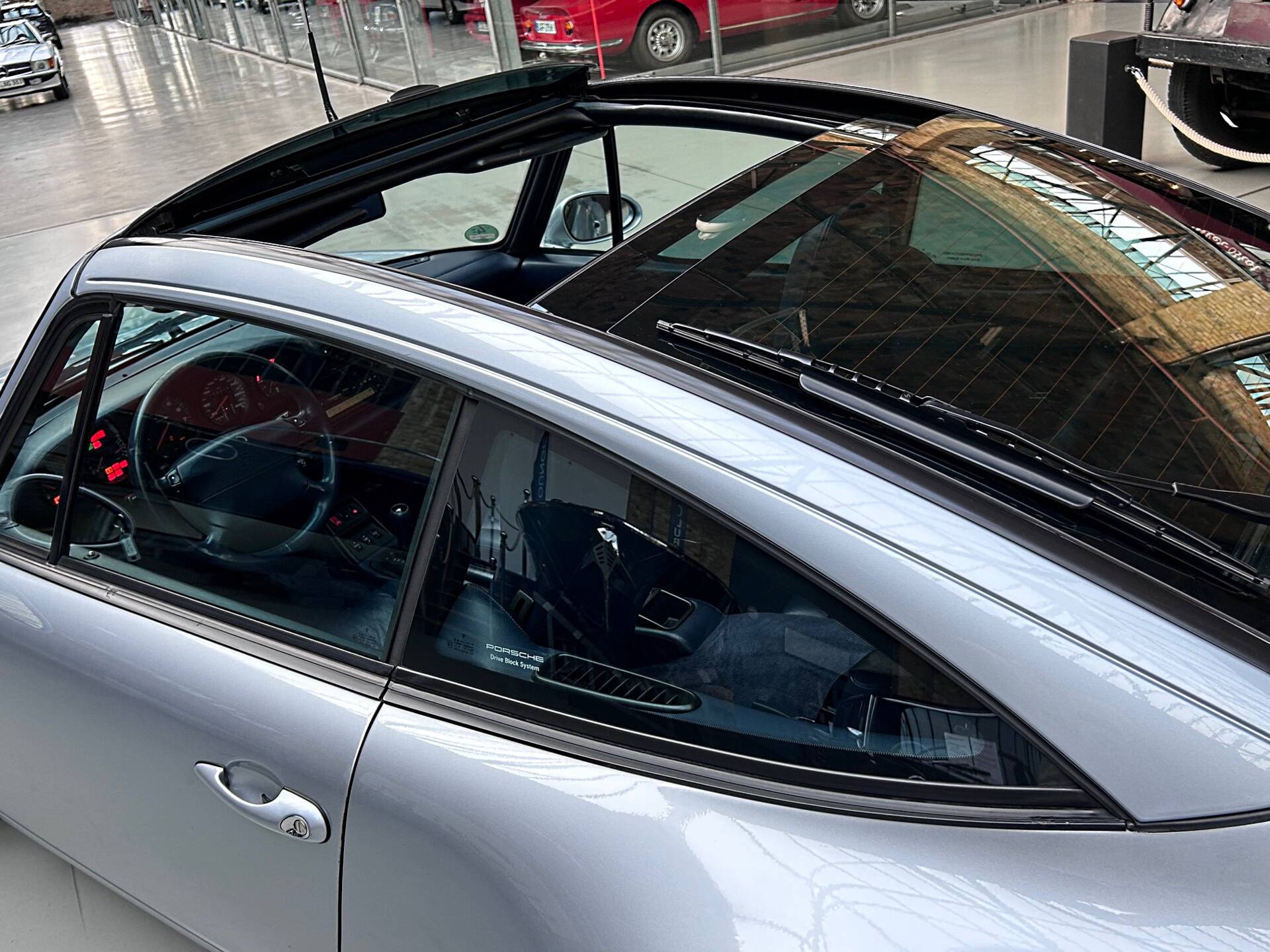 Ausstattung: ABS Bremssyst., Servolenkung, ABD aktive Differenzialbremse, elektr. Dachbetätigung, thermost. Klimaanlage, Ganzleder-Polsterung mit Raffleder und Lordosenstütze, elektr. Sitzverstellung und Sitzheizung, 2+2 Sitze, elektr. Fensterheber, Zentr.-Veriegl, Tempomat, Radio Porsche CR 31 mit Klangpaket und CD-Wechsler, Bordcomputer, Nebelscheinwerfer, Scheinwerfer-Reinigungsanl., spezieller 17“ Targa-Radsatz verschraubt (2.Satz Felgen wird mitgeliefert!).