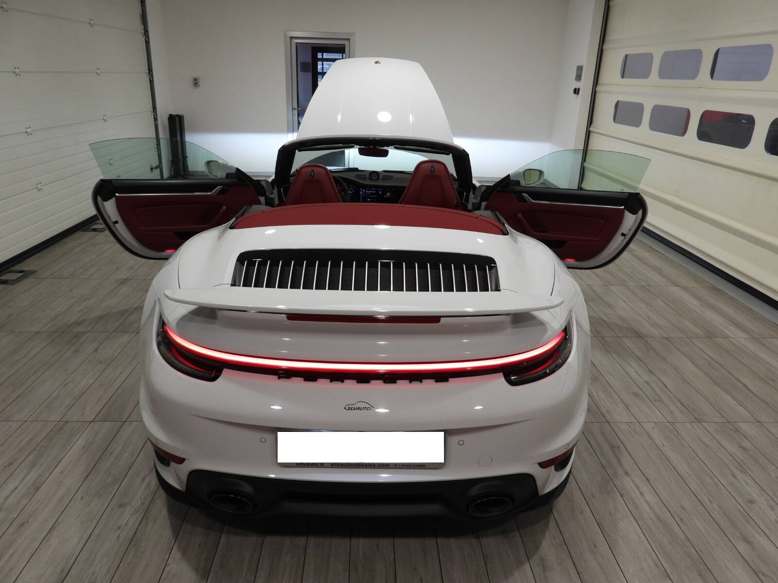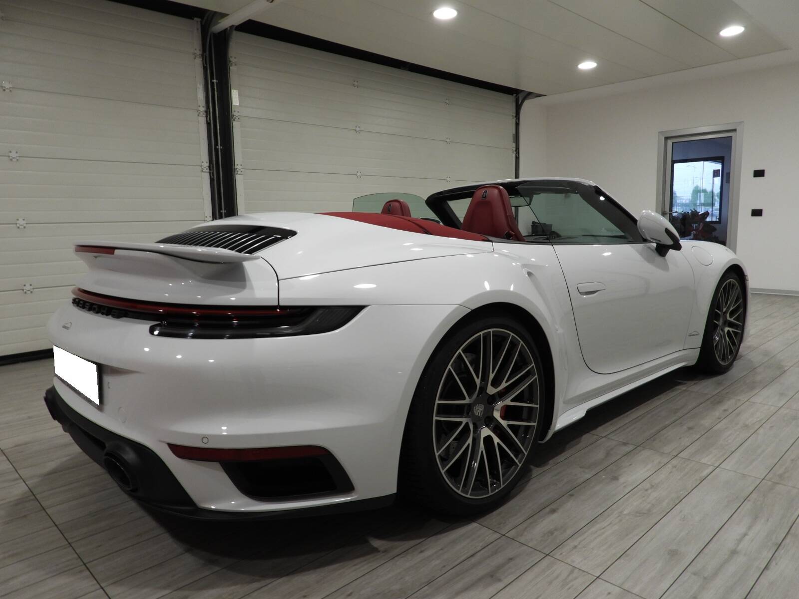 Sedili sportivi adattivi Plus regolabili elettricamente con funzione di memoria, riscaldabili e ventilati in tutta pelle cartier, Cruscotto in pelle nera con cuciture rosse a contrasto, Volante sportivo in pelle multifunzione con mirino, Specchi retrovisori autoanabbaglianti, regolabili e ripiegabili elettricamente, Climatizzatore automatico bizona, Porsche Communication Management (PCM), Sistema di navigazione satellitare e bluetooth, Apple Carplay e Android Auto, Ricezione radio digitale “DAB”, Servosterzo Plus, Pacchetto Sport-Chrono, Cambio automatico PDK con paddles al volante, Sensori di parcheggio anteriori e posteriori, Telecamera posteriore, Porsche Active Suspension Management (PASM), Impianto di scarico sportivo Porsche, Porsche Dynamic Chassis Control (PDCC), Fari Matrix Full LED, Porsche Dynamic Light System Plus /PDLS Plus, Pacchetto Light, Minigonne laterali verniciate in tinta con la carrozzeria, Luci di cortesia a LED, Fondoscala bianco, Ingresso USB, Impianto audio BOSE Surround Sound System, Listelli sottoporta in alluminio spazzolato, Cerchi in lega 20 – 21 pollici 911 Turbo con calipper rosse Porsche