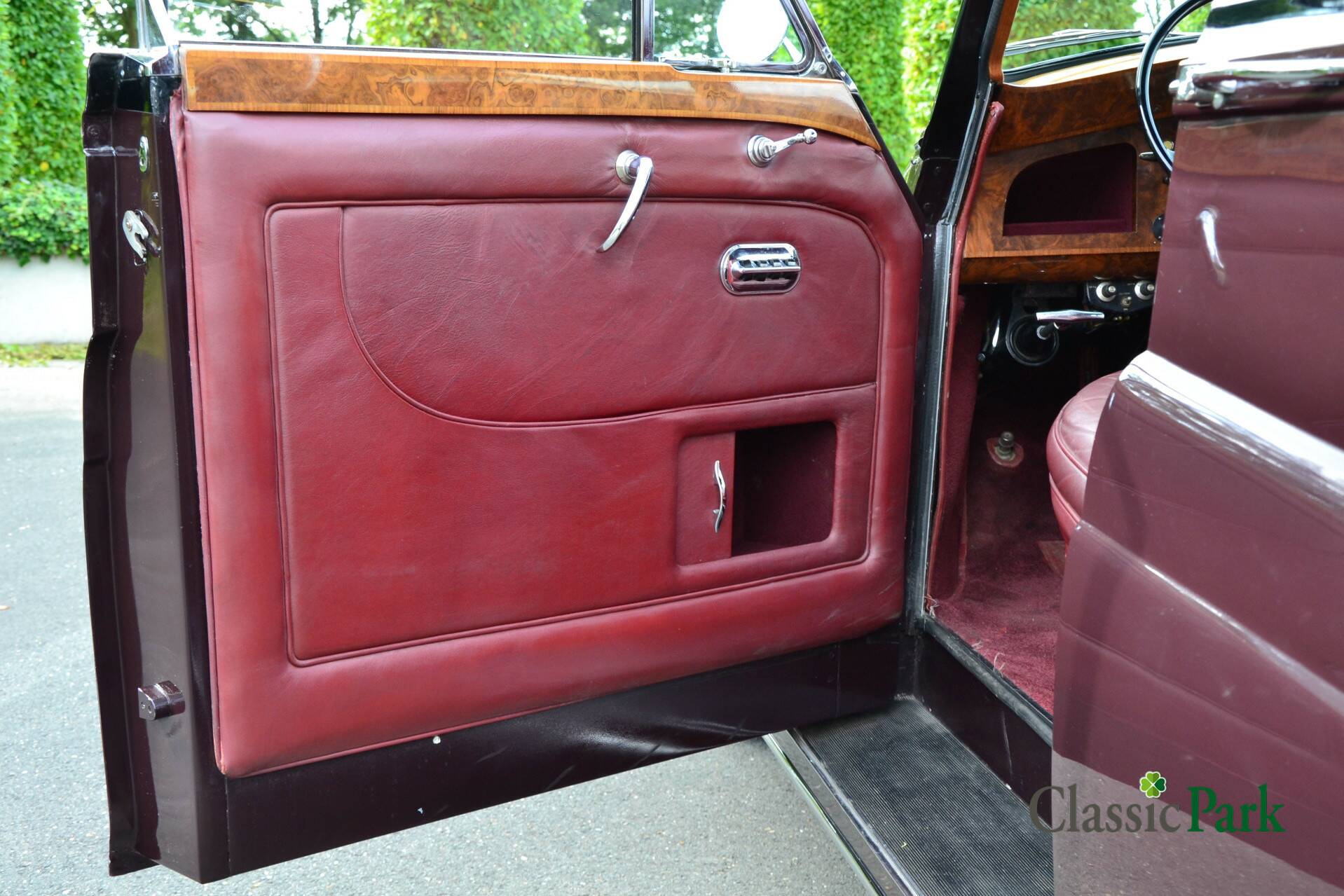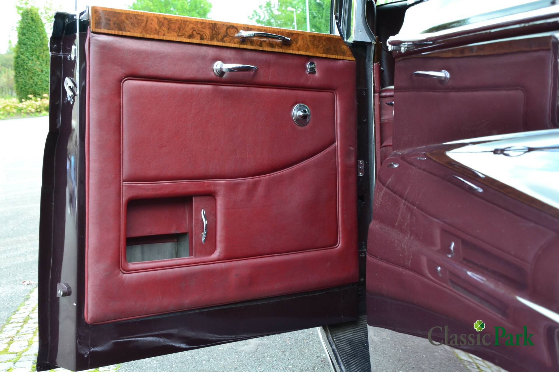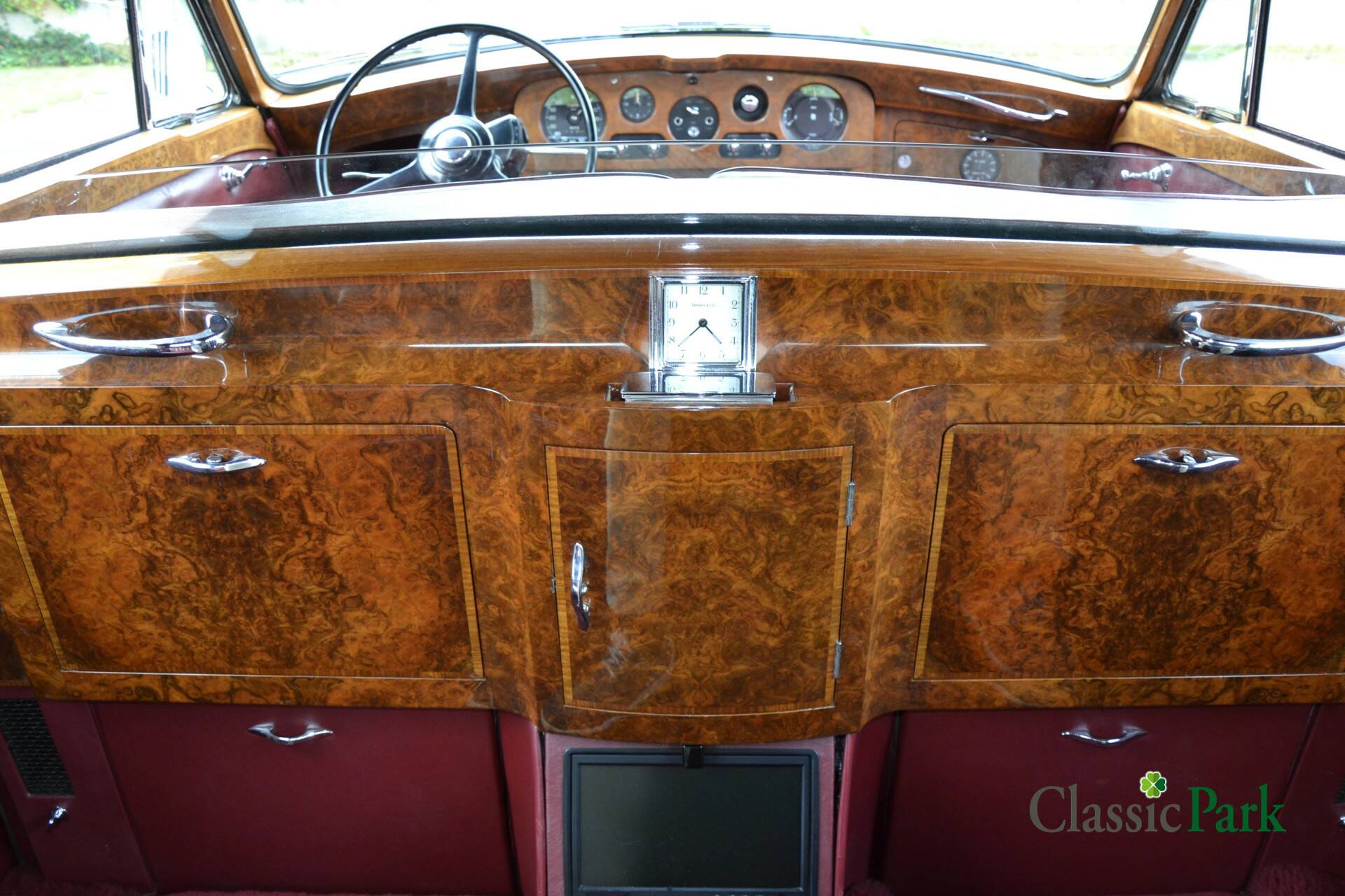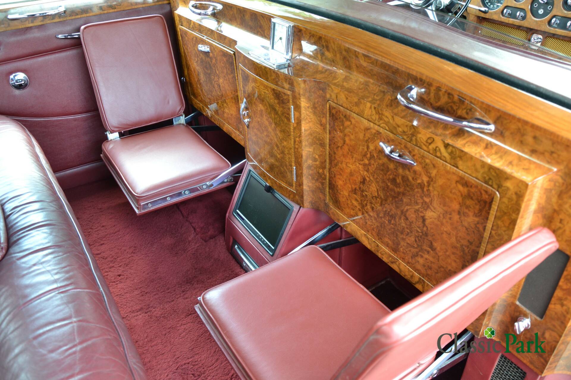 Der Phantom V bei Classic Park ist genau so ein gesuchter PV22 von James Young. Das Fahrzeug präsentiert sich in einer majestätischen Zweifarbenlackierung in Schwarz und Dunkelrot („Maroon“) und verfügt über ein passend rotes Lederinterieur. Zwischen den Vordersitzen und dem Fond ist eine Trennwand („Division“) eingebaut, die mit einer Vielzahl von Accessoires und Funktionen ausgestattet ist.