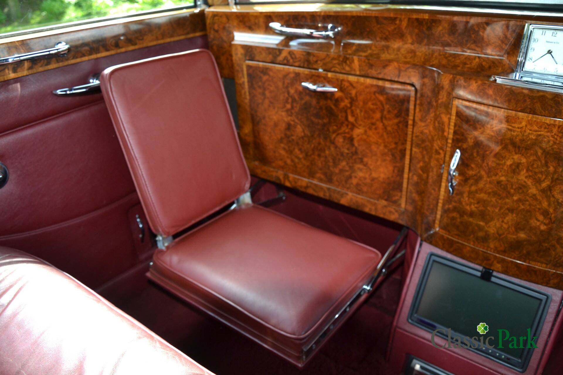 So sind beispielsweise zwei Klappsitze, sogenannte „provisional seats“, vorhanden, sodass insgesamt sieben Personen im Fahrzeug Platz finden können. Zudem verfügen die Fondpassagiere über zwei ausklappbare Tische sowie ein stilvoll mit Gläsern bestücktes Getränkekabinett. In der Trennwand befindet sich außerdem eine klassische Tiffany & Co-Uhr sowie ein Monitor mit Video-/CD-/MP3-Player.