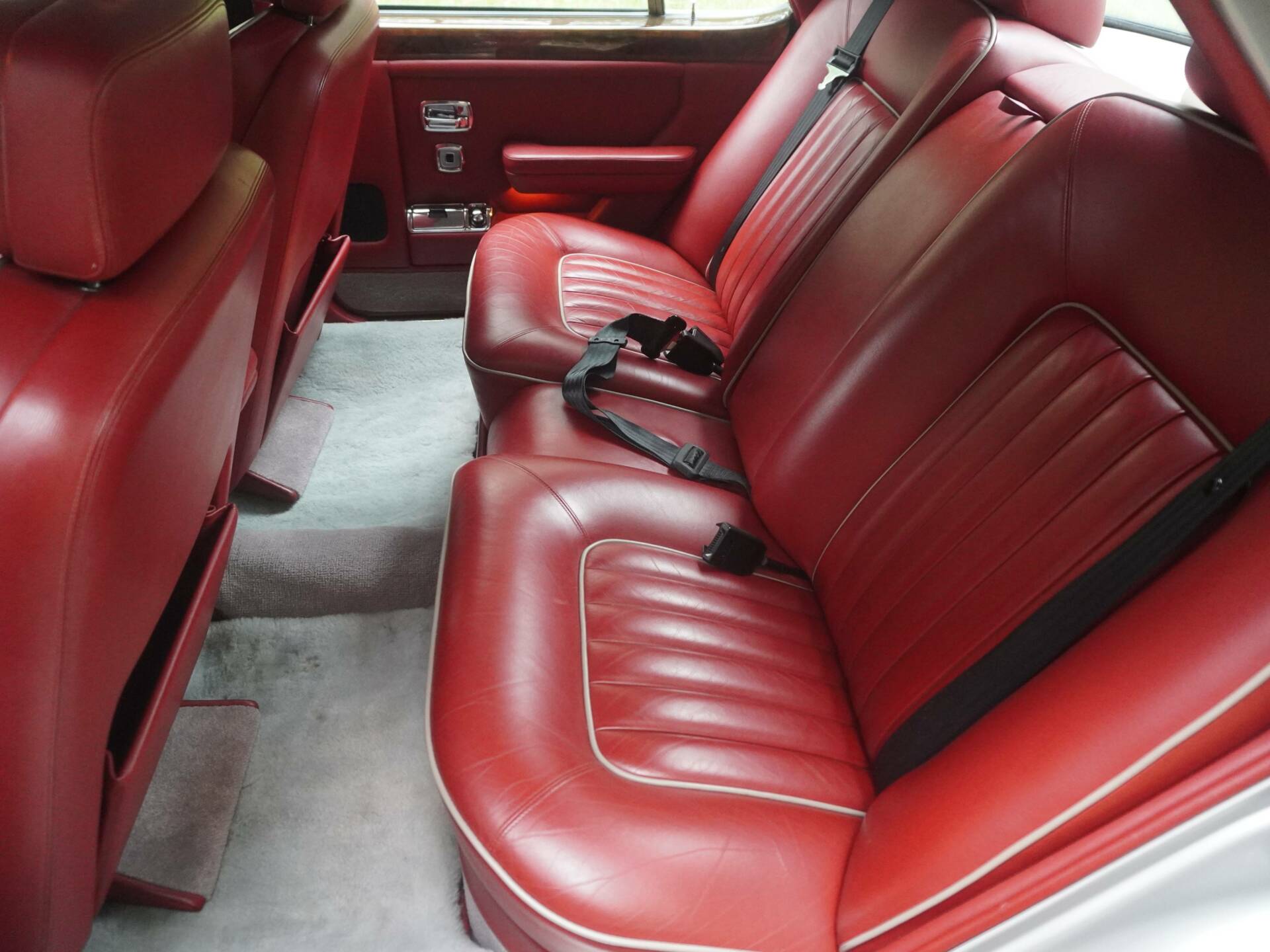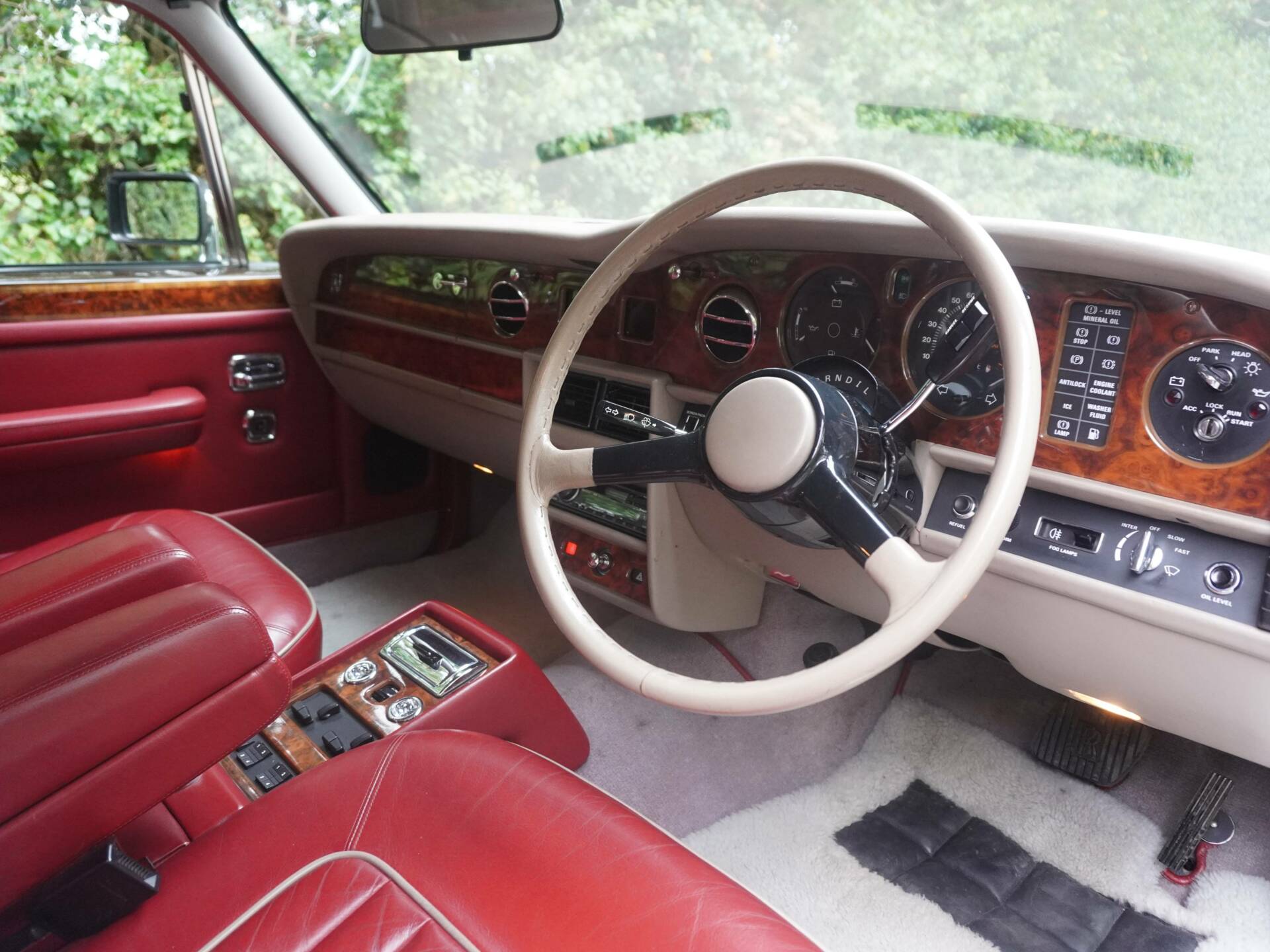 Throughout the cabin you are met with sleek chromed dials operating the power windows, mirrors, and steering rake, alongside the switchgear for the electric seat adjustments, heated seat operation and automatic climate control. The capacious rear of the car offers immense comfort for passengers along with vanity mirrors and cigarette lighters. Lambswool over-rugs - a staple of prestigious cars of the era have been incredibly well kept offering an impressive contrast against the St James' Red leather with grey piping found throughout.