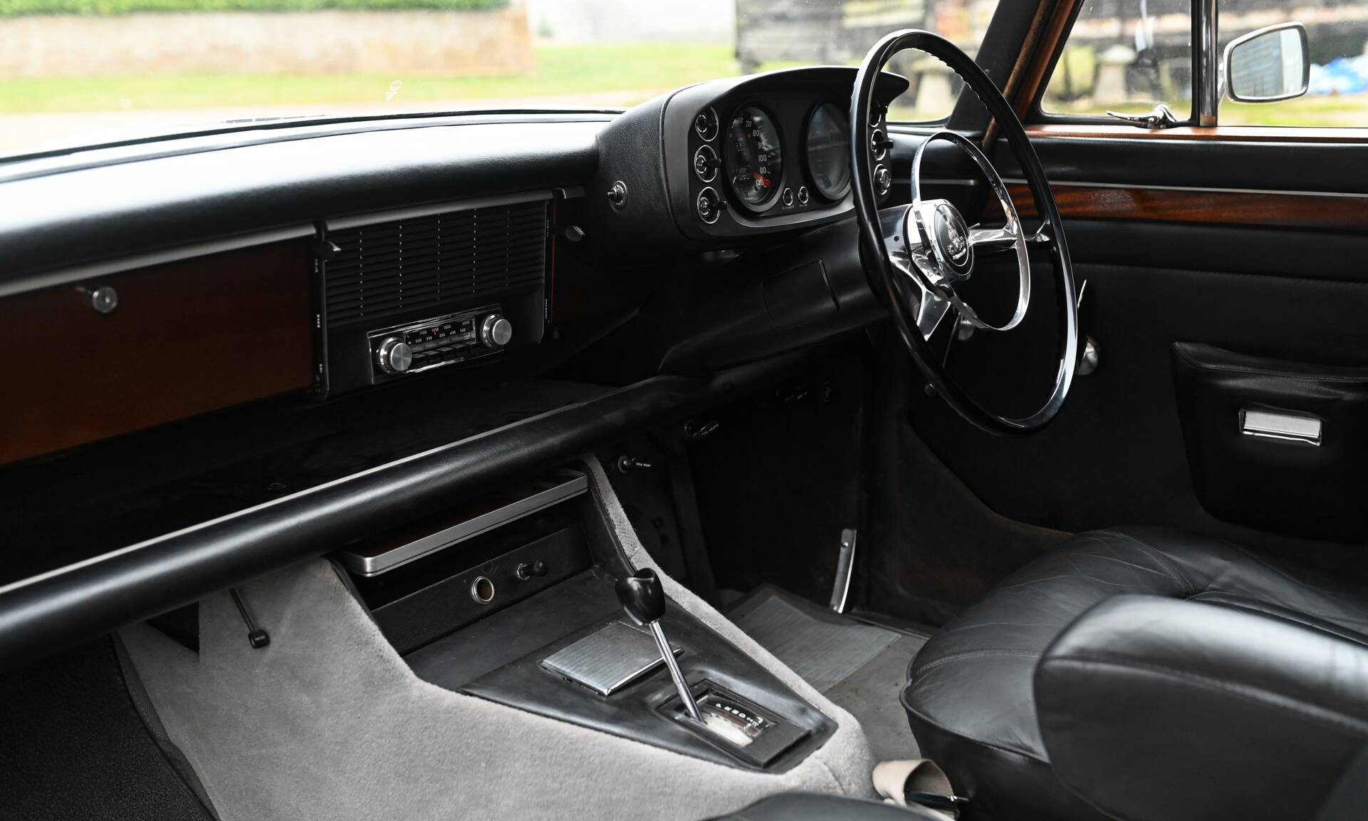 This Rover P5B Saloon was manufactured in 1969 and supplied new by R. H. Collier &Co. Ltd of Birmingham, being registered on 4th of July that year. Finished in Bordeaux Red, the P5B Saloon still retains its original rare Ebony leather interior upholstery and beige carpeting. Well maintained while in its first ownership, the accompanying history file displays regular servicing through their custodianship, which lasted 23 years. Purchased by the second owner in 1992, it was driven from Birmingham to Coventry, when white smoke began to appear and the new owner decided the head gaskets had failed. Starting to dismantle the Rover's engine, a stroke sadly stopped progress almost immediately and the P5B remained stored in a dry garage for the next 24 years. The previous owner, a well-known and renowned classic car specialist was informed of the car in 2016 and purchased 'RON 569G' with some 52,000 miles on the odometer. Quickly discovering that a leaking brake servo was the actual cause of the smoke, the P5B was fully recommissioned, with 'RON 569G' returning to the road in the summer of 2016. Other than the recommissioning, the Rover only required improvement to the paintwork, with a full respray undertaken shortly after purchase. Notably original, this P5B was used regularly by the previous owner. Offered with a large history file that contains the original book pack with the well-stamped service book, numerous servicing and maintenance records from the first owner's custodianship, right back to the first service document and a current V5C registration document. Examples of the P5B with such originality come up rarely, so with very good provenance, low mileage, and just three owners from new, this is a fantastic opportunity. Consigned by John Tomlin