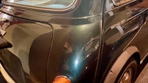 alte runde Mini Rücklichter, Interieur Holz-Armaturen, Holz-Lenkrad etc