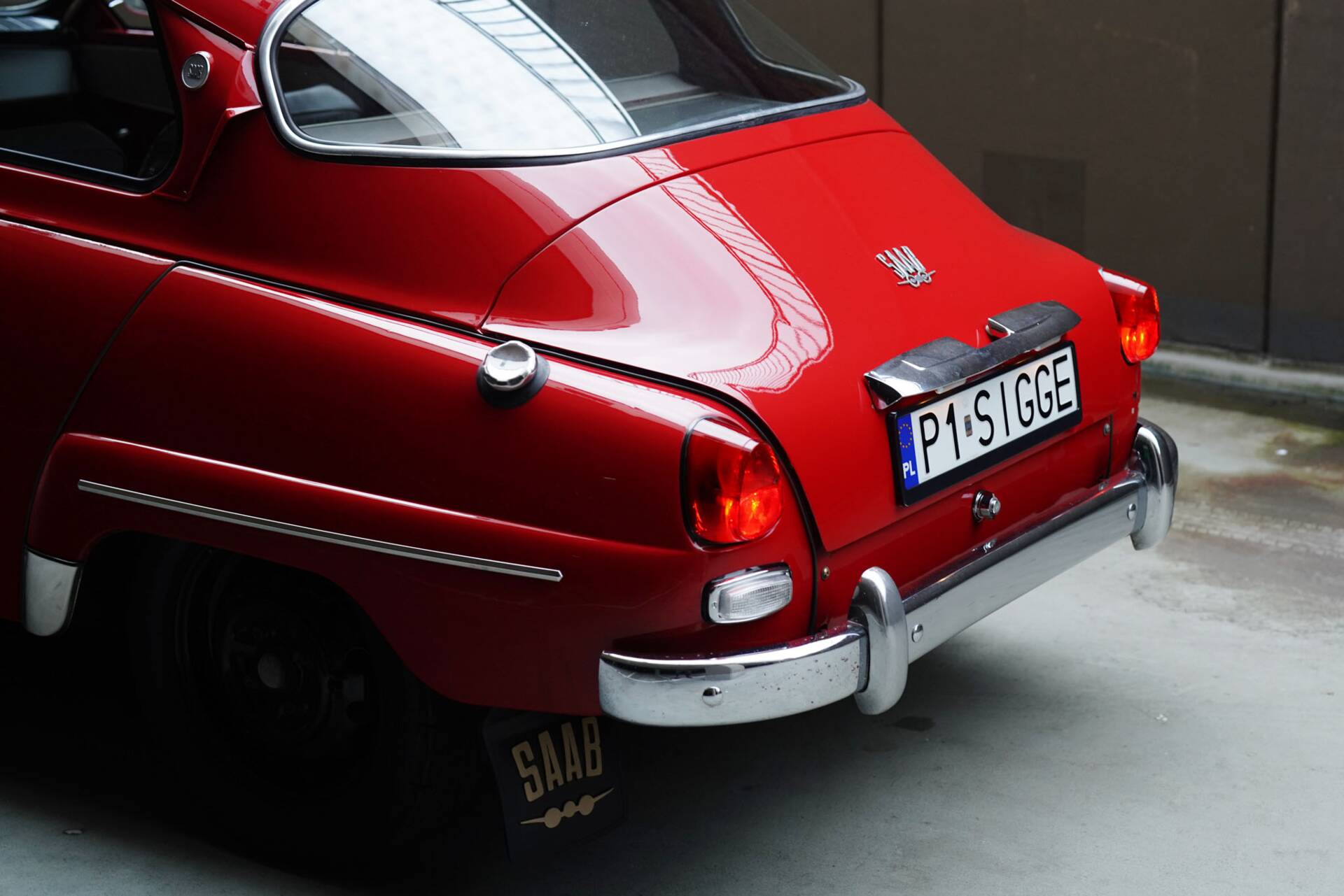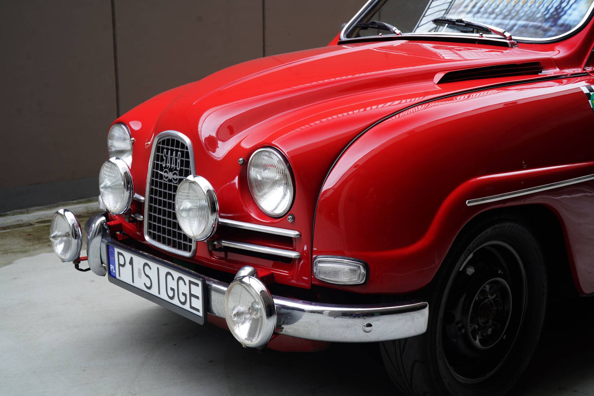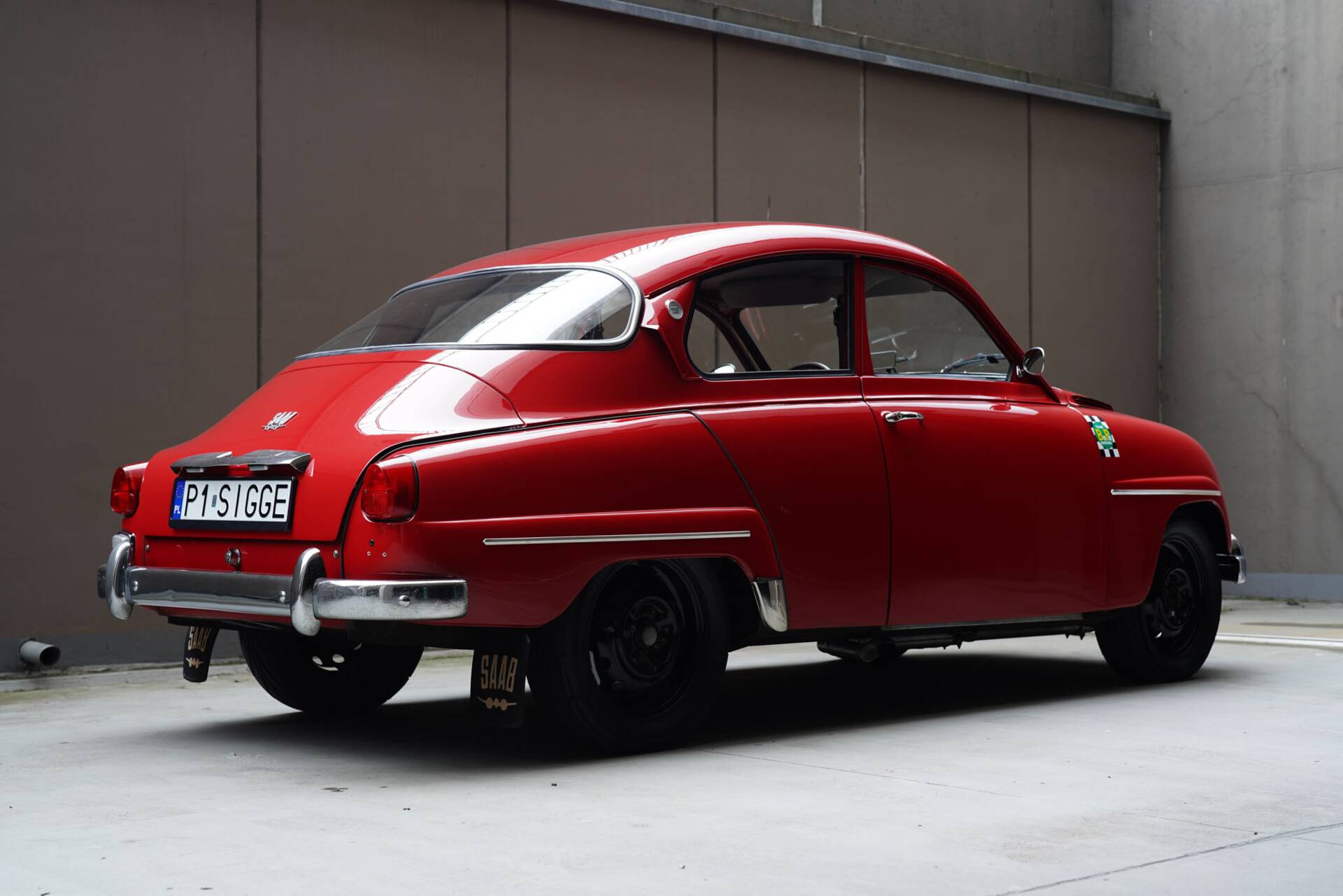 In the car we can find a number of other elements from racing team's cars. We can find special air intakes on the hood, a fan with more blades, steel Saab Sport rims, disc brakes at the front, a 4-speed gearbox, a special exhaust system and many other elements that make this two-stroke pearl one of a kind.