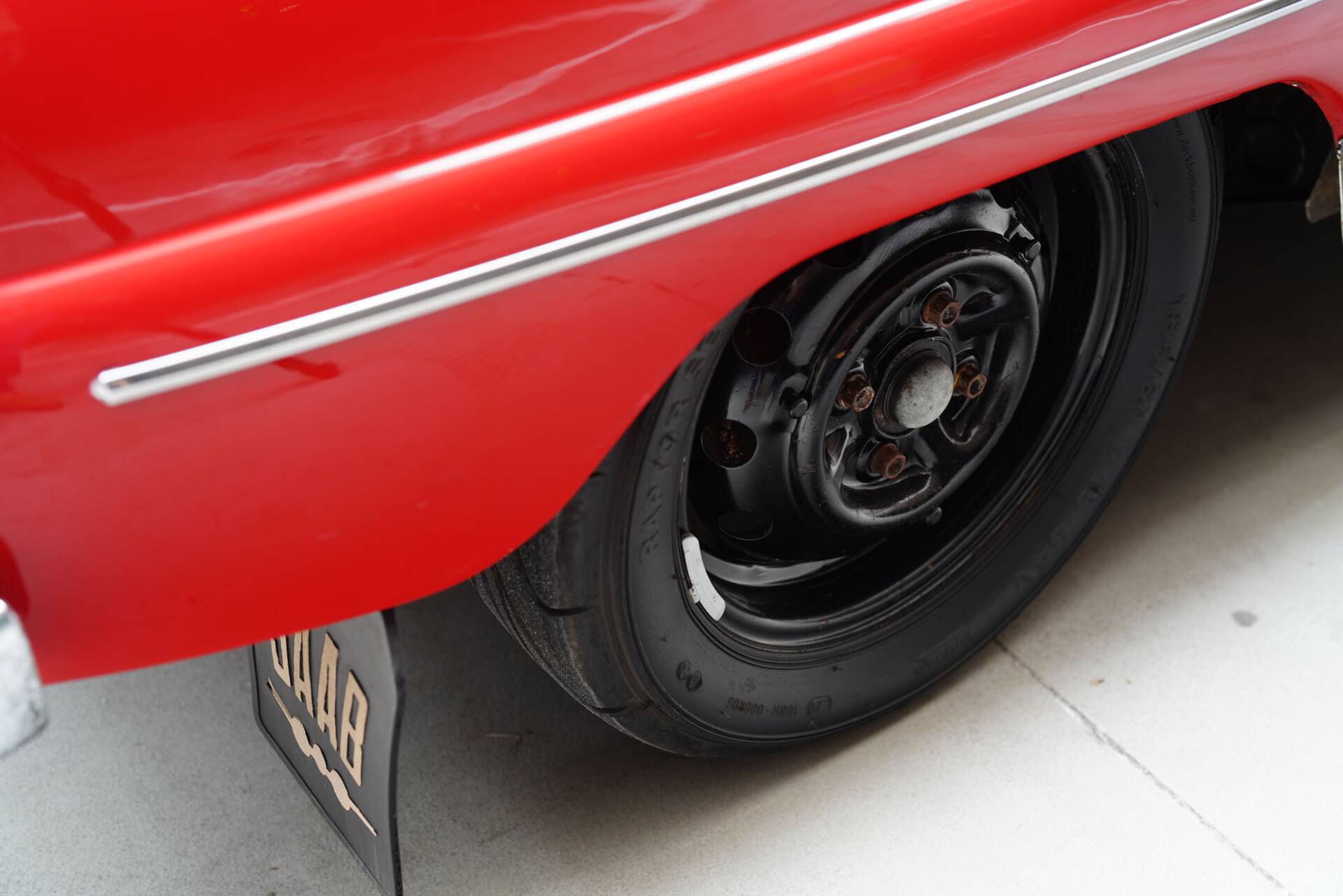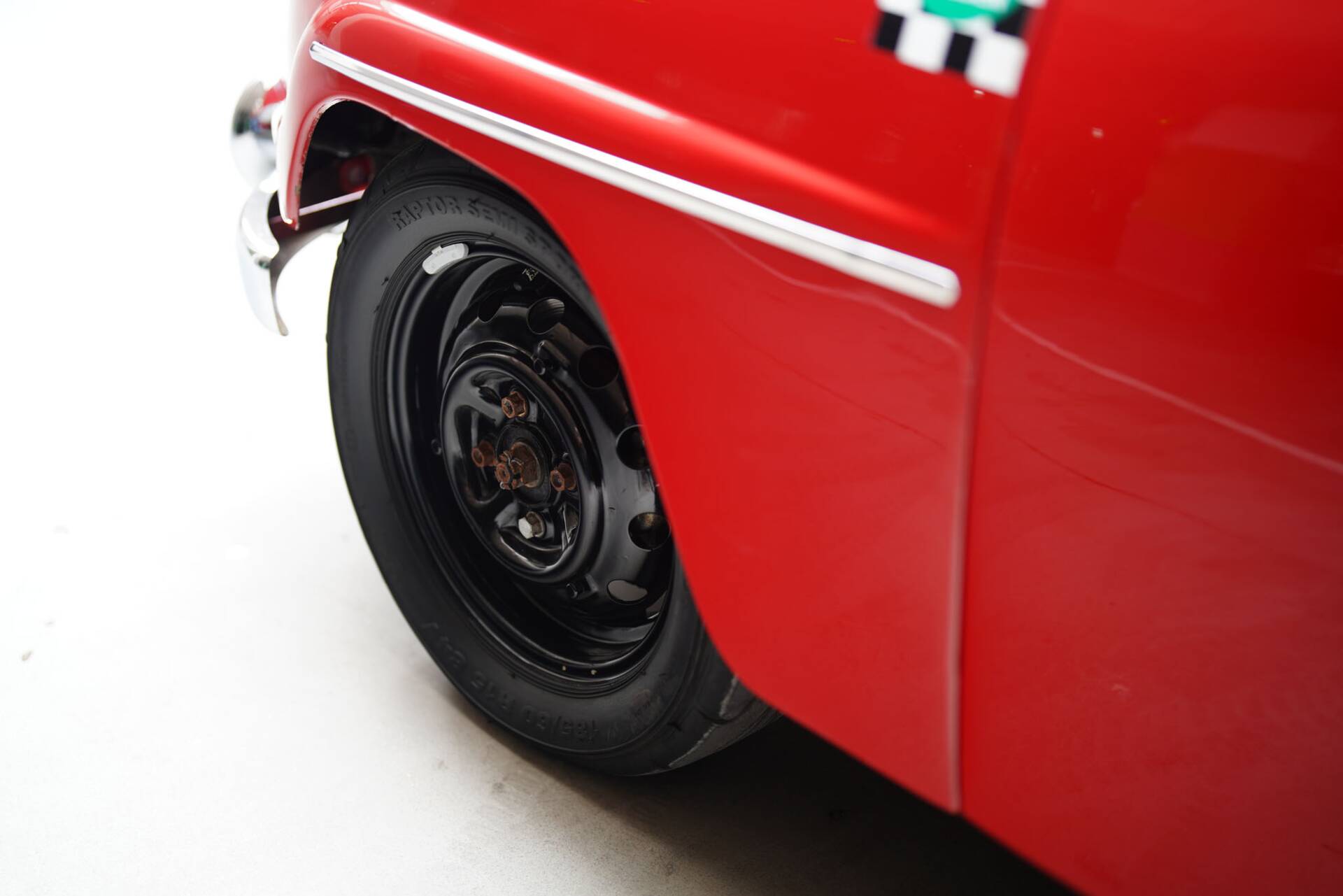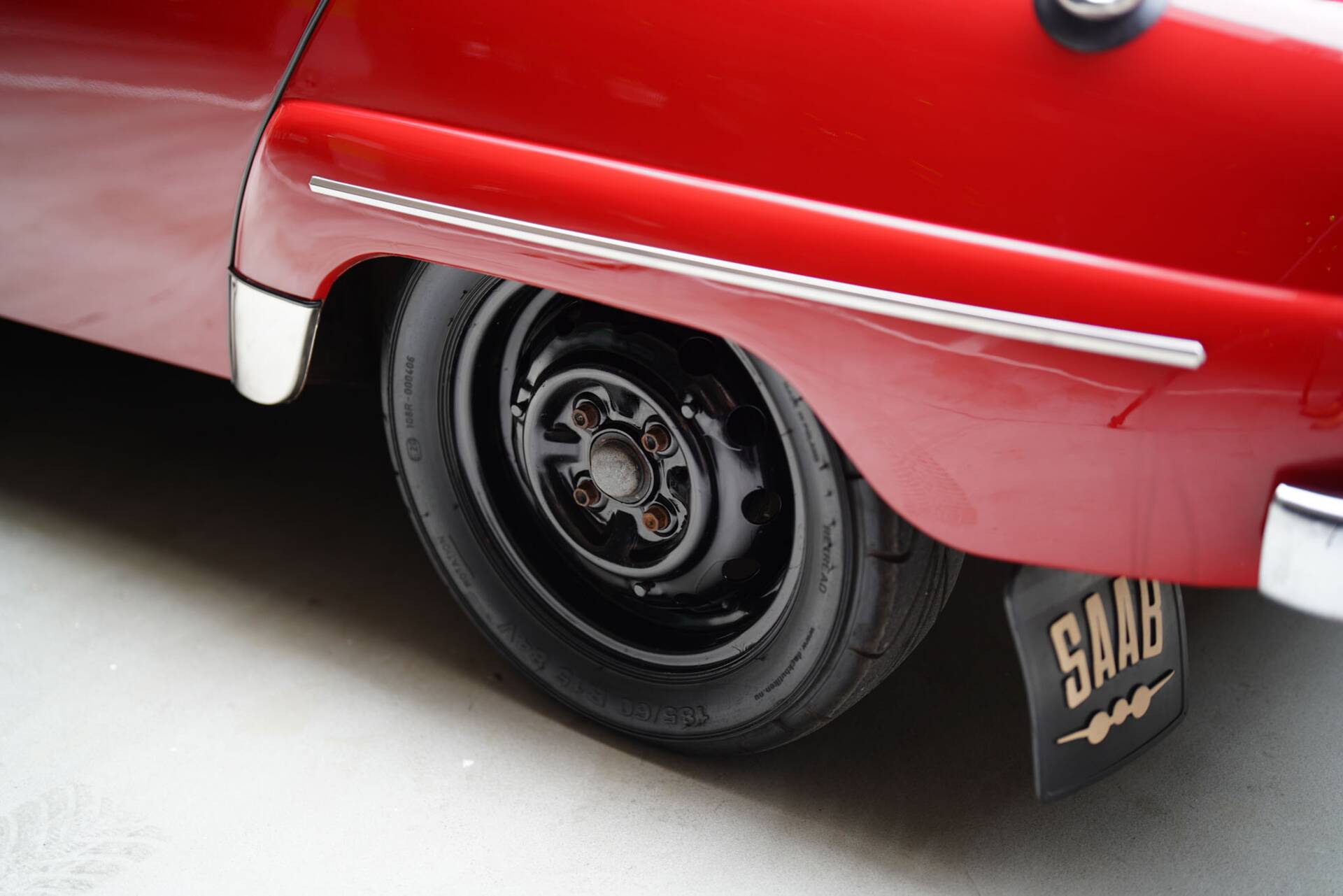 In the car we can find a number of other elements from racing team's cars. We can find special air intakes on the hood, a fan with more blades, steel Saab Sport rims, disc brakes at the front, a 4-speed gearbox, a special exhaust system and many other elements that make this two-stroke pearl one of a kind.