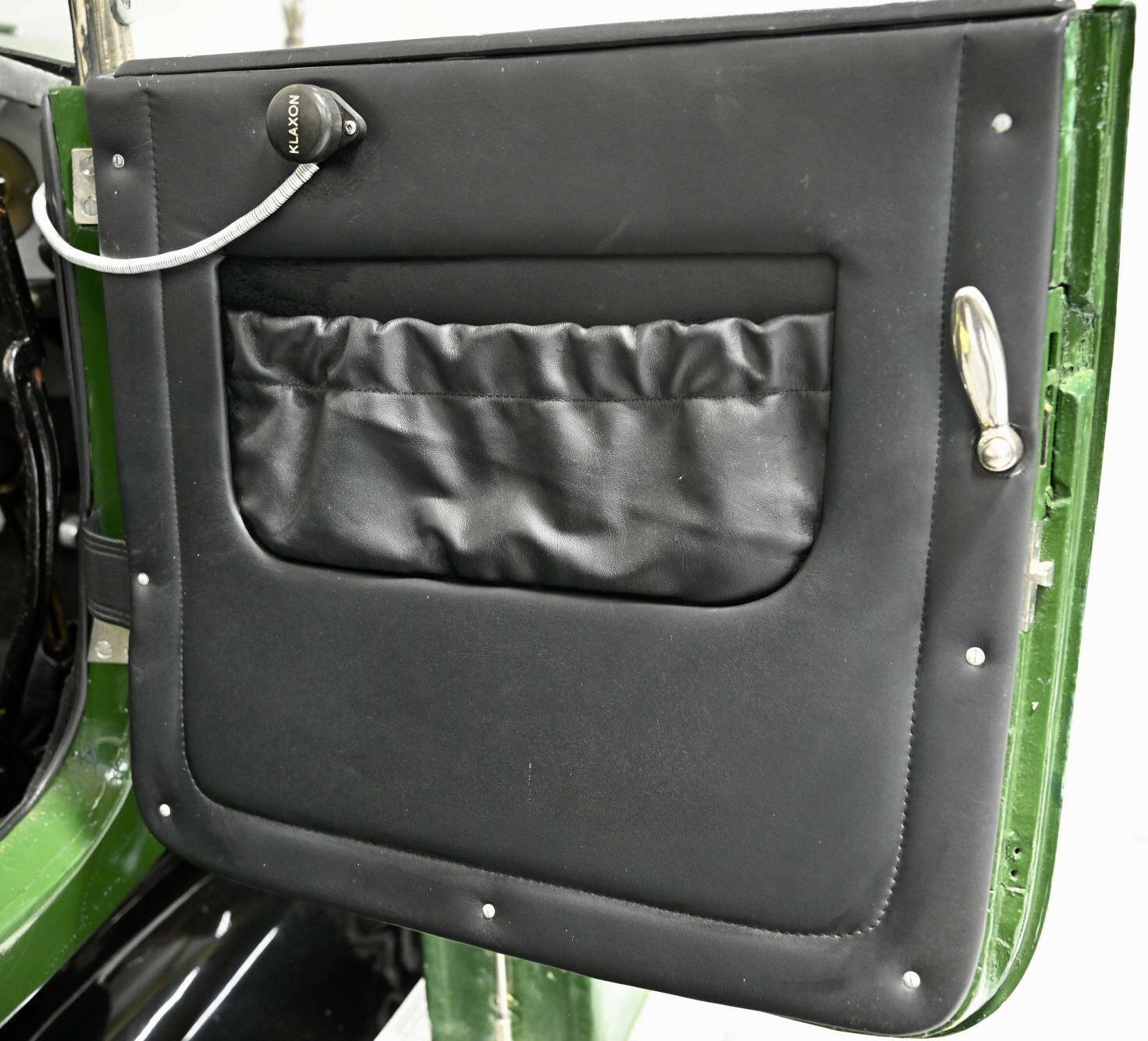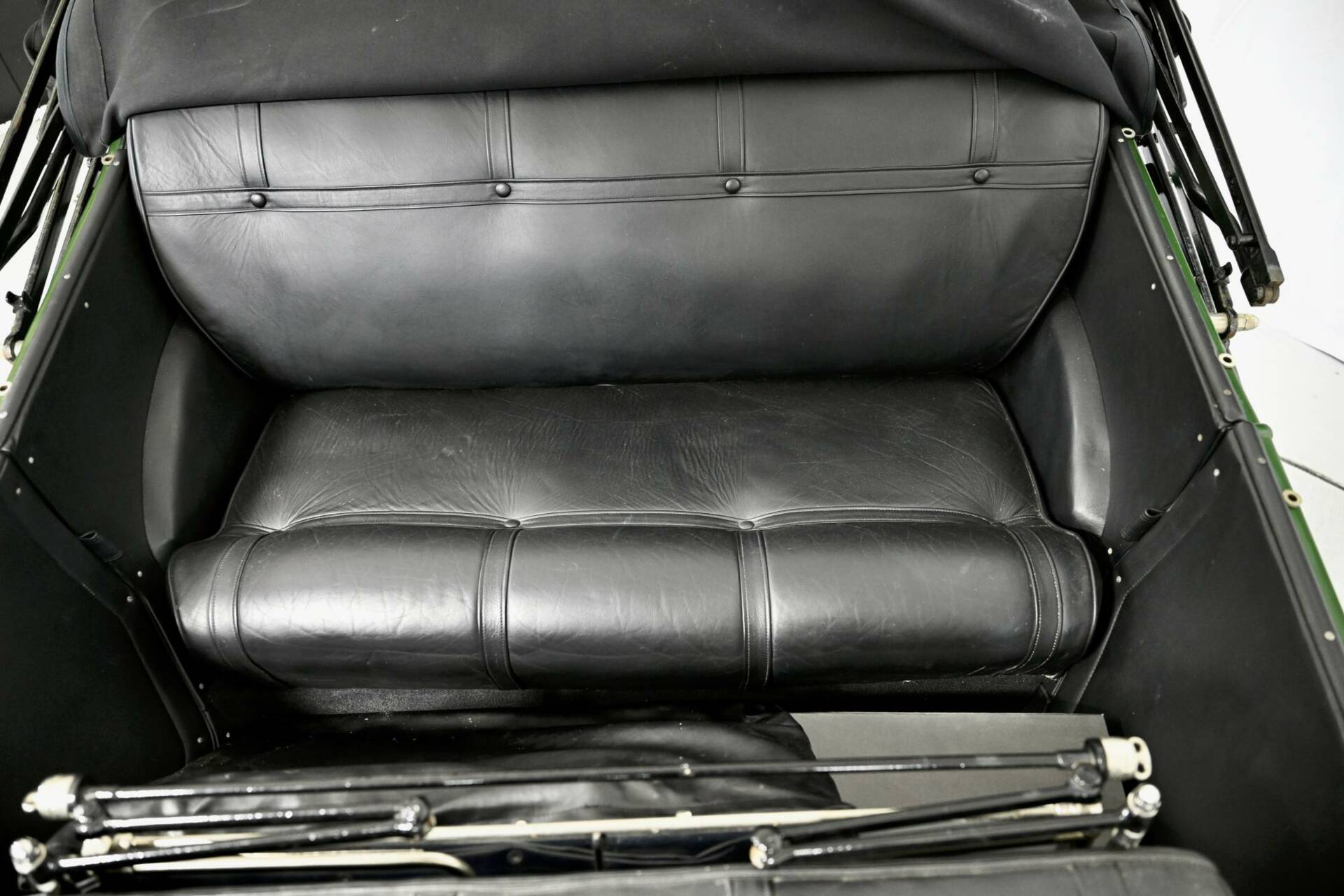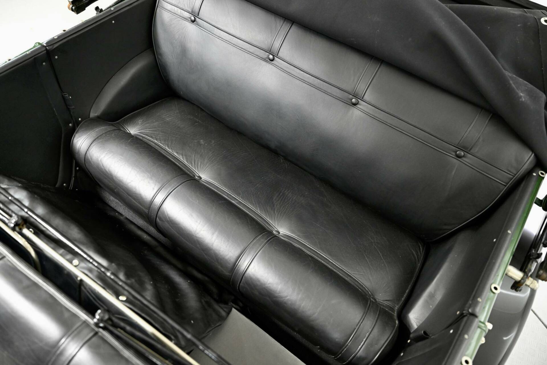 A new set of Blockley tyres has recently been fitted and there is also an Auster rear passenger windscreen. This car is in simply superb robust mechanical order starting readily & driing beautifully. The Griffin Mascot to the prow is an original item. The Black leathe ruphostery is in really fine condition as is the green over black exterior paint. The red painted wire wheels set off the whole enseble nicely. The roof is easy to erect & again is in excllent order.