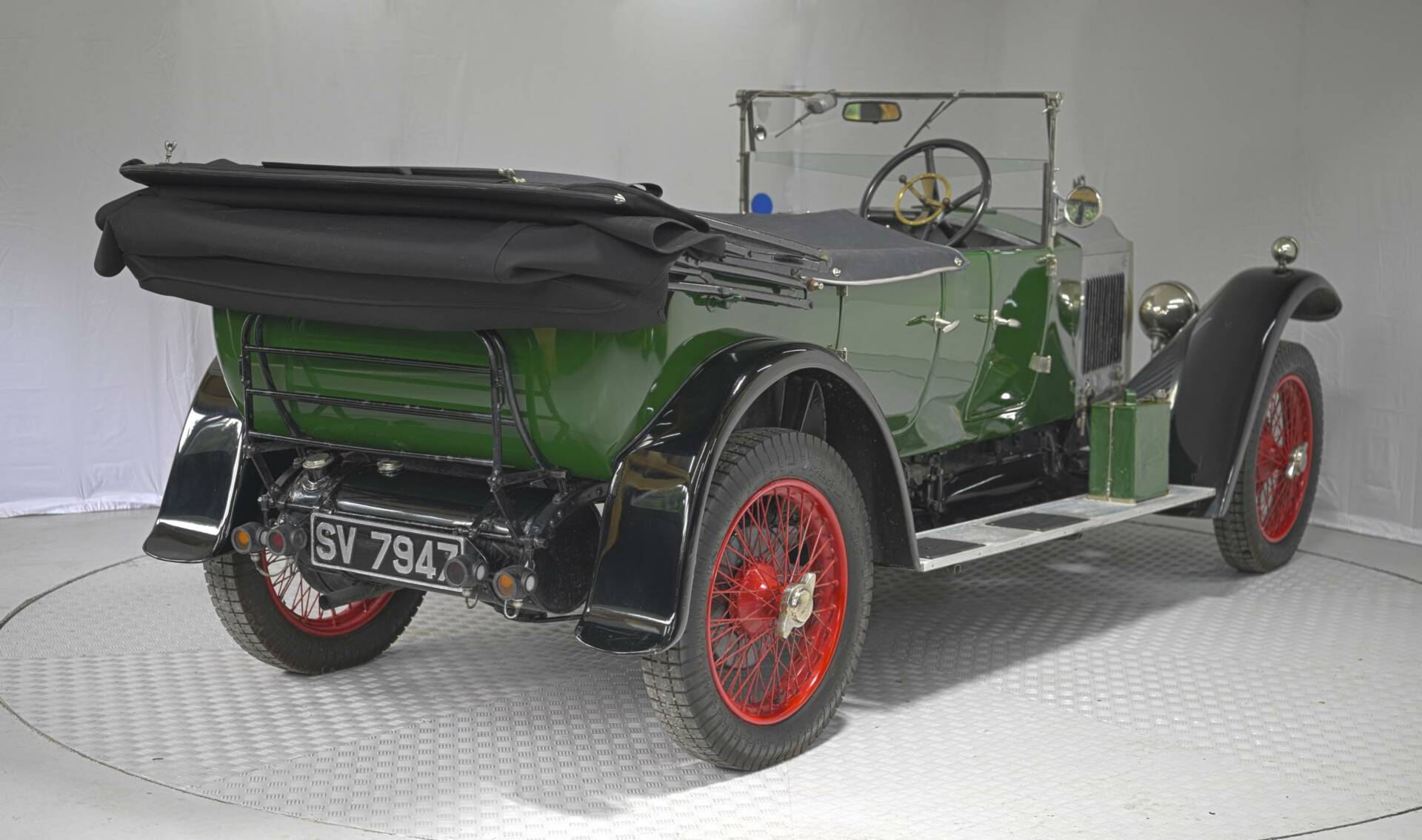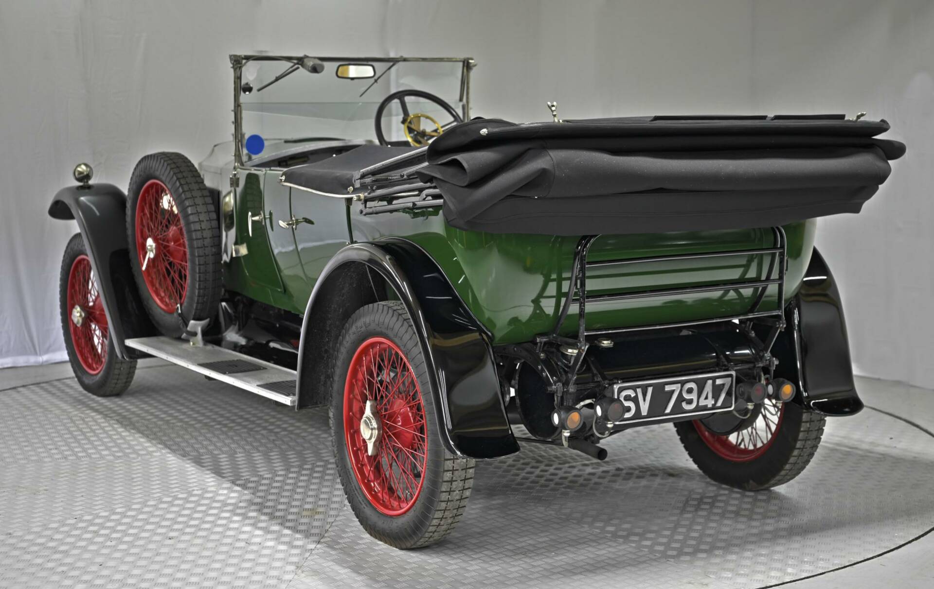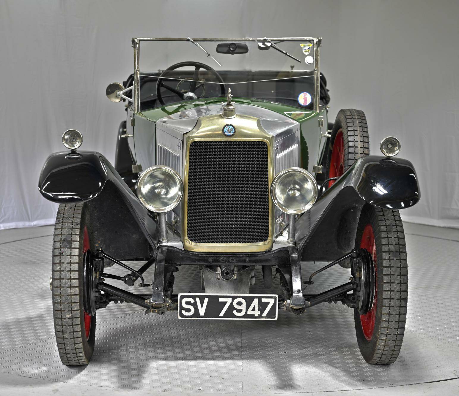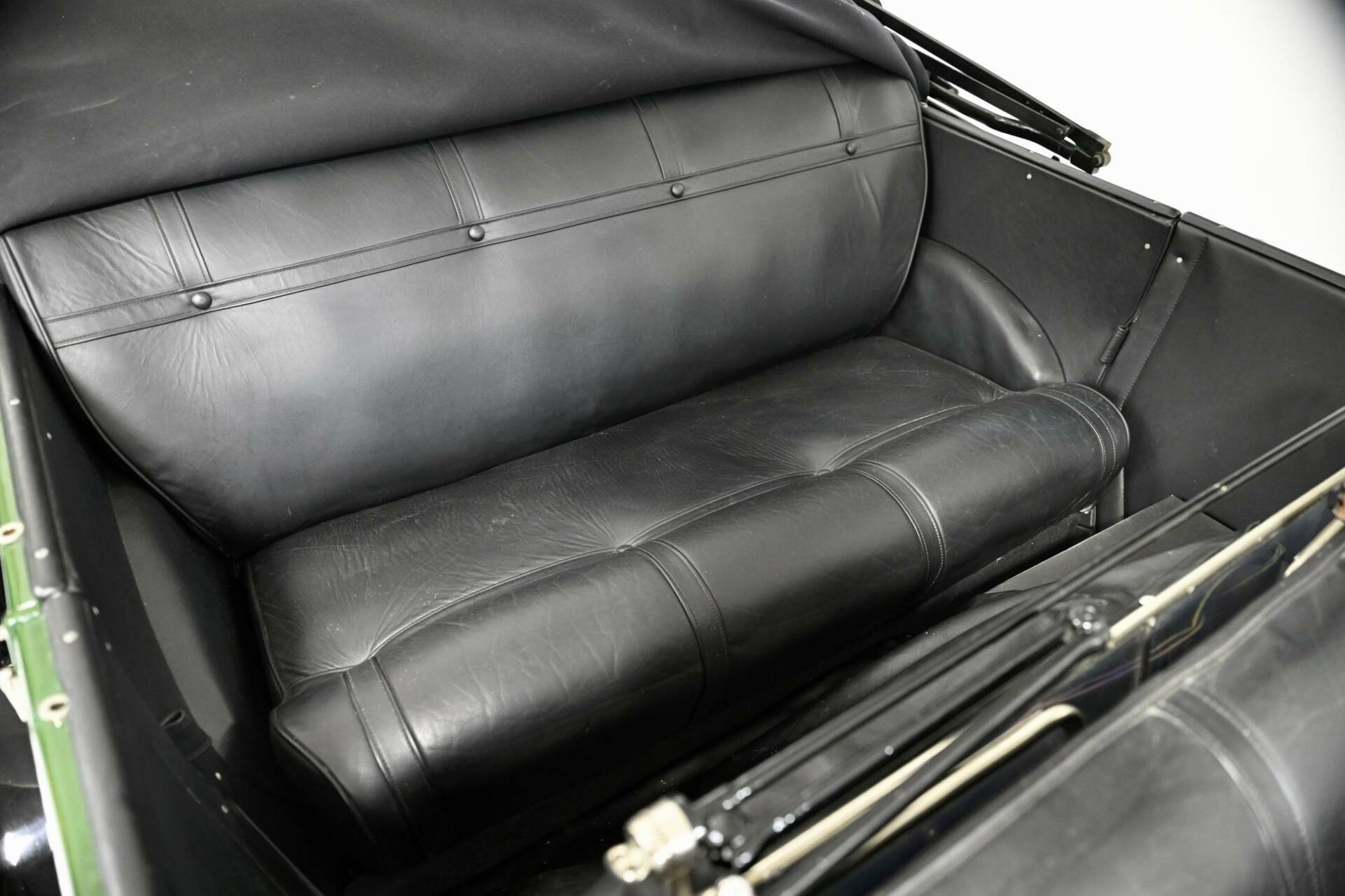 A new set of Blockley tyres has recently been fitted and there is also an Auster rear passenger windscreen. This car is in simply superb robust mechanical order starting readily & driing beautifully. The Griffin Mascot to the prow is an original item. The Black leathe ruphostery is in really fine condition as is the green over black exterior paint. The red painted wire wheels set off the whole enseble nicely. The roof is easy to erect & again is in excllent order.