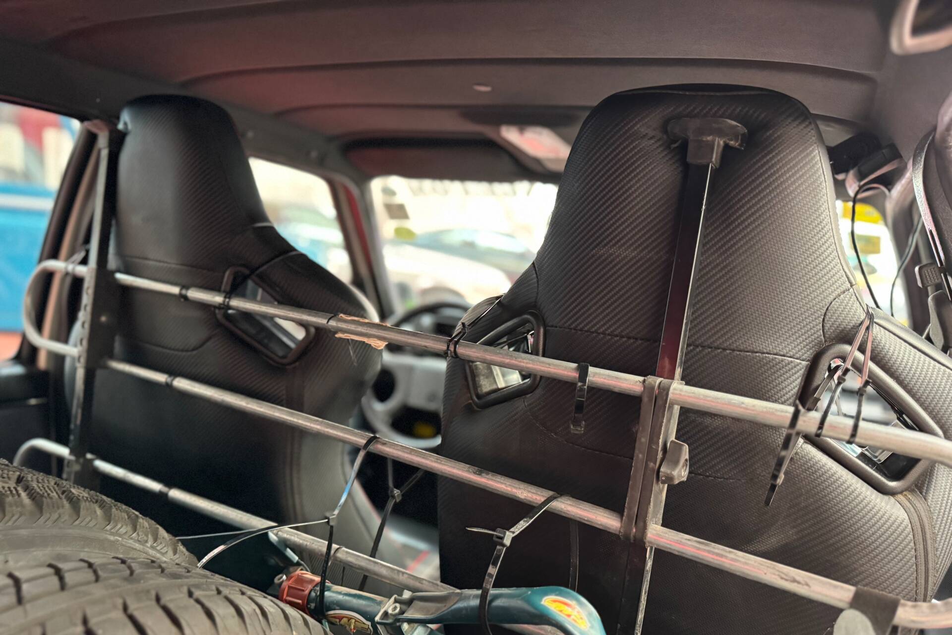 Barres de toit avec roue de secours.