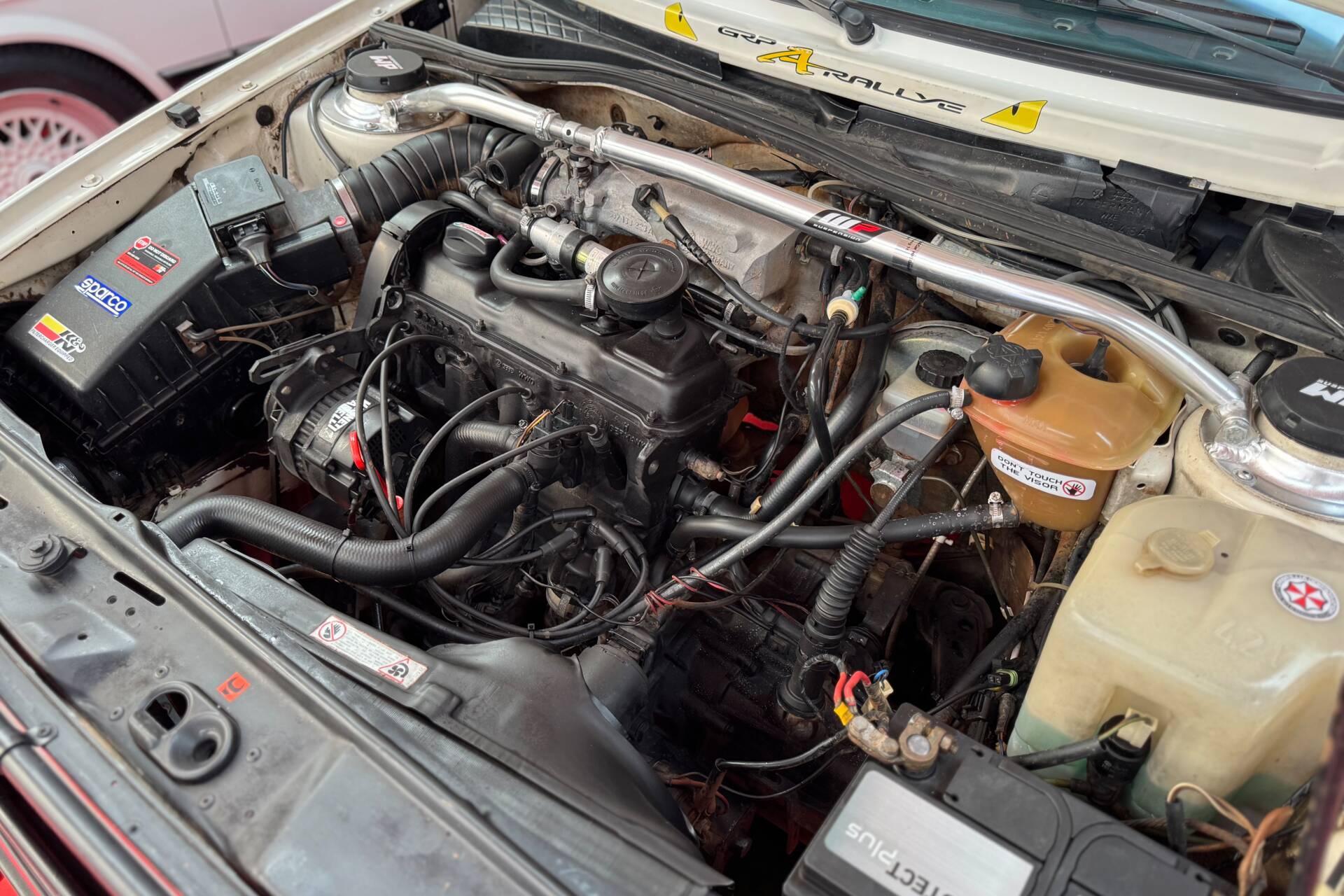Idéale pour les rassemblements de voitures classiques, les rallyes historiques, ou tout simplement pour les passionnés de GTI uniques. Elle arbore une esthétique agressive et robuste, rappelant les créations du Rallye Dakar d'antan.