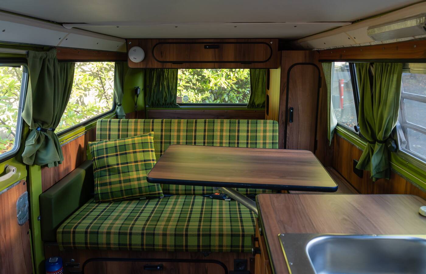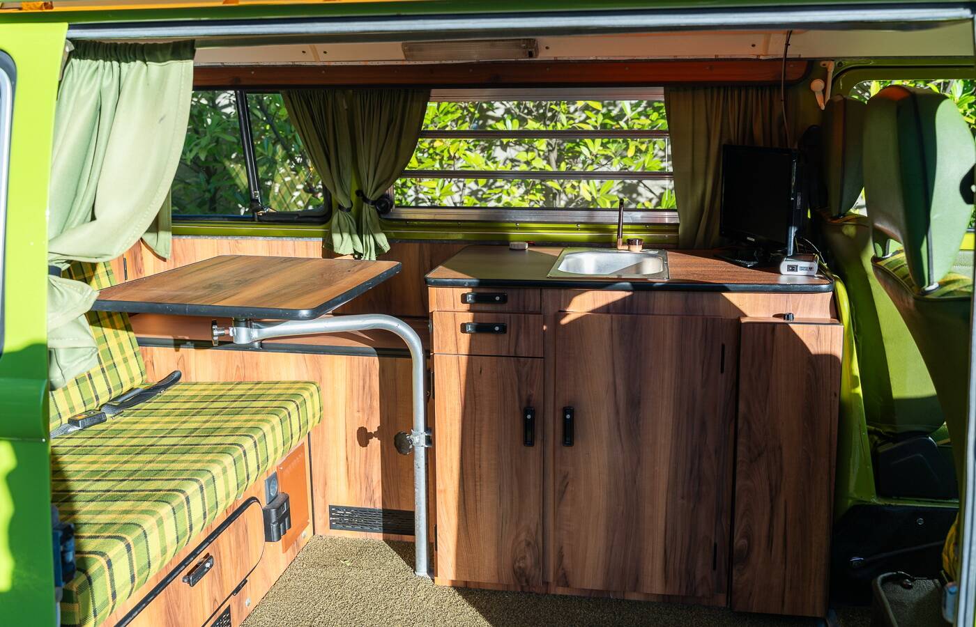 Der VW T2b Westfalia ist ein Symbol für Freiheit und Abenteuer. Als Weiterentwicklung des T2a erhielt der T2b ab 1972 zahlreiche technische und optische Neuerungen, darunter größere Rückleuchten, verstärkte Stoßfänger und eine verbesserte Belüftung. In der beliebten Westfalia-Ausführung bot er alles, was ein Camper der 1970er Jahre benötigte: Schlafmöglichkeiten, Stauraum und durchdachte Funktionalität. Heute zählt der T2b zu den begehrtesten Klassikern seiner Zeit und erfreut sich weltweit großer Sammler- und Liebhaberwerte. Dieser VW T2b Westfalia lief gemäß VW-Zertifikat in Hannover vom Band und wurde kurz danach, im Oktober 1977 nach San Francisco ausgeliefert. Er präsentiert sich in der attraktiven Farbgebung „Taiga Grün“ und verfügt über eine nachvollziehbare Ausstattungshistorie. Mit Aufstelldach, Drehfenstern und Kopfstützen für die Vordersitze zeigt er sich als authentischer Camper-Klassiker. Zusätzlich wurden Thule-Markise, Weißwandreifen, breitere Stahlfelgen sowie Fernseher, Radio und Satellitenschüssel nachgerüstet. Durch den jetzigen Eigentümer wurde das Fahrzeug in Deutschland bei Fachbetrieben regelmäßig gewartet; zudem erfolgte eine professionelle Wachskonservierung. Ein authentischer Westfalia-Camper mit nachweisbarer Berlin-Ausstattung (SO 73), solider Kalifornien-Basis und dokumentierter Historie – ein gesuchtes Sammlerstück, das Originalität und Erhaltungszustand ideal vereint.