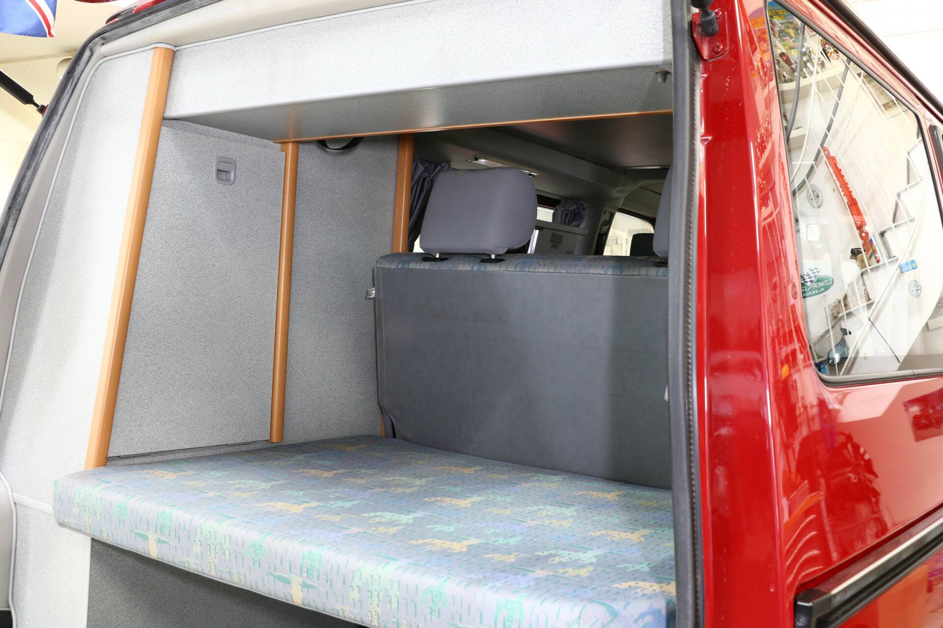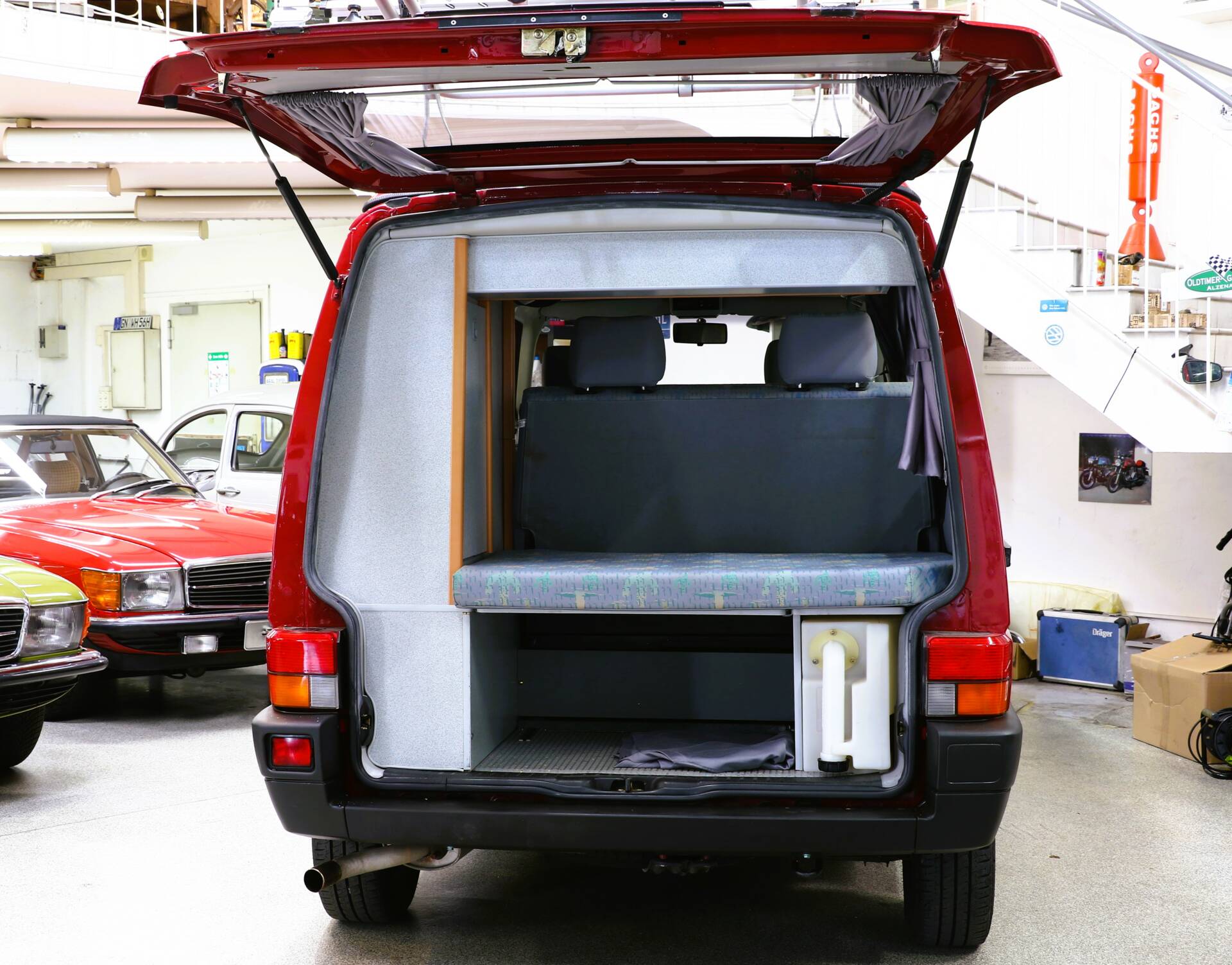 In dieser Konfiguration eignet sich der T4 bestens sowohl für die Stadt, als auch für ausgedehnte Urlaubsreisen mit der ganzen Familie. Er bietet vier bequeme Schlafplätze sowie eine komplette Küche mit Herd, Kühlbox und Spülbecken. Und mit einem fünften Sitzplatz entgegen der Fahrtrichtung. Alles ist tiptop sauber, appetitlich und sehr gepflegt. Aus erster Hand, nur im Sommer genutzt steht heute ein T4 in Ausnahmezustand vor uns: Rundrum im Originallack, ohne Kratzer und Dellen, abgesehen von nicht zu vermeidenden kleinen Steinschlägen auf der Motorhaube makellos. Auch der Unterboden ist im Originalzustand, nie geschweisst und noch mit werksseitiger Versiegelung. Perfekt!