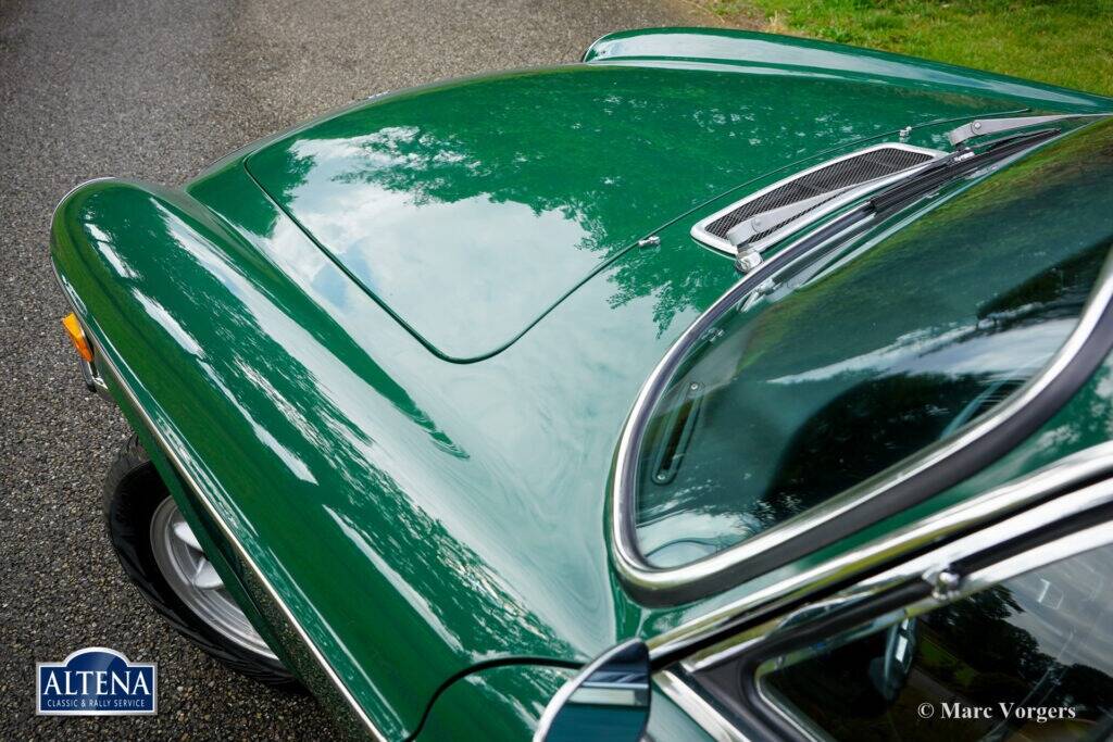 Volvo 1800 E, year 1972. Chassis (VIN) number 1826354038889, engine number 52821496. Body colour dark green combined with a tan (pale brown) leathercloth interior and brown carpet. This wonderful Volvo 1800 E was sold new in the USA; the original US title is still present. This wonderful 1800 E features fuel injection and overdrive! In the year 2007 the was imported to the Netherlands where it was cherished by one caring owner ever since.