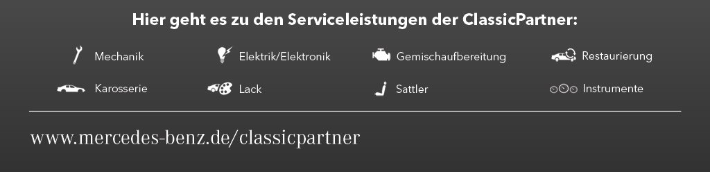 Es erwarten Sie 511 Experten an 45 Standorten in Deutschland. Vier dieser Unternehmen sind der Marke Mercedes-Benz seit über 100 Jahren verbunden, der Durchschnitt beträgt 65 Jahre. Alle 45 Unternehmen verfügen über eine auf Classic spezialisierte Werkstatt. Das Serviceangebot erstreckt sich auf über 50 historische Baureihen der Marke Mercedes-Benz. 30 Unternehmen handeln mit historischen Fahrzeugen, 27 restaurieren, 23 bieten Service für historische Transporter.