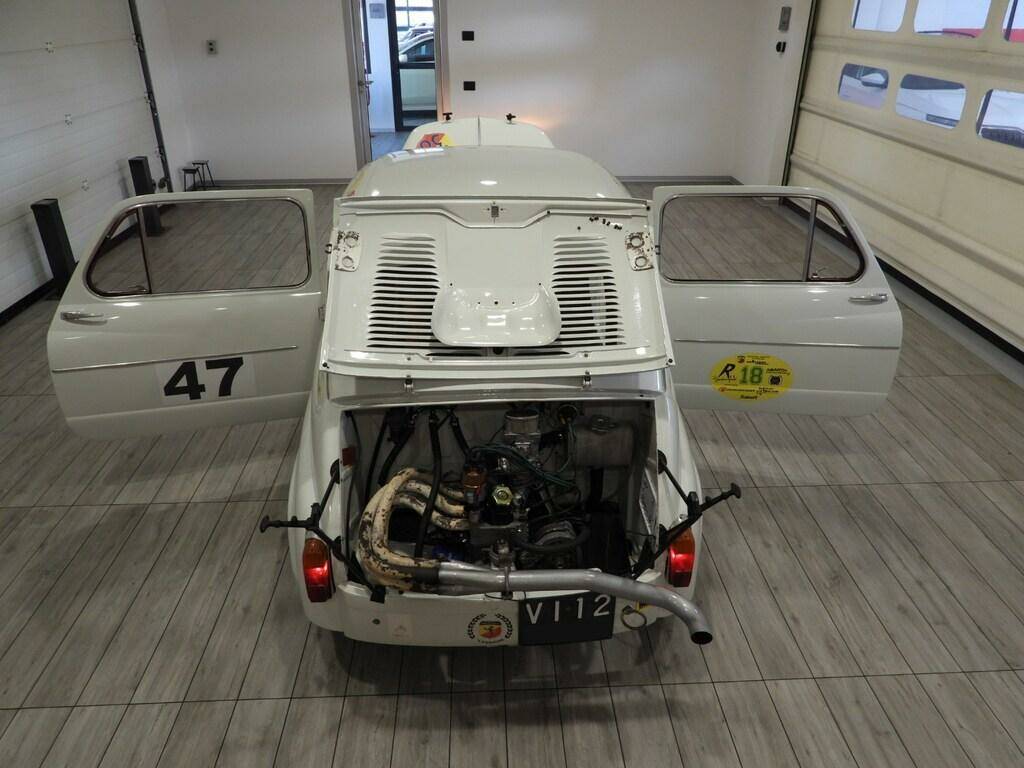 Racing type seat from the period, 3-point belts, original Abarth steering wheel, original Girling front disc brakes with brake distribution, Abarth 5-speed gearbox, oversized radiator and oversized racing-type oil sump